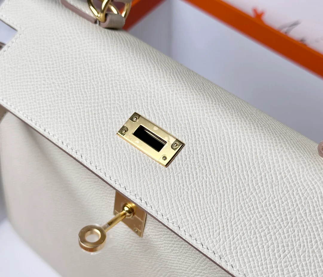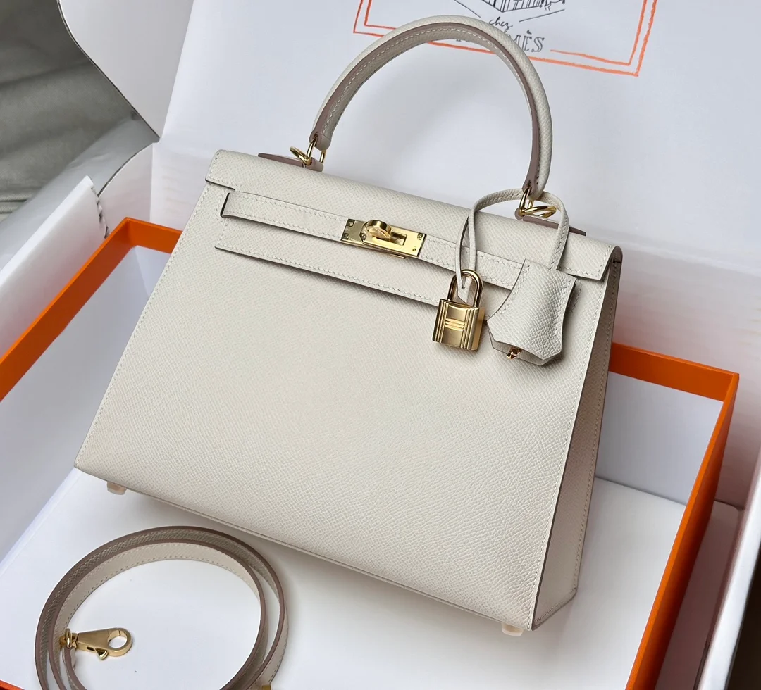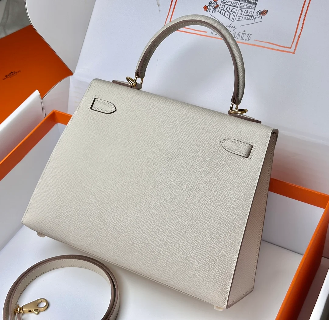 Hermes - Kelly25 Milkshake White Epsom Gold Buckle
