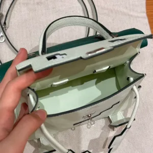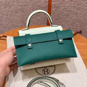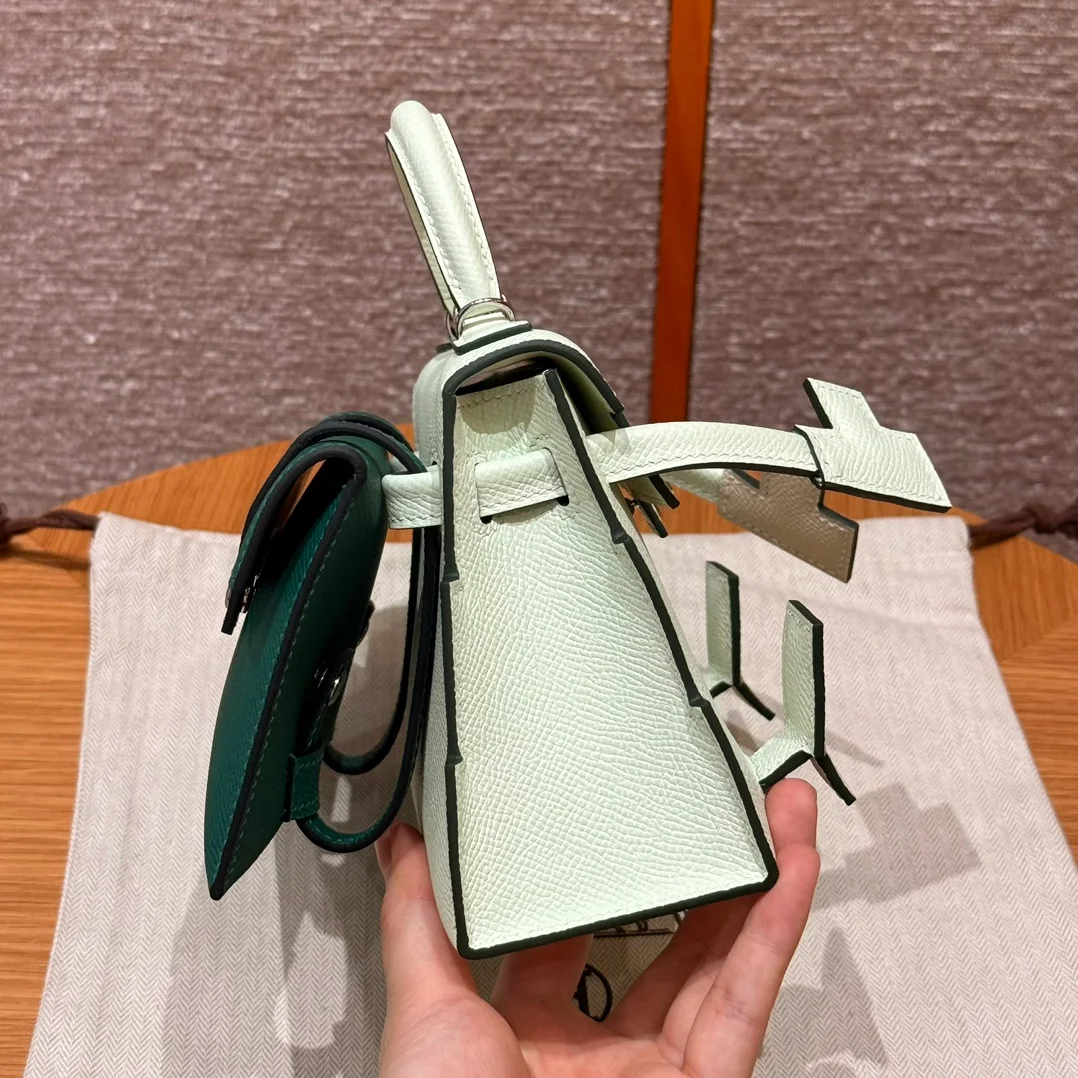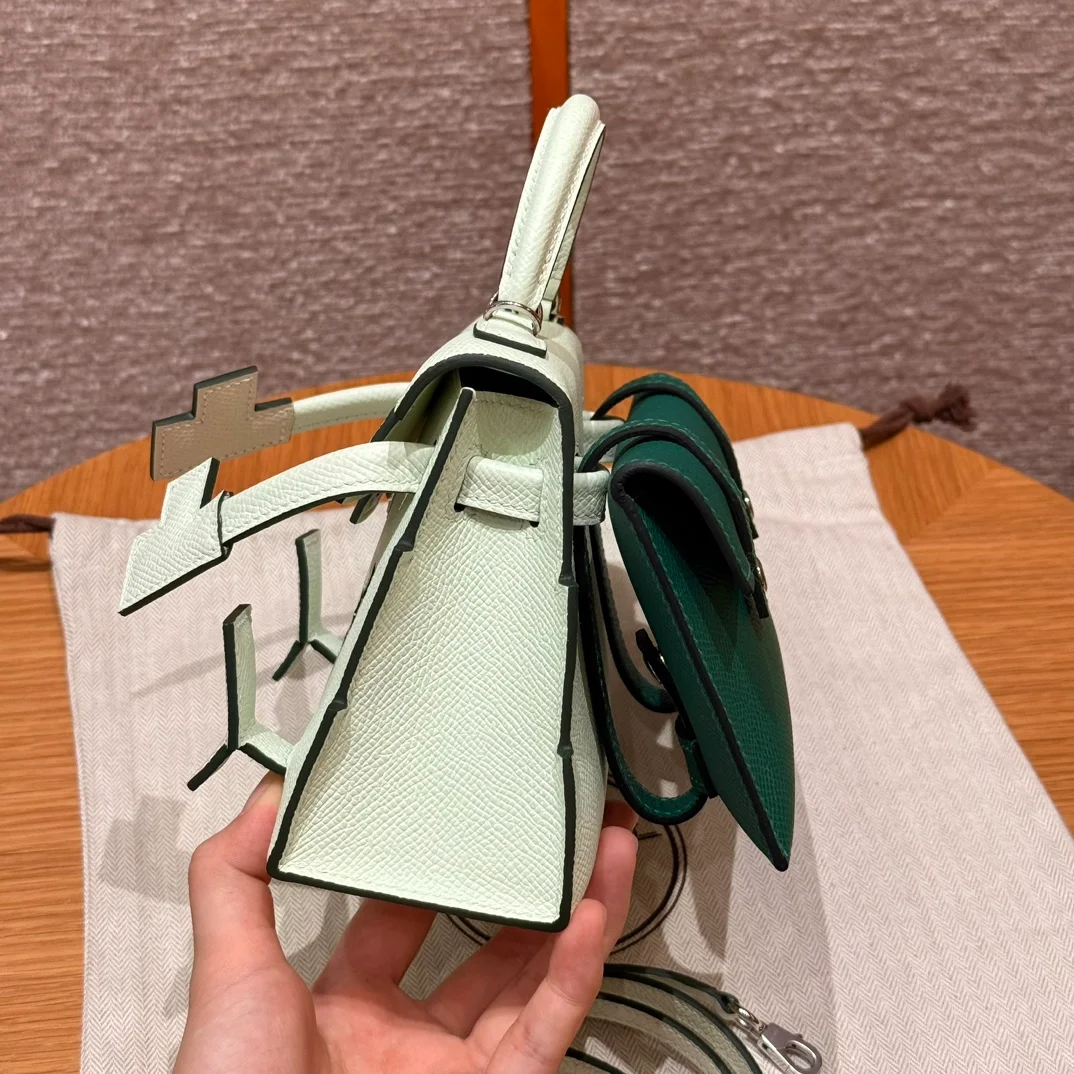 Hermes - Mosaic doll bag, 16.5cm, bubbly green; shoulder bag, peacock green; French imported palm-print cowhide leather; silver hardware; high-end, fully handcrafted, bespoke design!