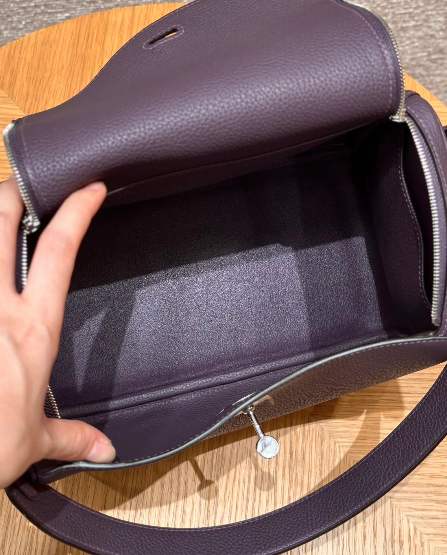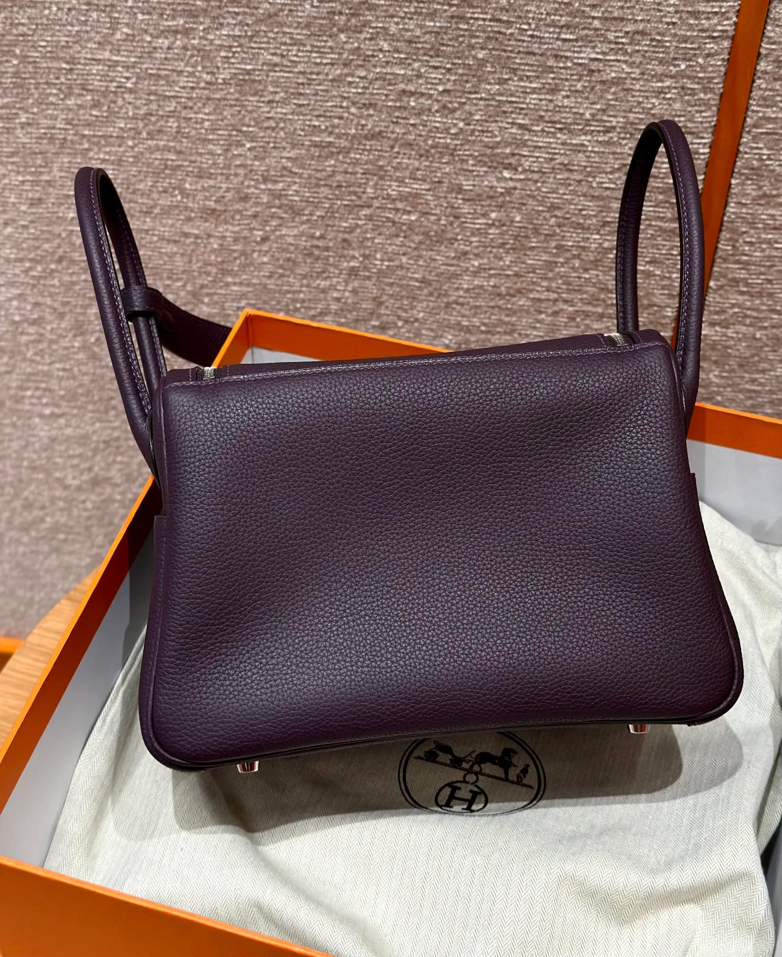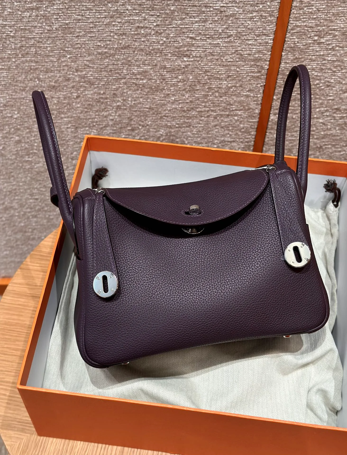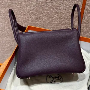 Hermes - Lindy 26, grape purple, cowhide, silver hardware.