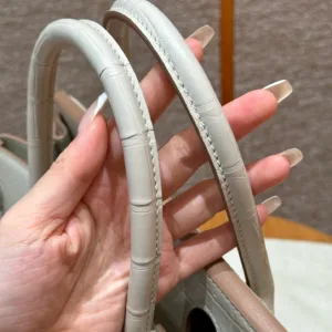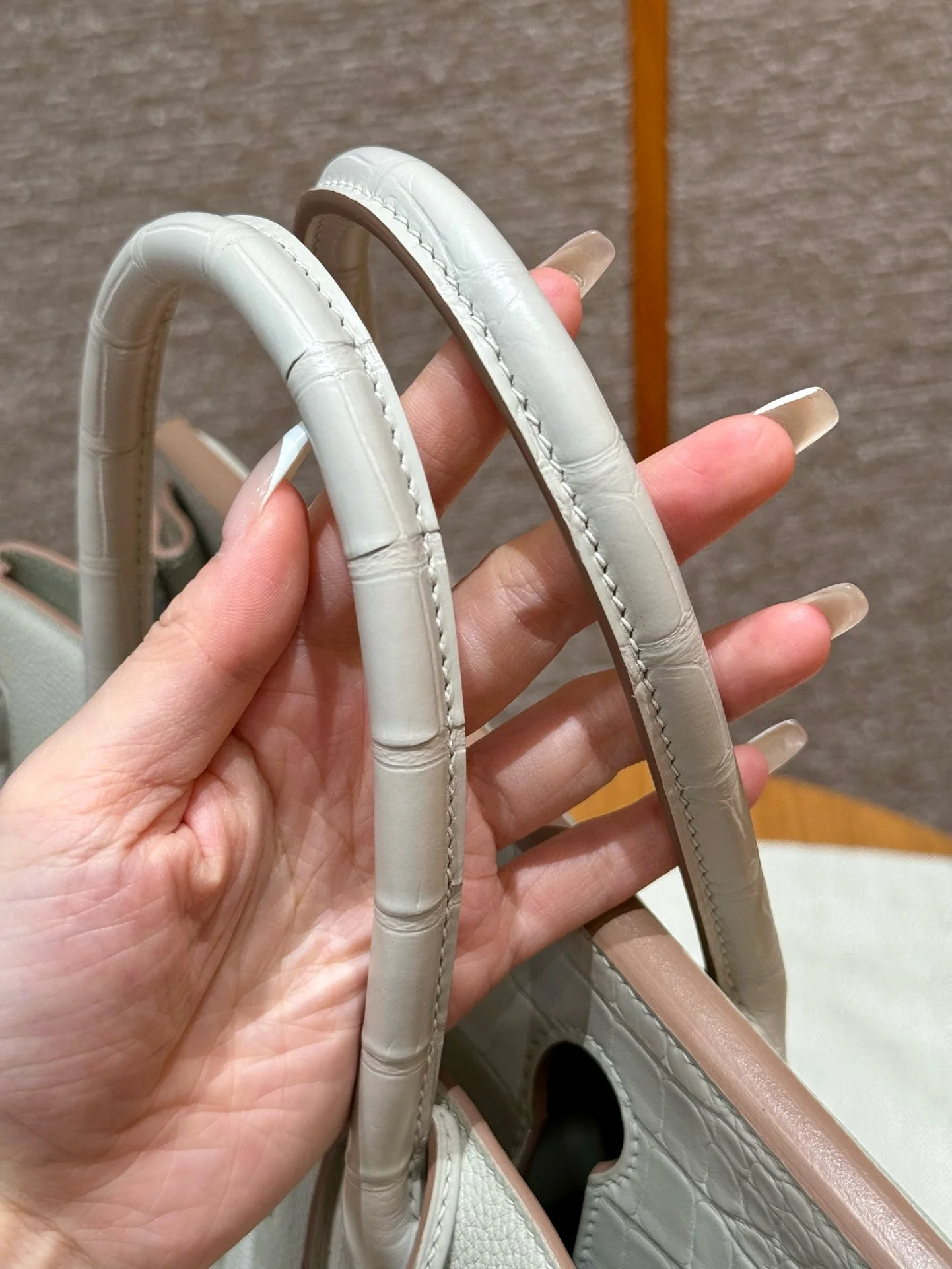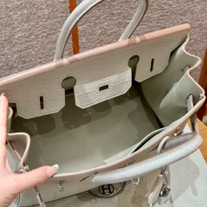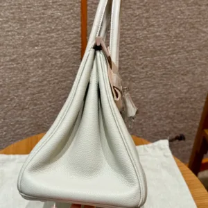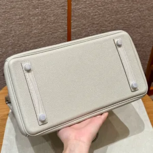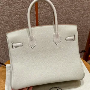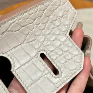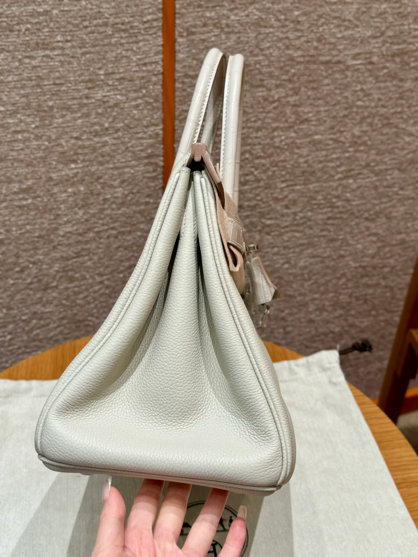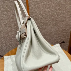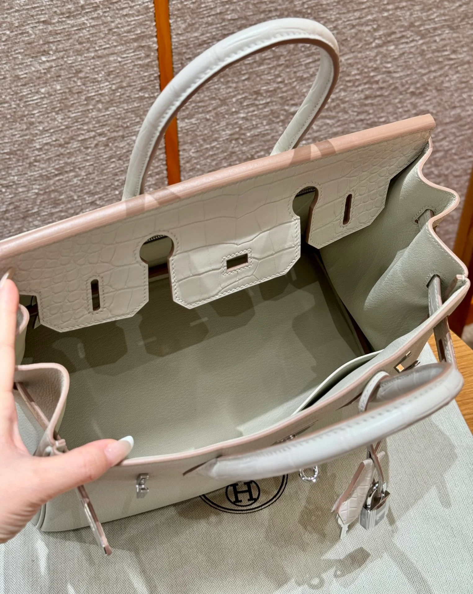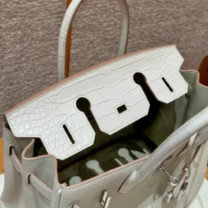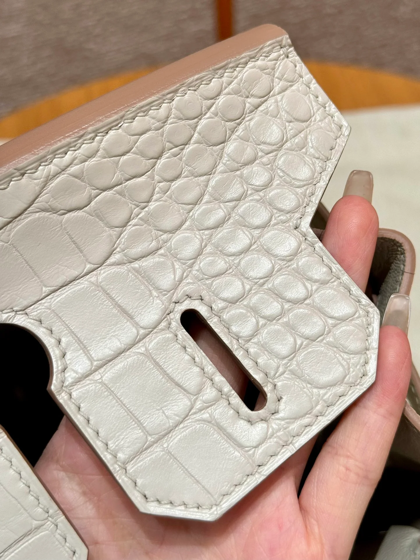 Hermes - Platinum Touch 30, Glacier White, Togo color scheme with matte American alligator 🐊 cap, silver hardware.