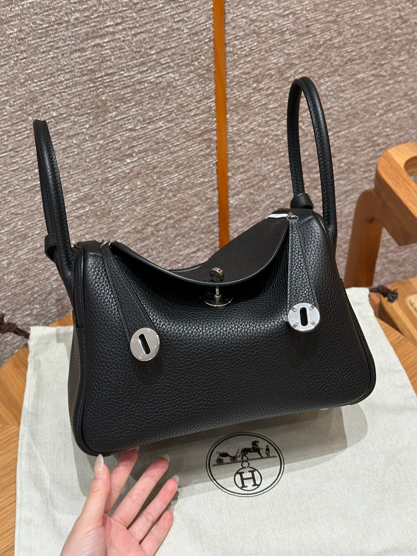 Hermes - Lindy 26, Black, French imported cowhide, silver hardware