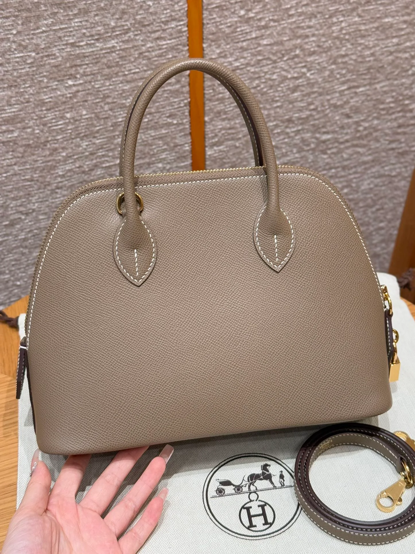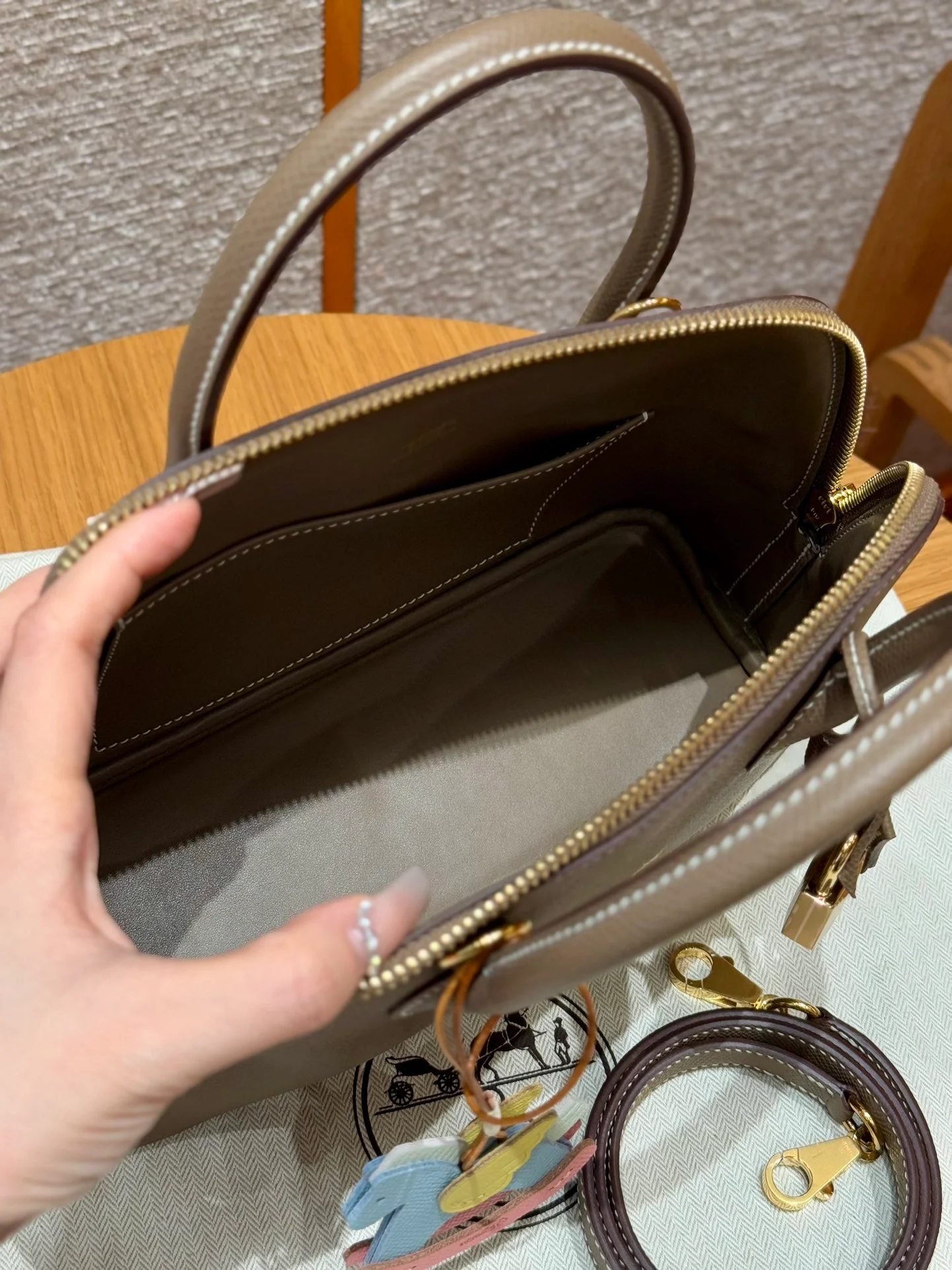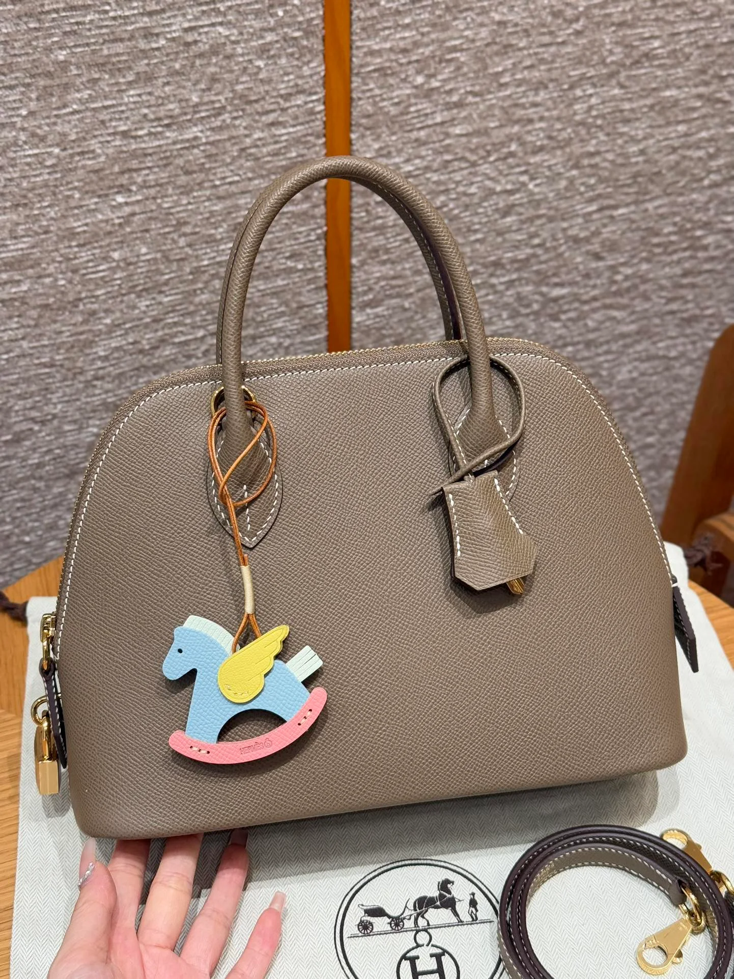 Hermes - Size: 25*20*10cm (bowling ball size 25), elephant gray, French imported palm-print cowhide leather, gold hardware.