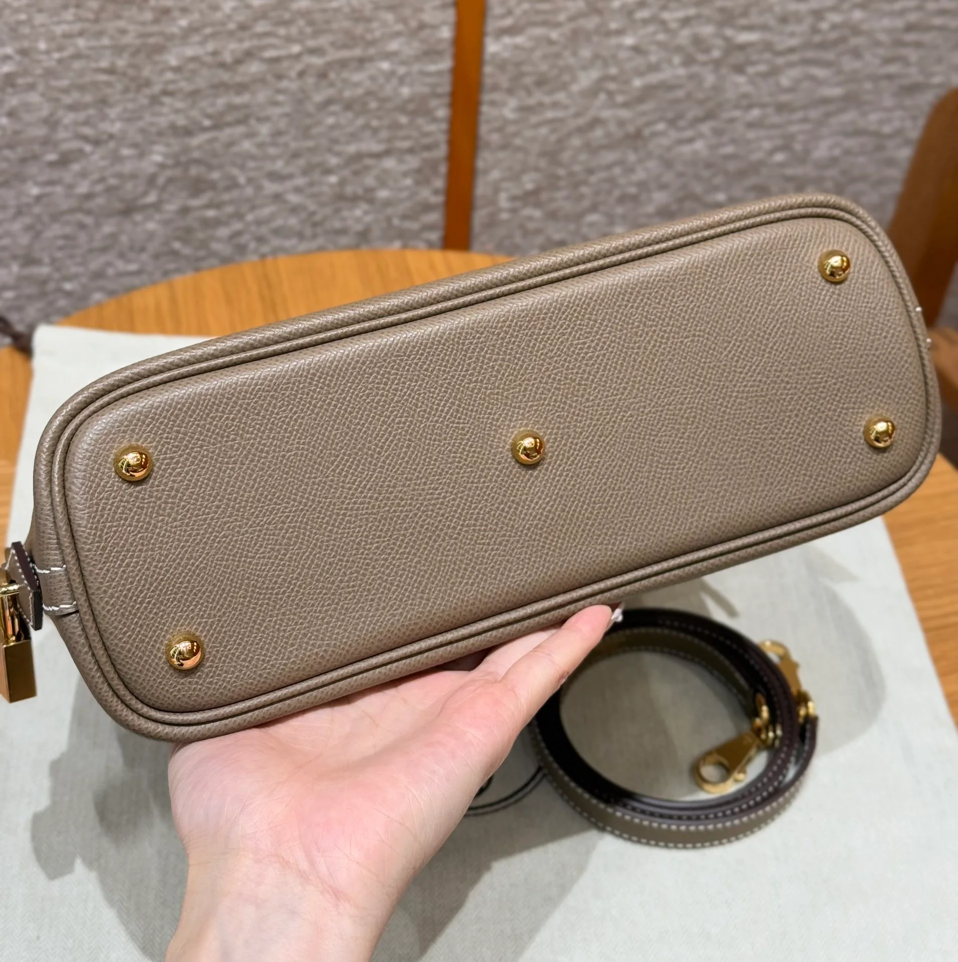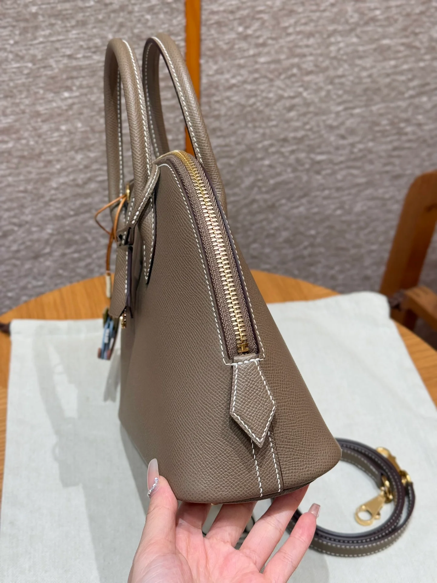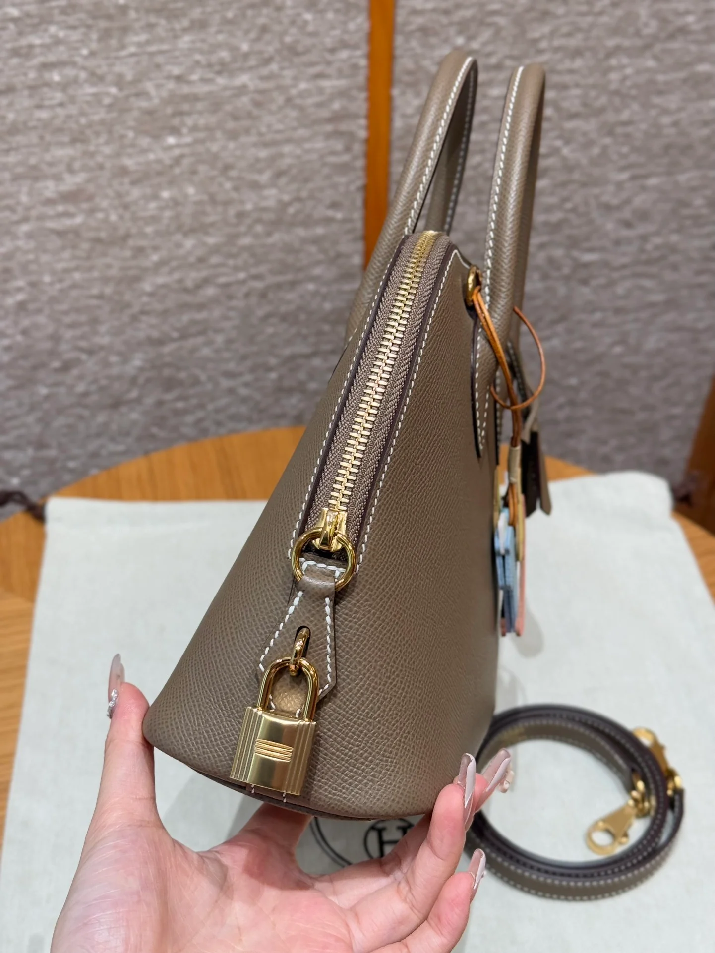 Hermes - Size: 25*20*10cm (bowling ball size 25), elephant gray, French imported palm-print cowhide leather, gold hardware.
