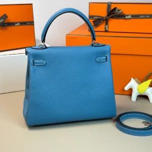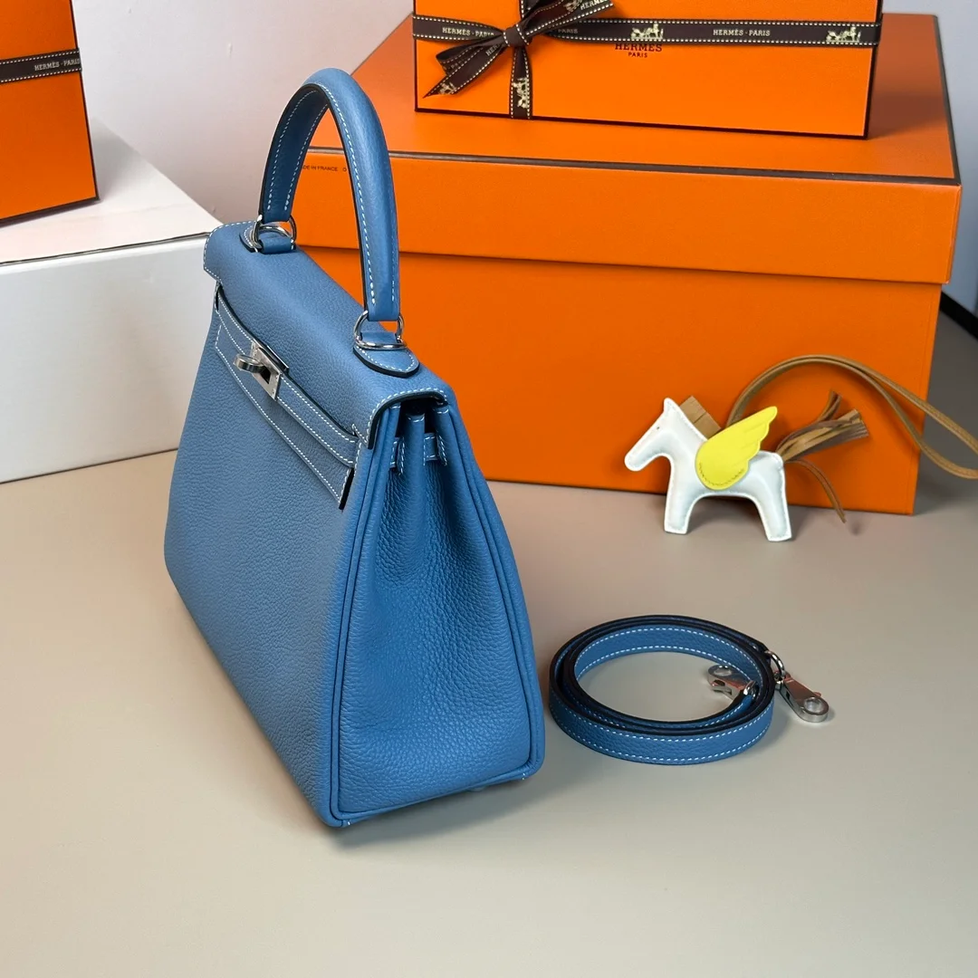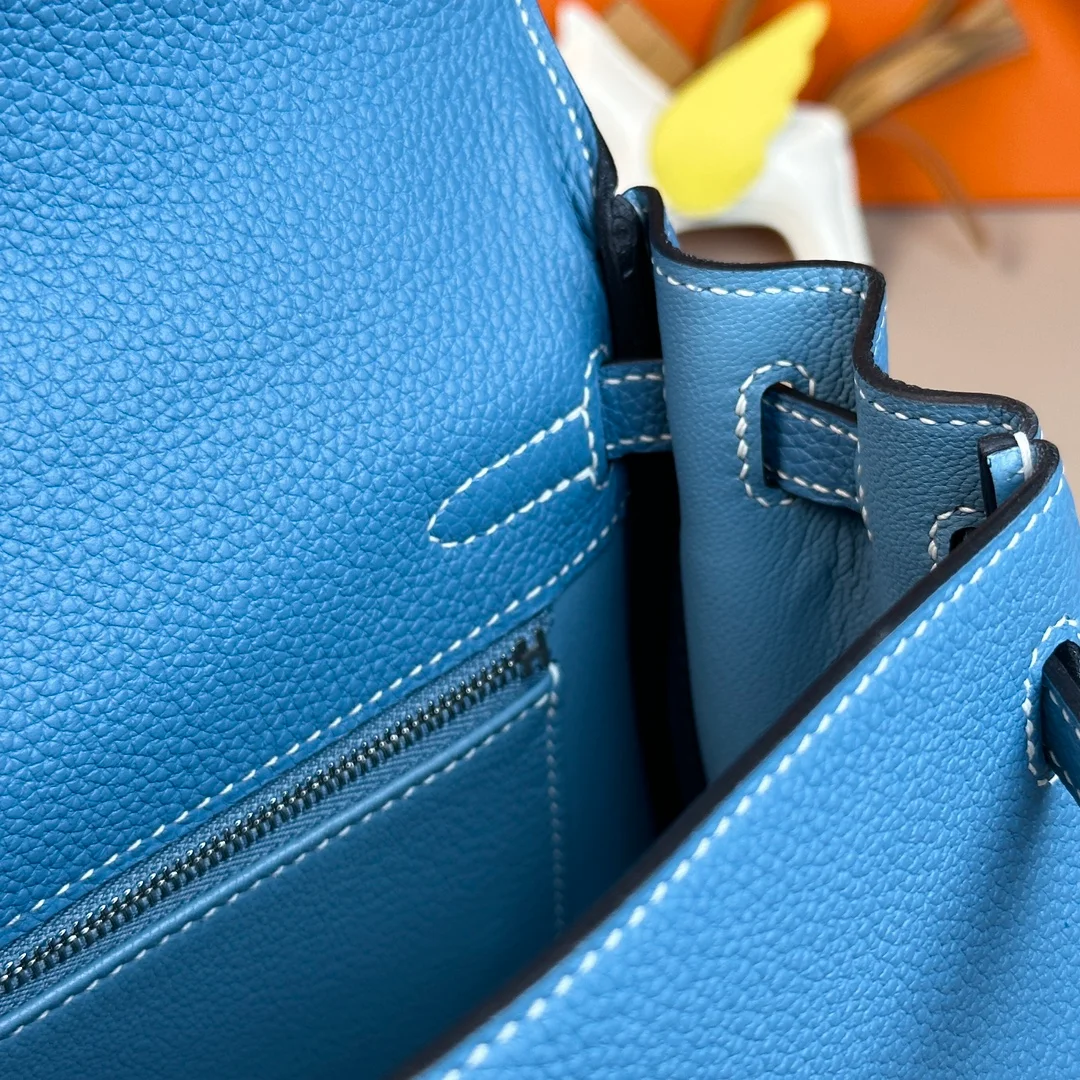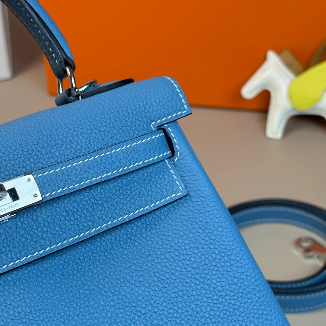 Hermes - Kelly25 Denim Blue, Togo, Silver Buckle