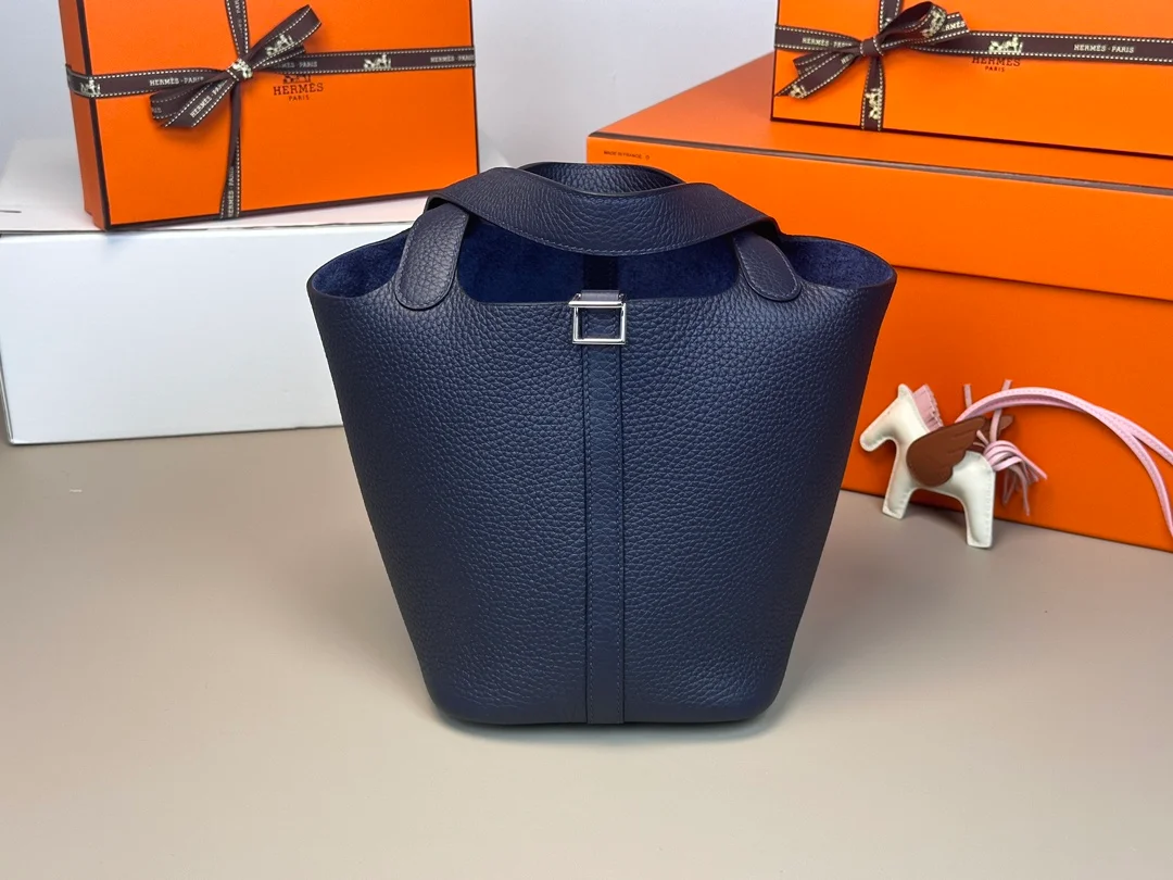 Hermes - Vegetable Basket 18 Midnight Blue TC Silver Buckle