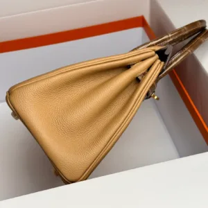 Hermes - The complete set includes a silk scarf or a small horse pendant. Birkin 25, caramel color, with gold touch hardware.