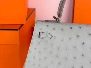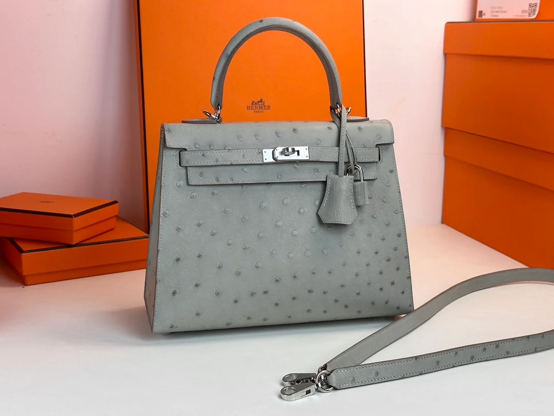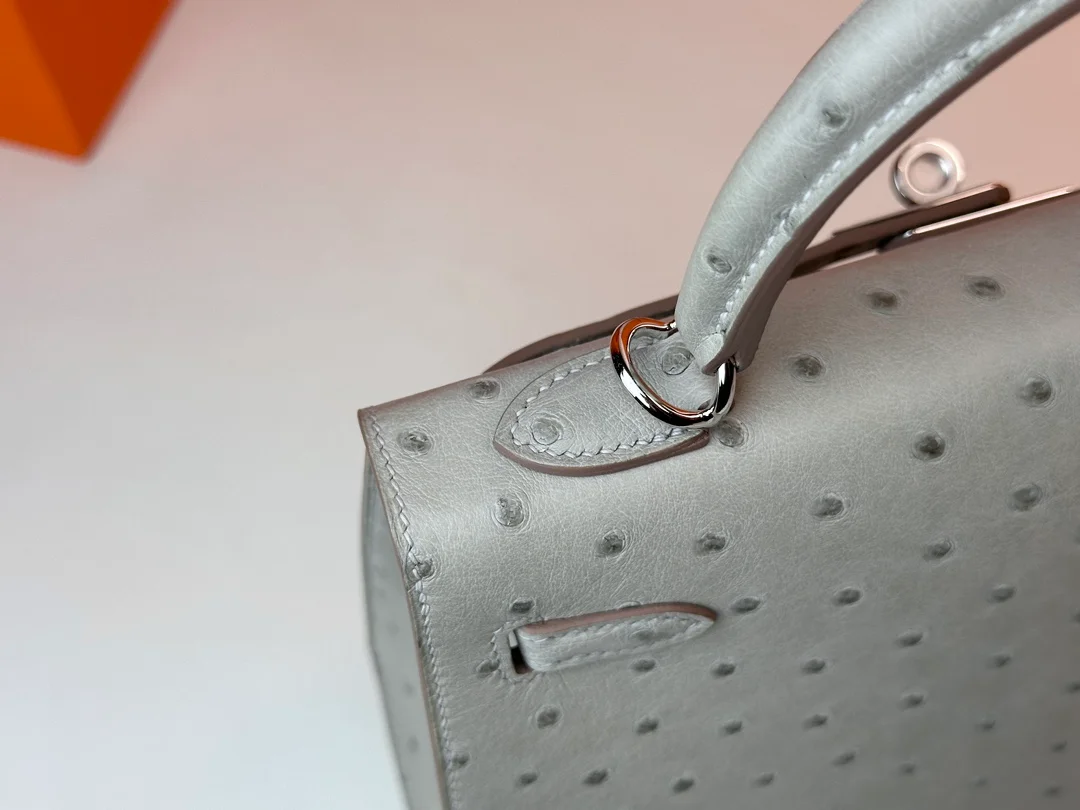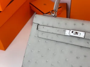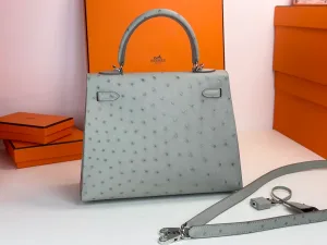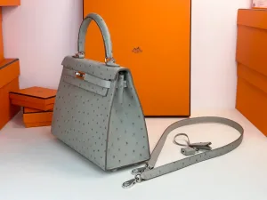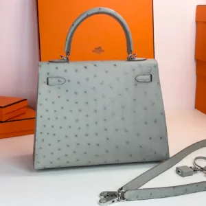 Hermes - Kelly25 Glacier Blue, Ostrich Leather, Silver Buckle. It looks like the authentic Kelly in a boutique. Is it your style?