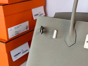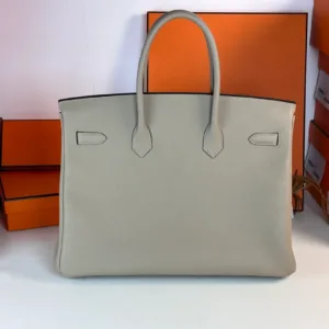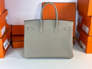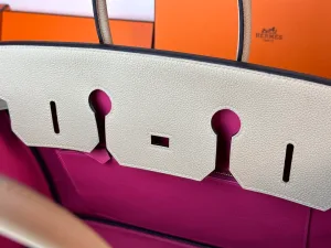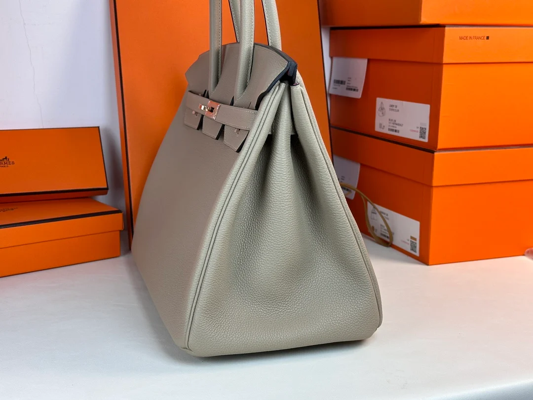 Hermes - Birkin 35, Dove Grey interior with Mexican Pink accents, Togo rose gold clasp.
