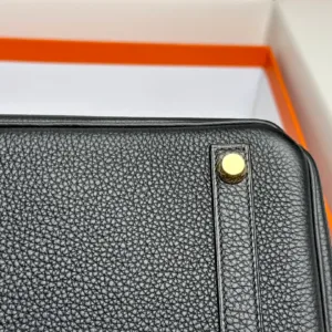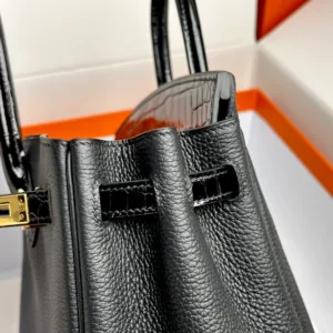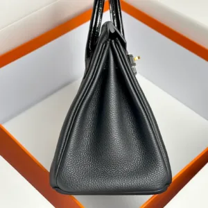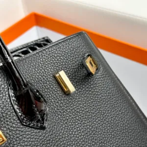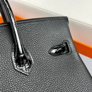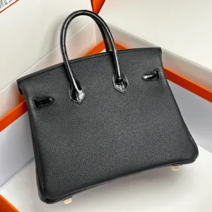 Hermes - Full set includes a silk scarf or a pony Birkin 25 in black and gold with a glossy finish. (Nile Touch)
