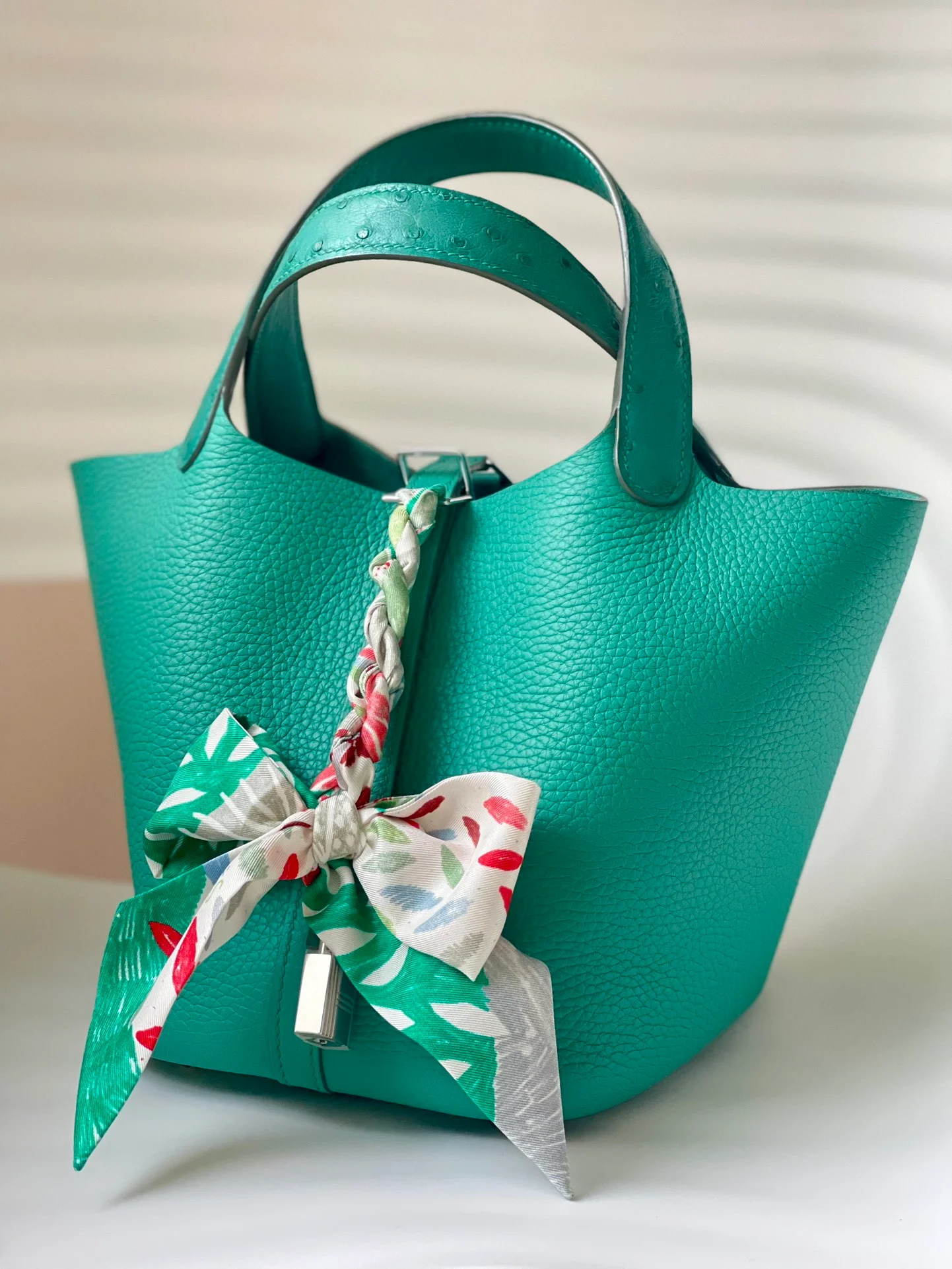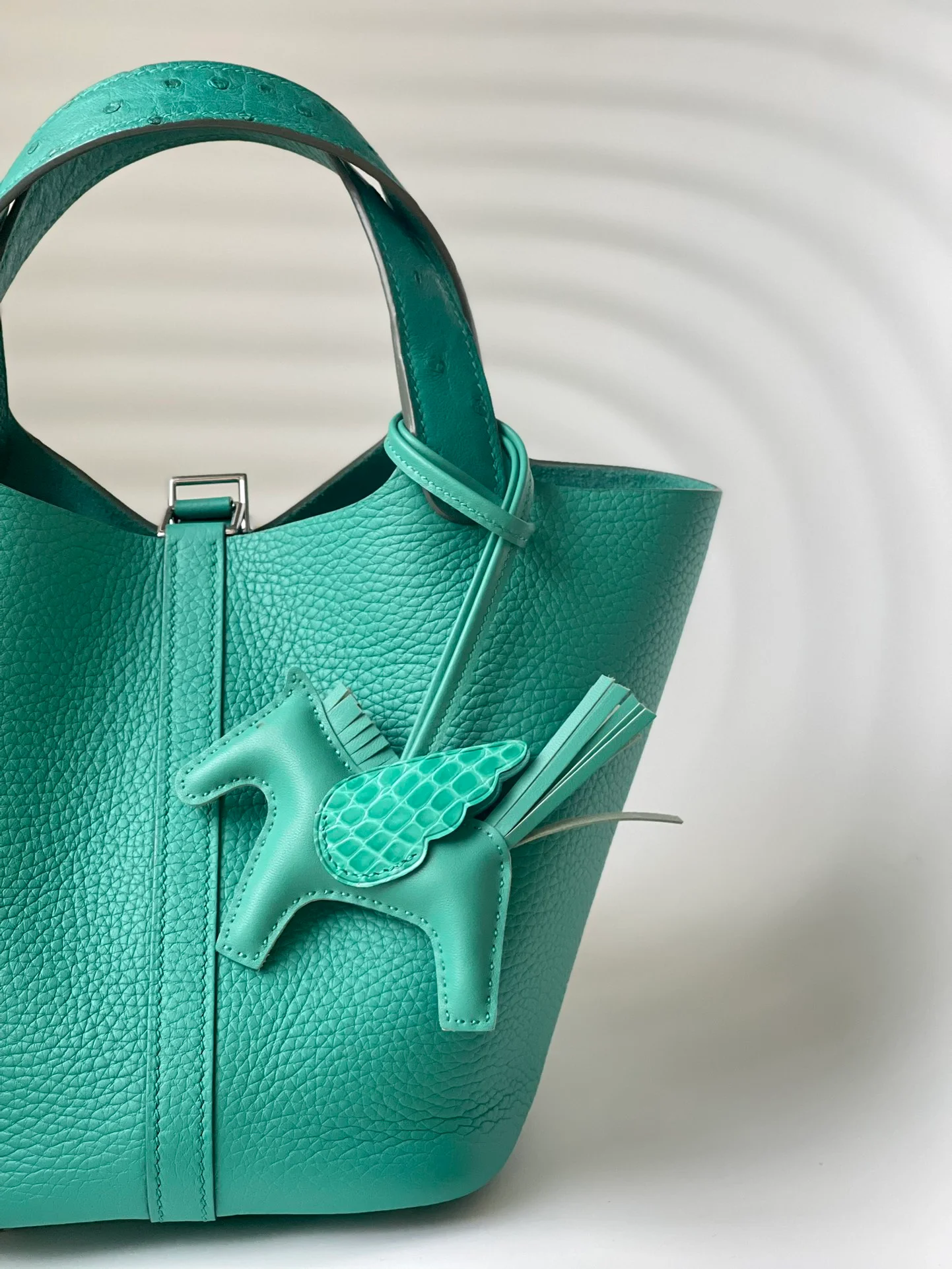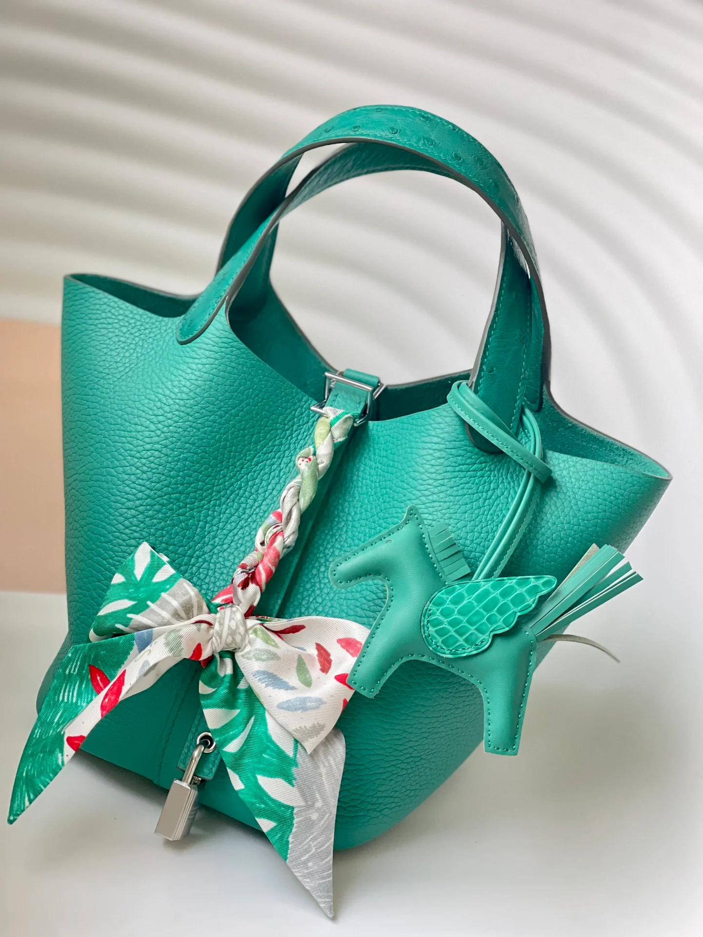 Hermes - The Picotin18 Touch features a rare combination of crocodile and ostrich leather. It's quite unique, isn't it? I've only ever seen crocodile leather handles before; this is the first time I've bought an ostrich leather handle. [laughing emoji]
