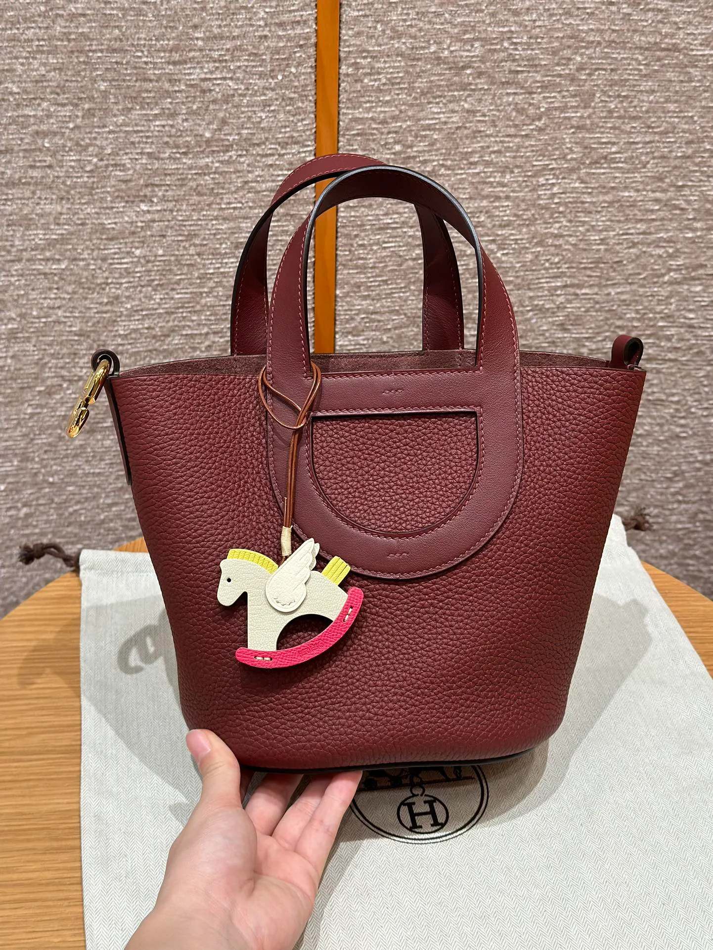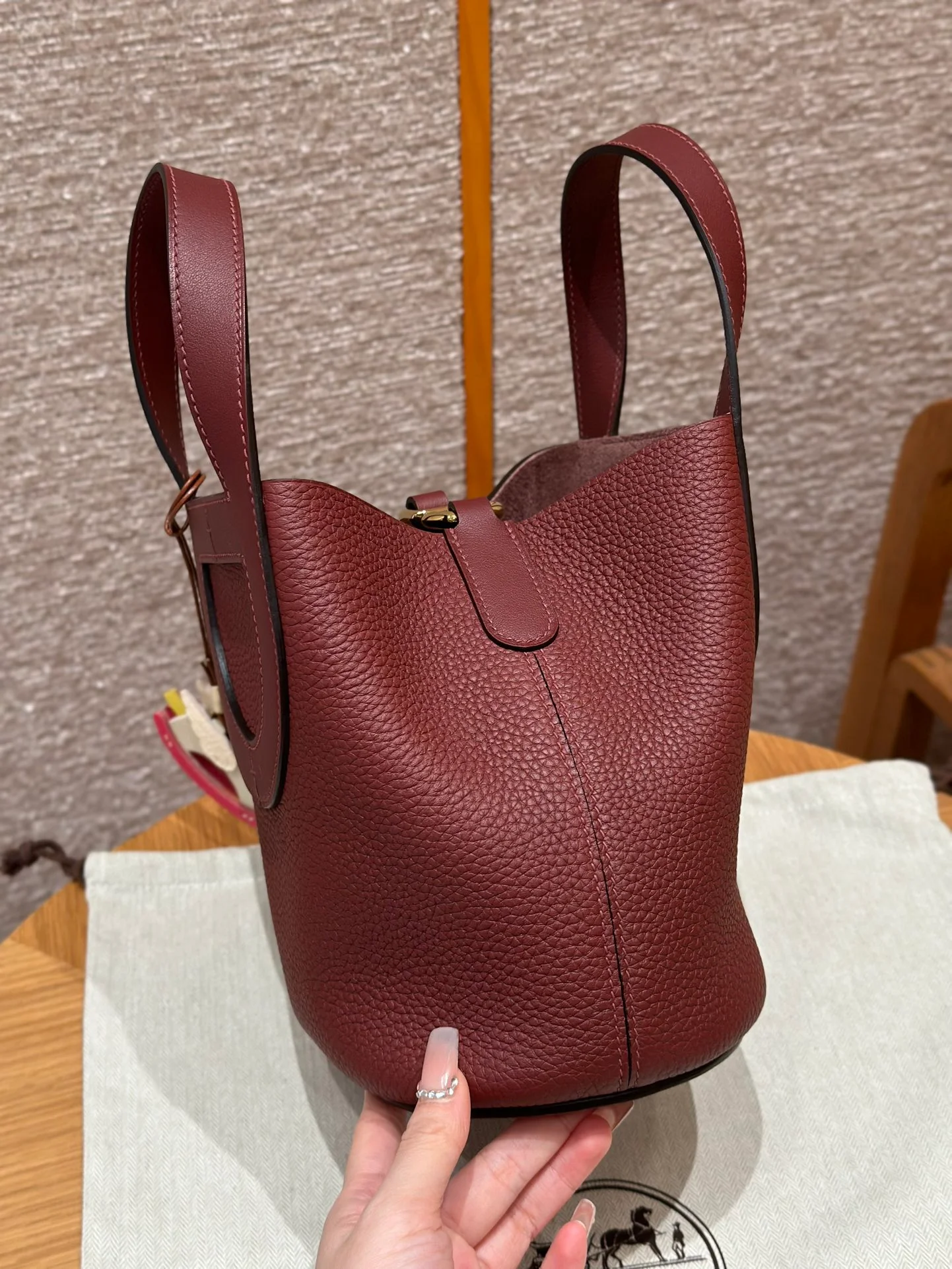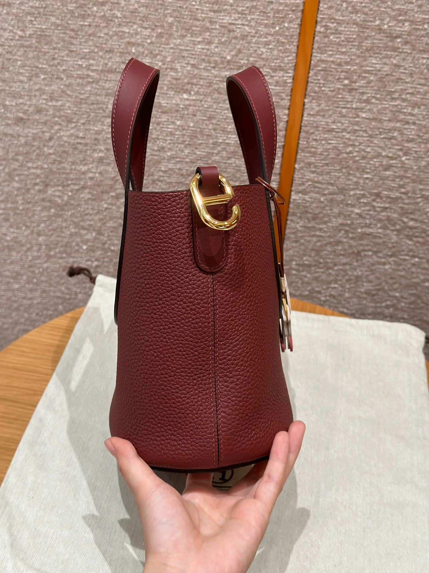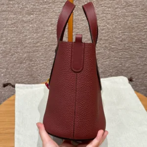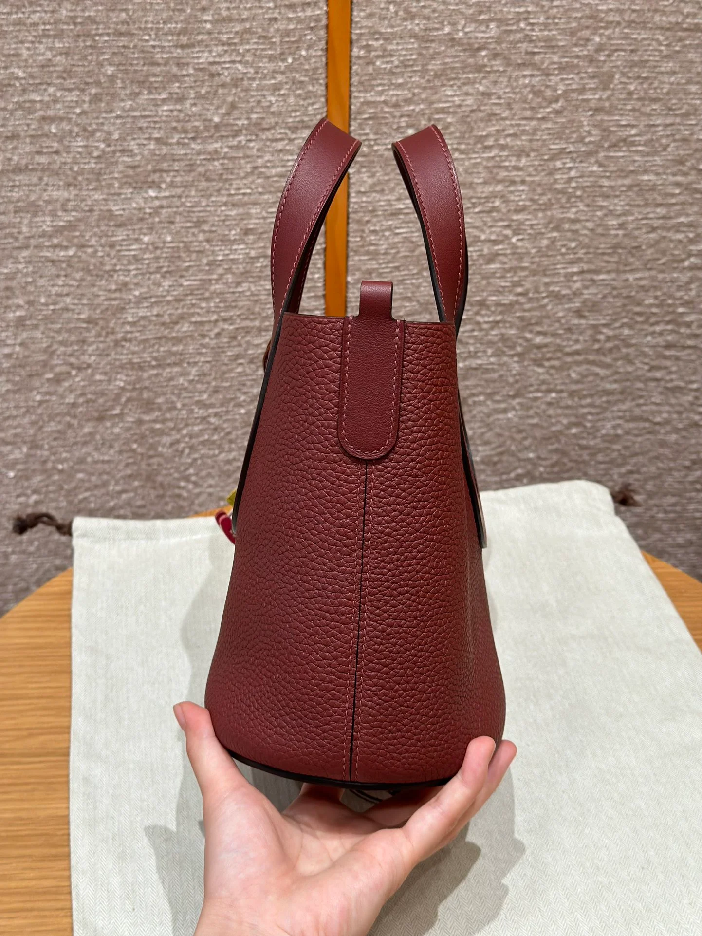 Hermes - 18cm pig-nose vegetable basket, Hermes red, French imported cowhide, gold hardware.