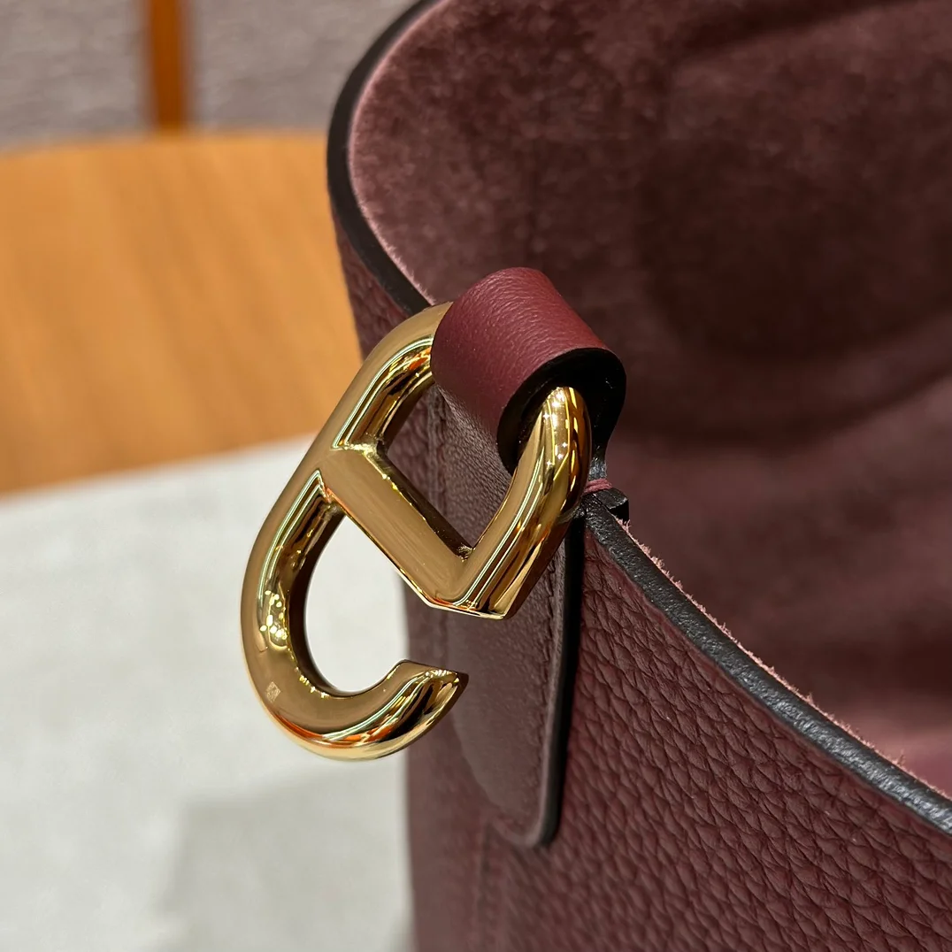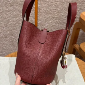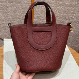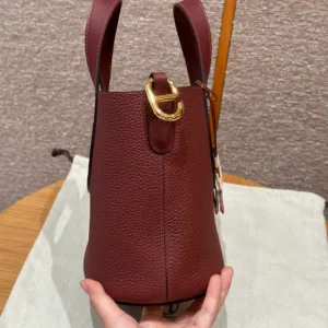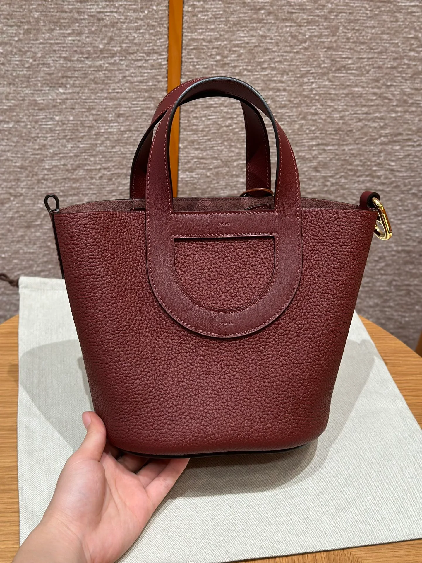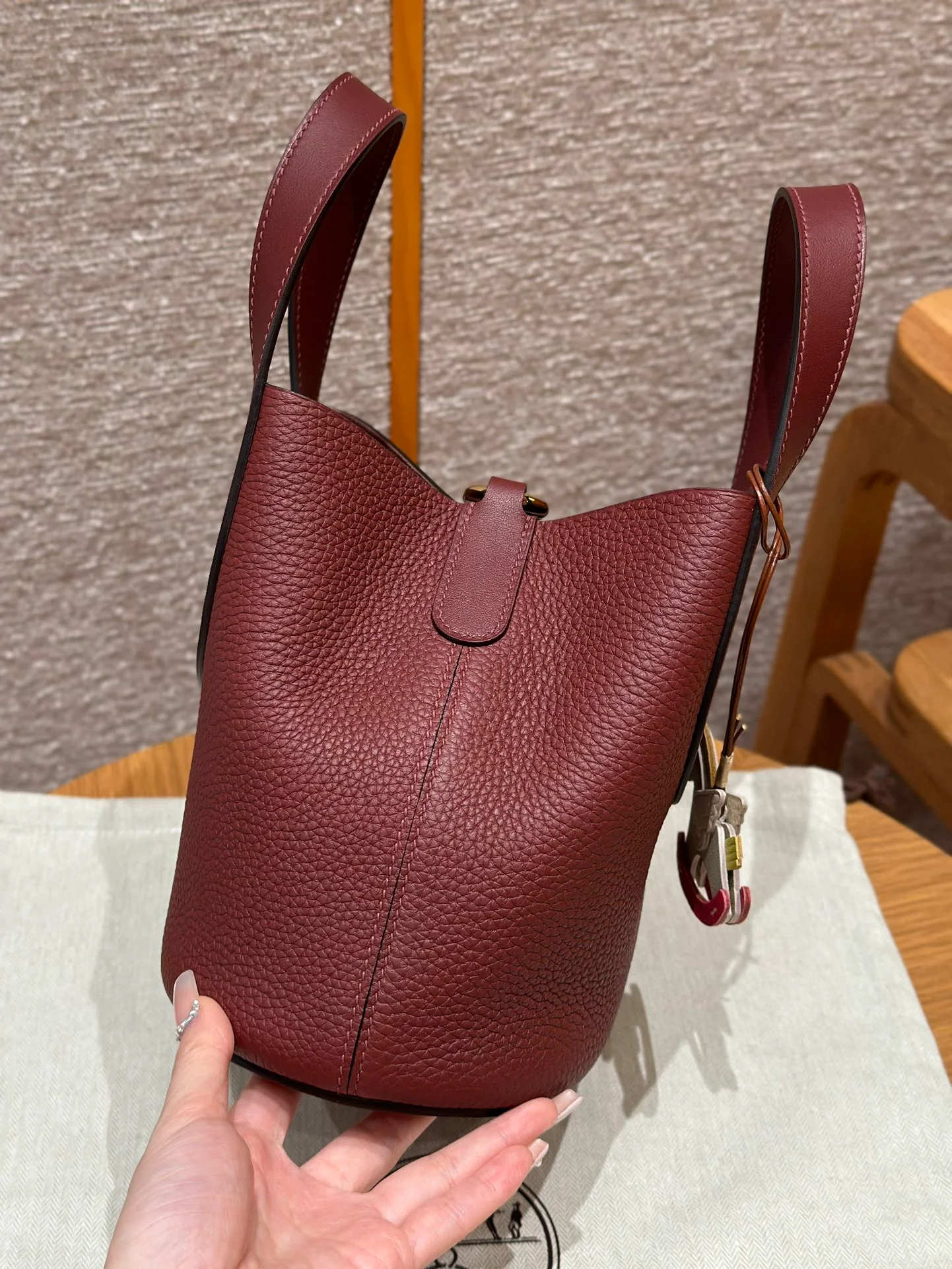 Hermes - 18cm pig-nose vegetable basket, Hermes red, French imported cowhide, gold hardware.