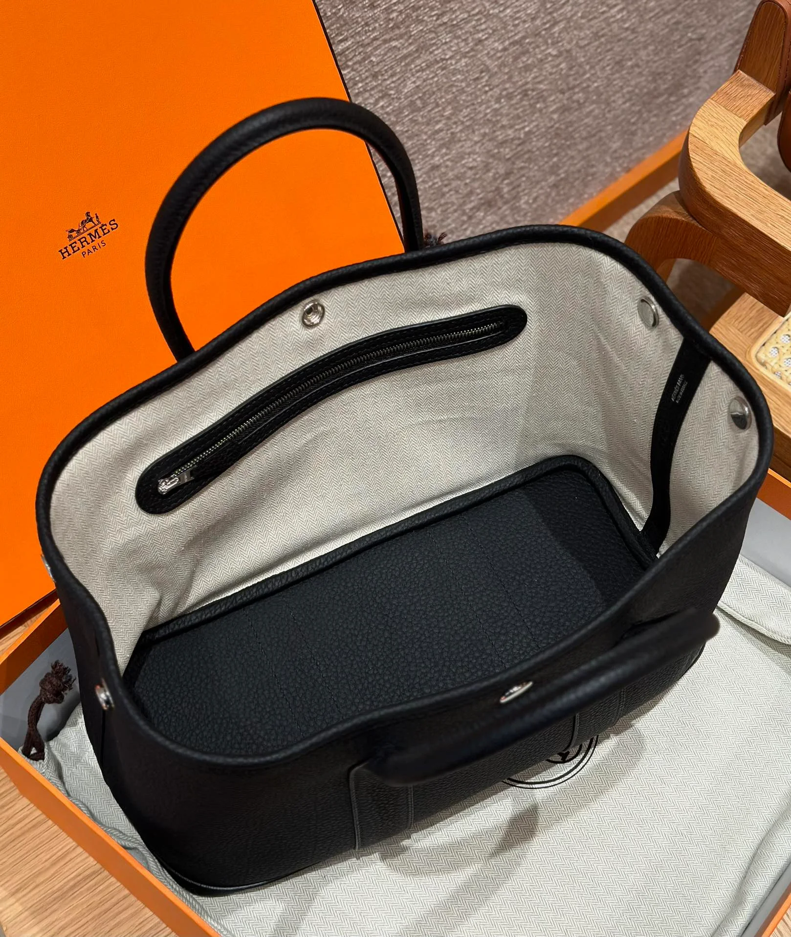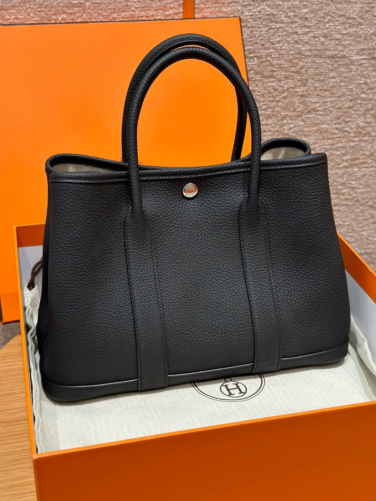 Hermes - Garden bag, 30cm, black, ntogo, silver hardware.