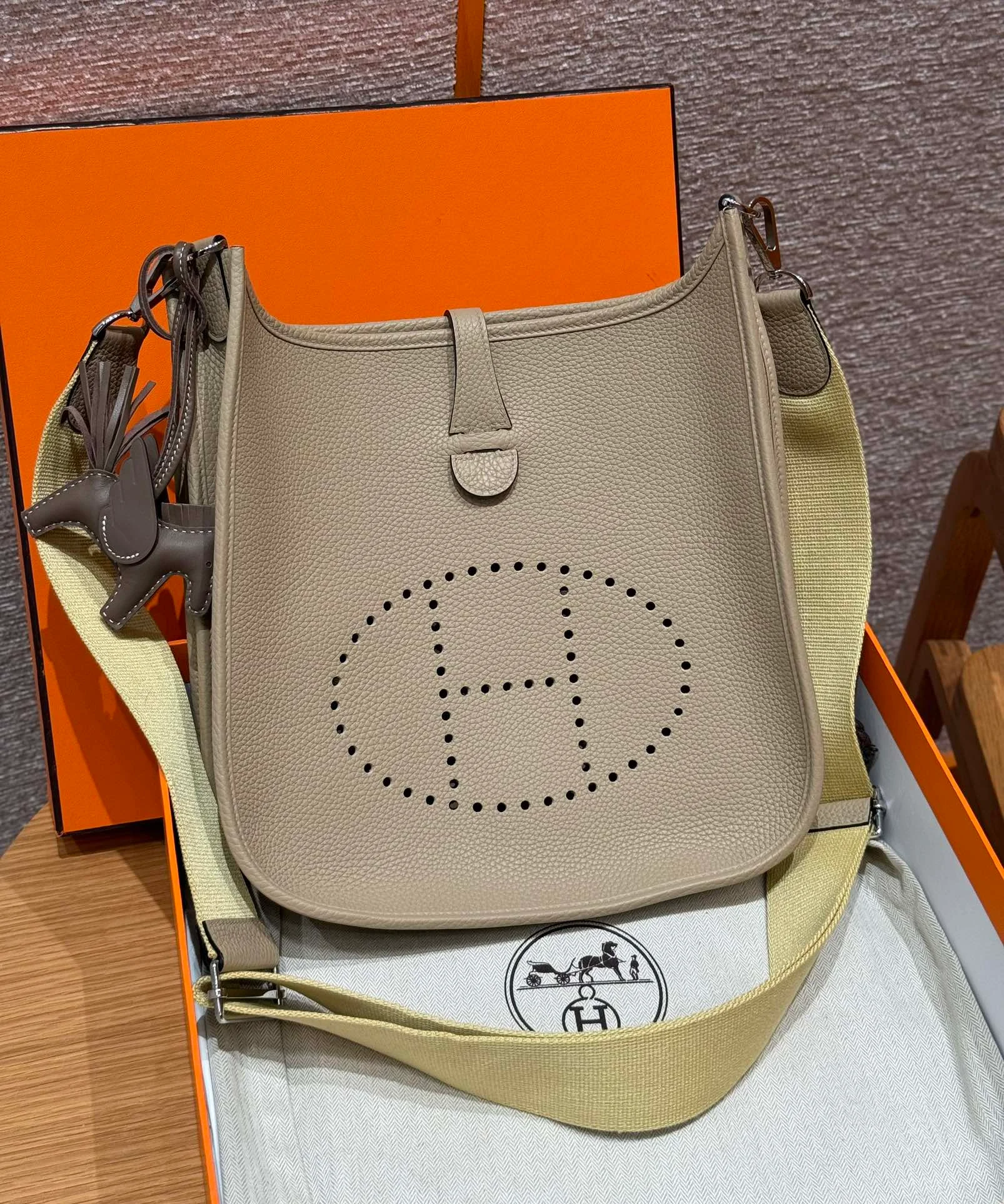 Hermes - Evelyn, 29cm, grey trench coat, French imported cowhide, silver hardware.