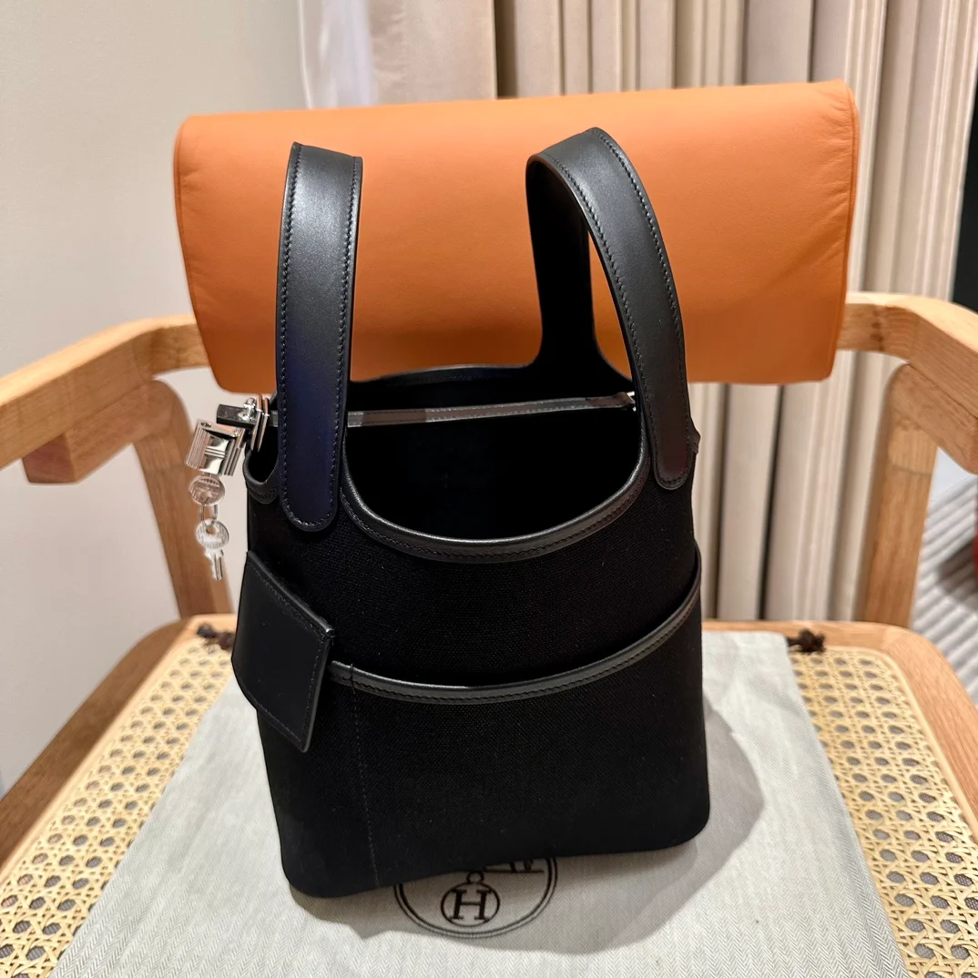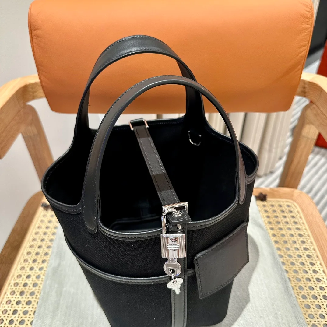 Hermes - Basket-style bucket bag, 18cm, black, silver hardware‼️