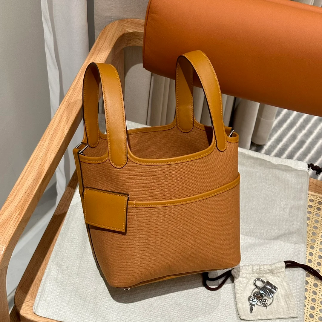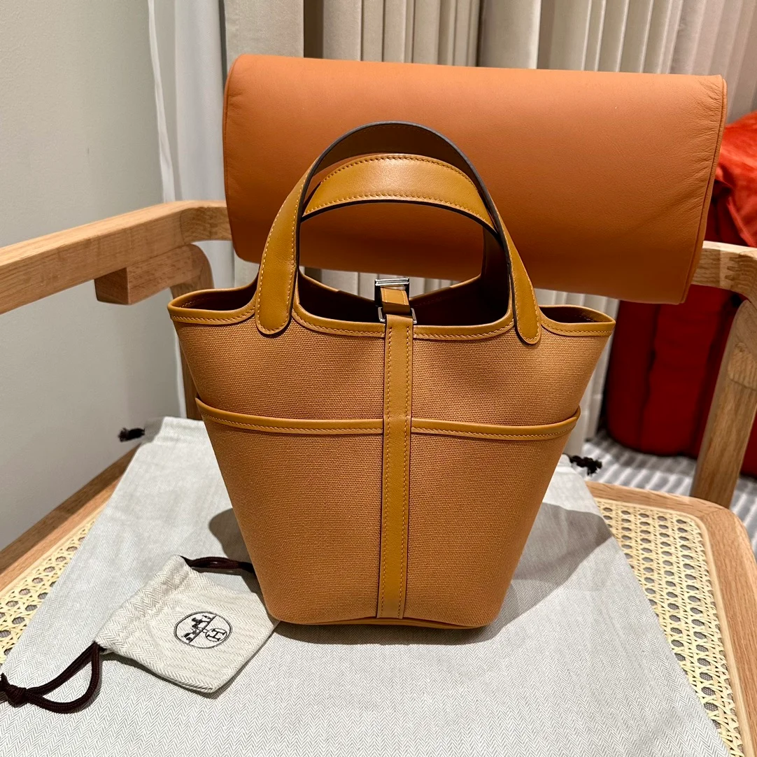 Hermes - Picotin 18 cargo bag, basket-style bucket bag, 18cm, sesame color, silver hardware‼️