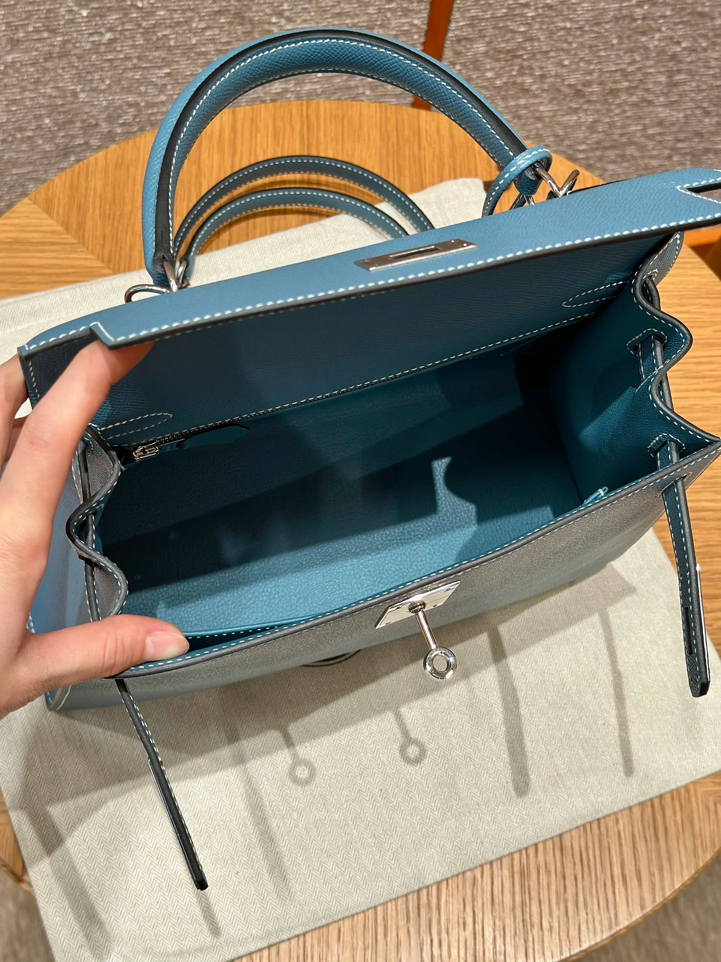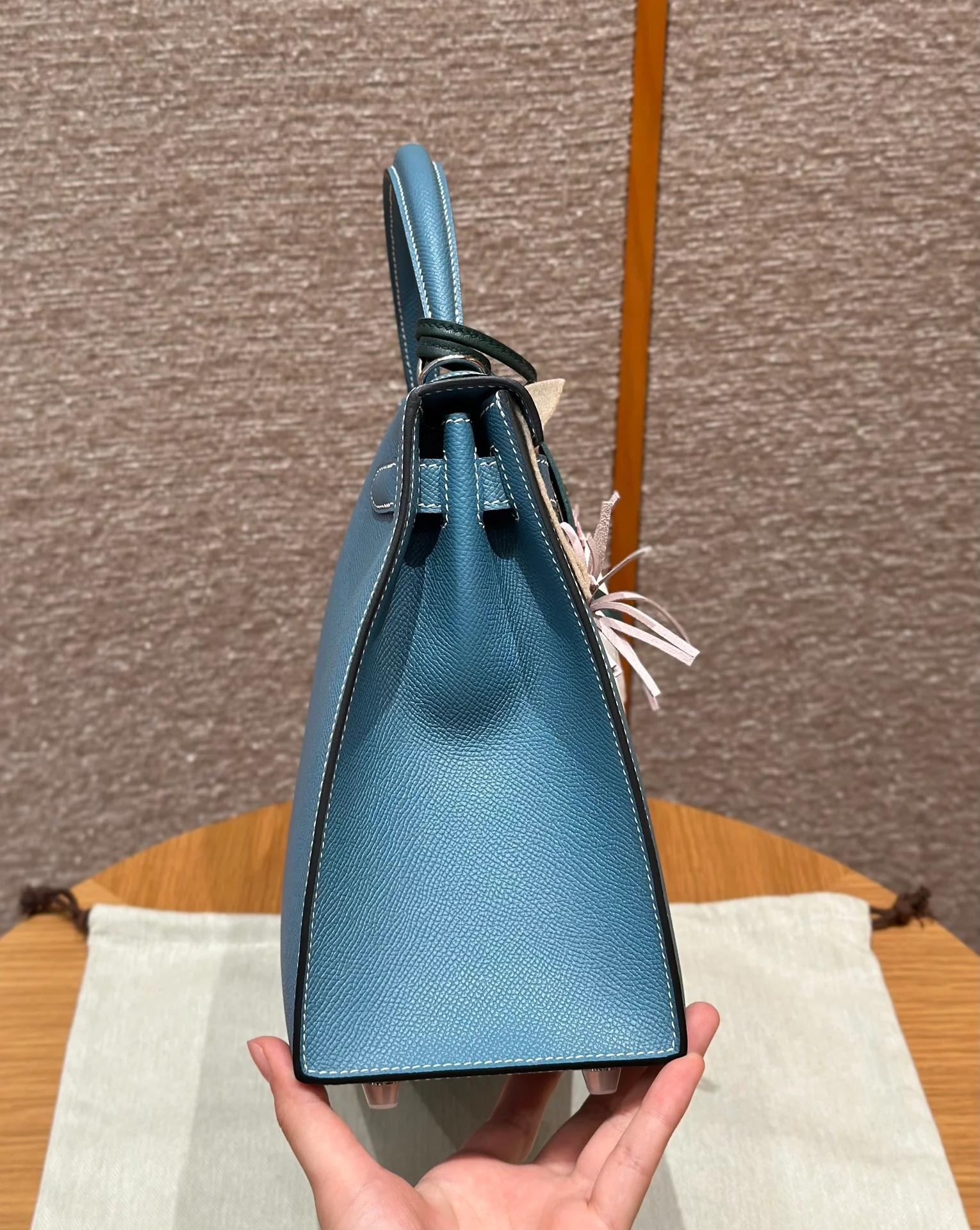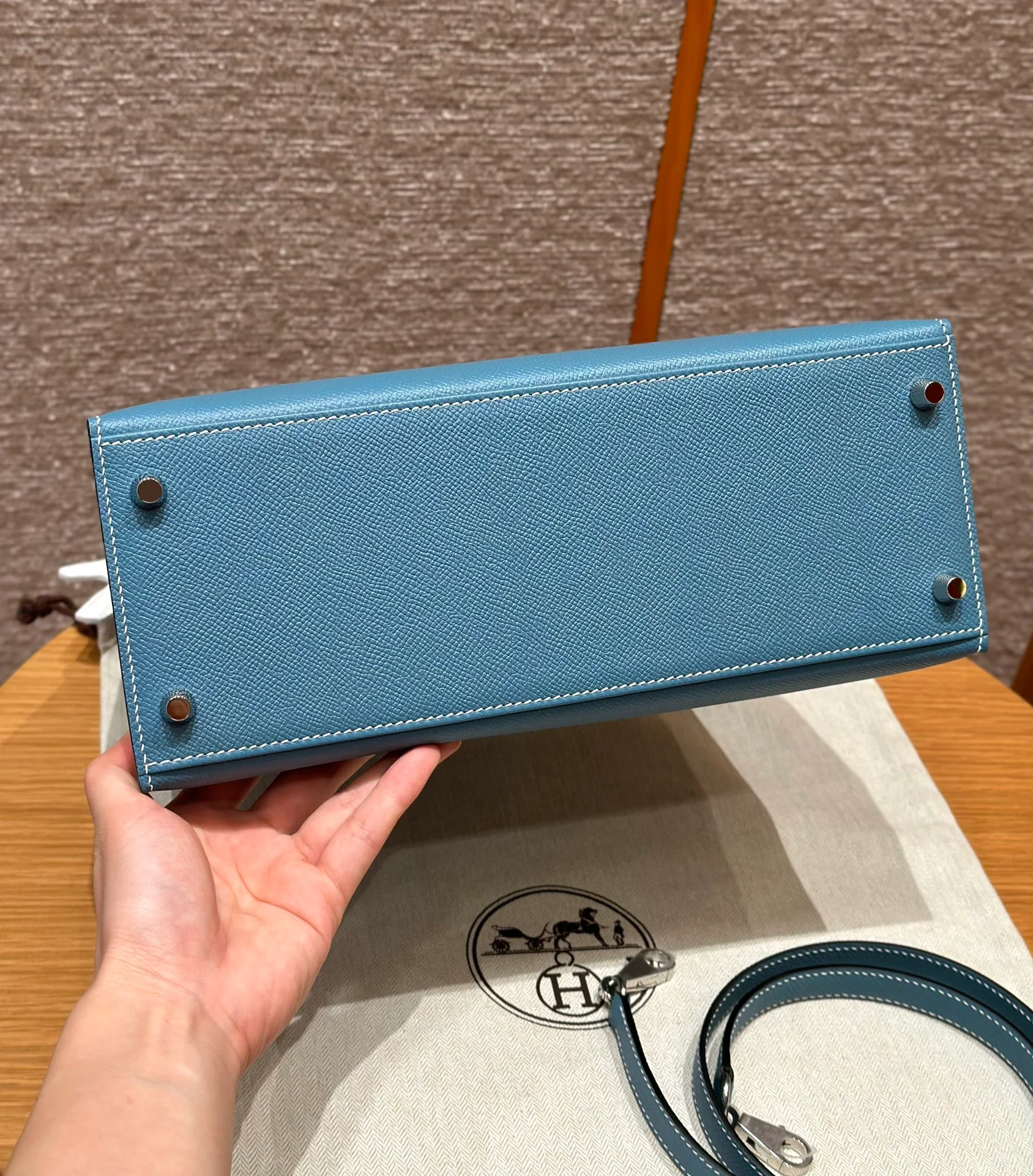 Hermes - Kelly 28cm, denim blue, French imported palm-print cowhide leather, silver buckle on the outside, high-end, fully handmade, exclusive customization‼