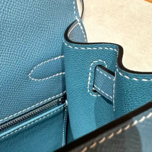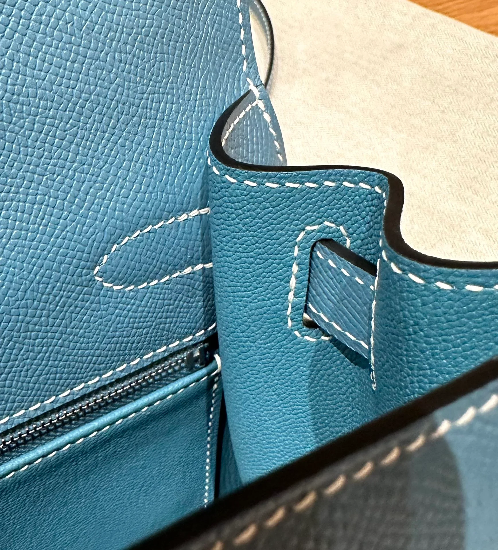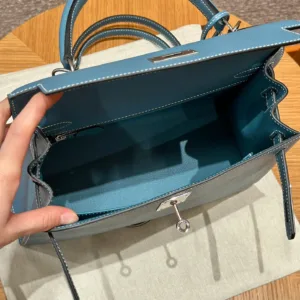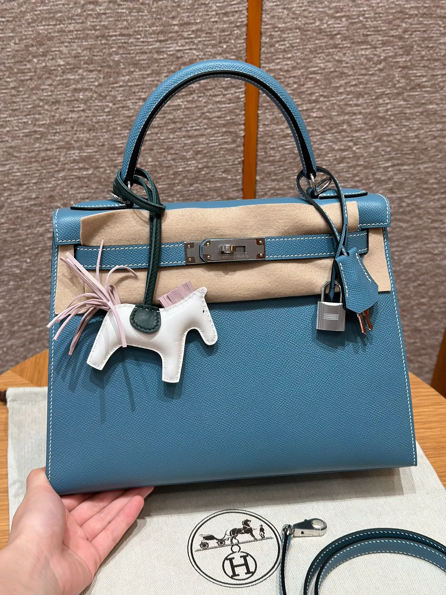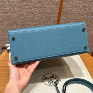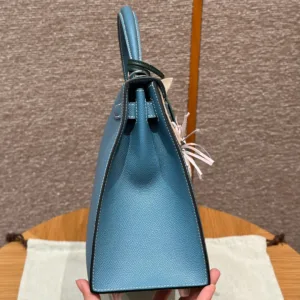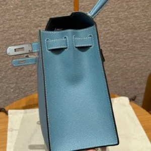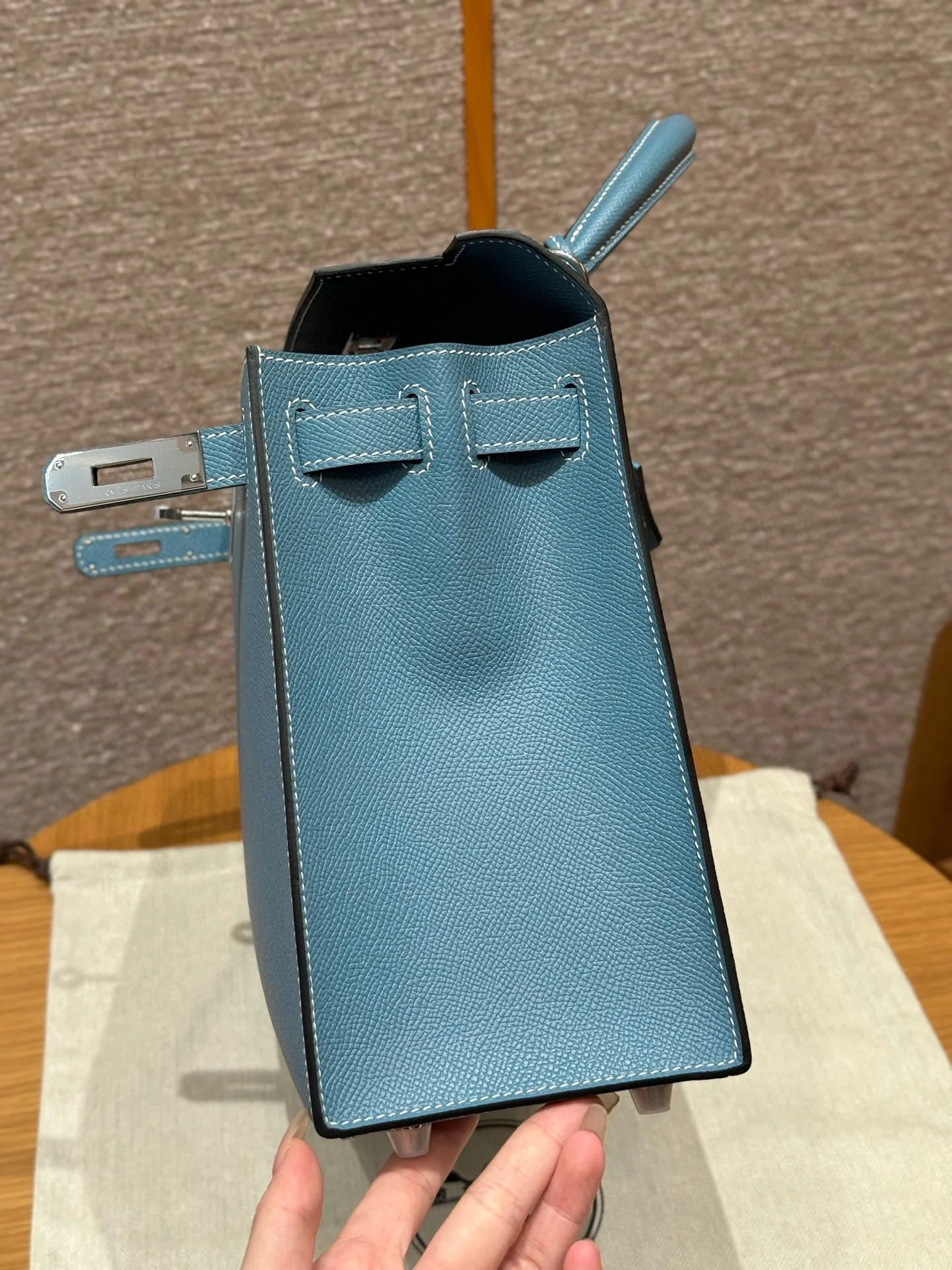 Hermes - Kelly 28cm, denim blue, French imported palm-print cowhide leather, silver buckle on the outside, high-end, fully handmade, exclusive customization‼