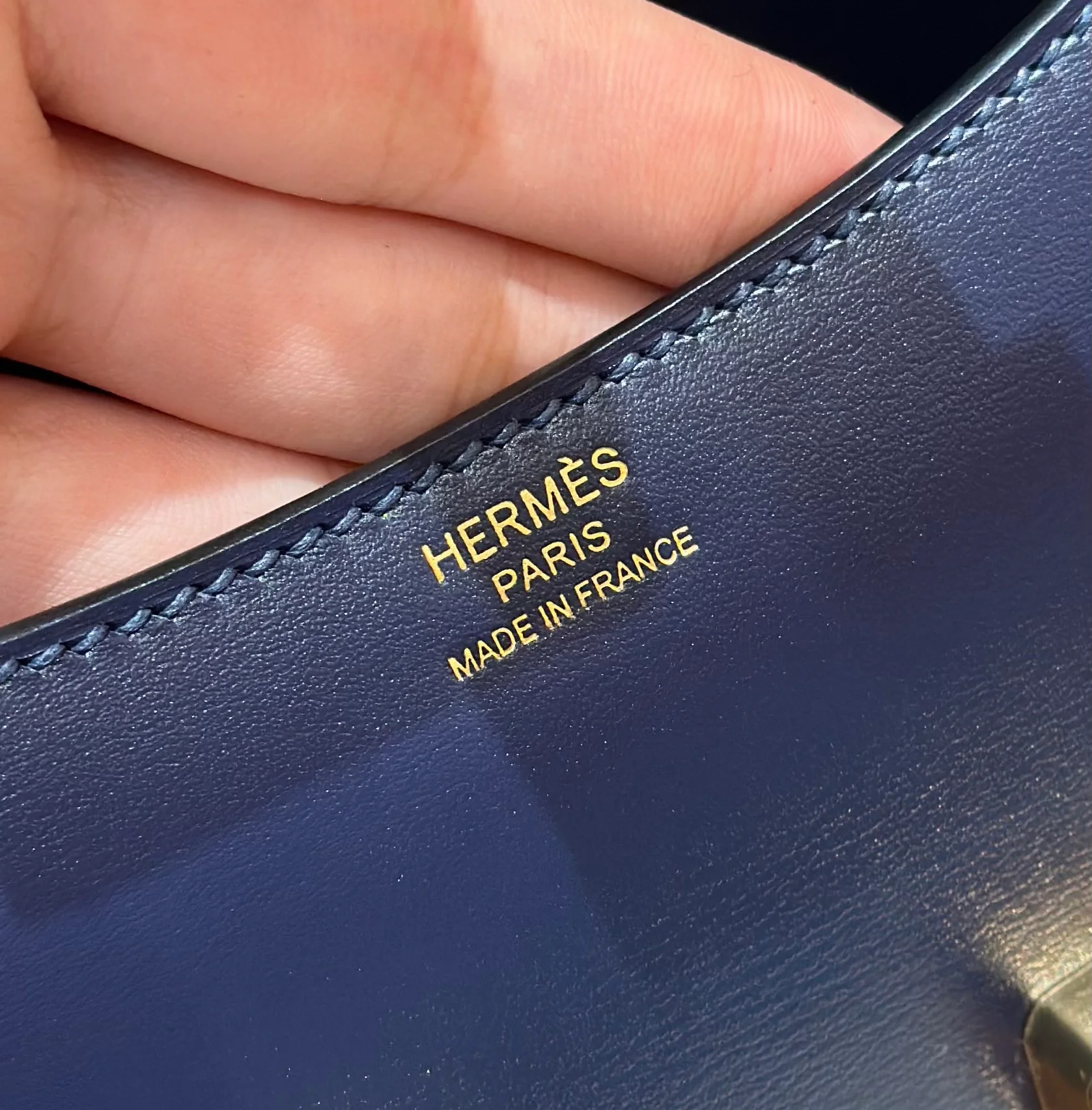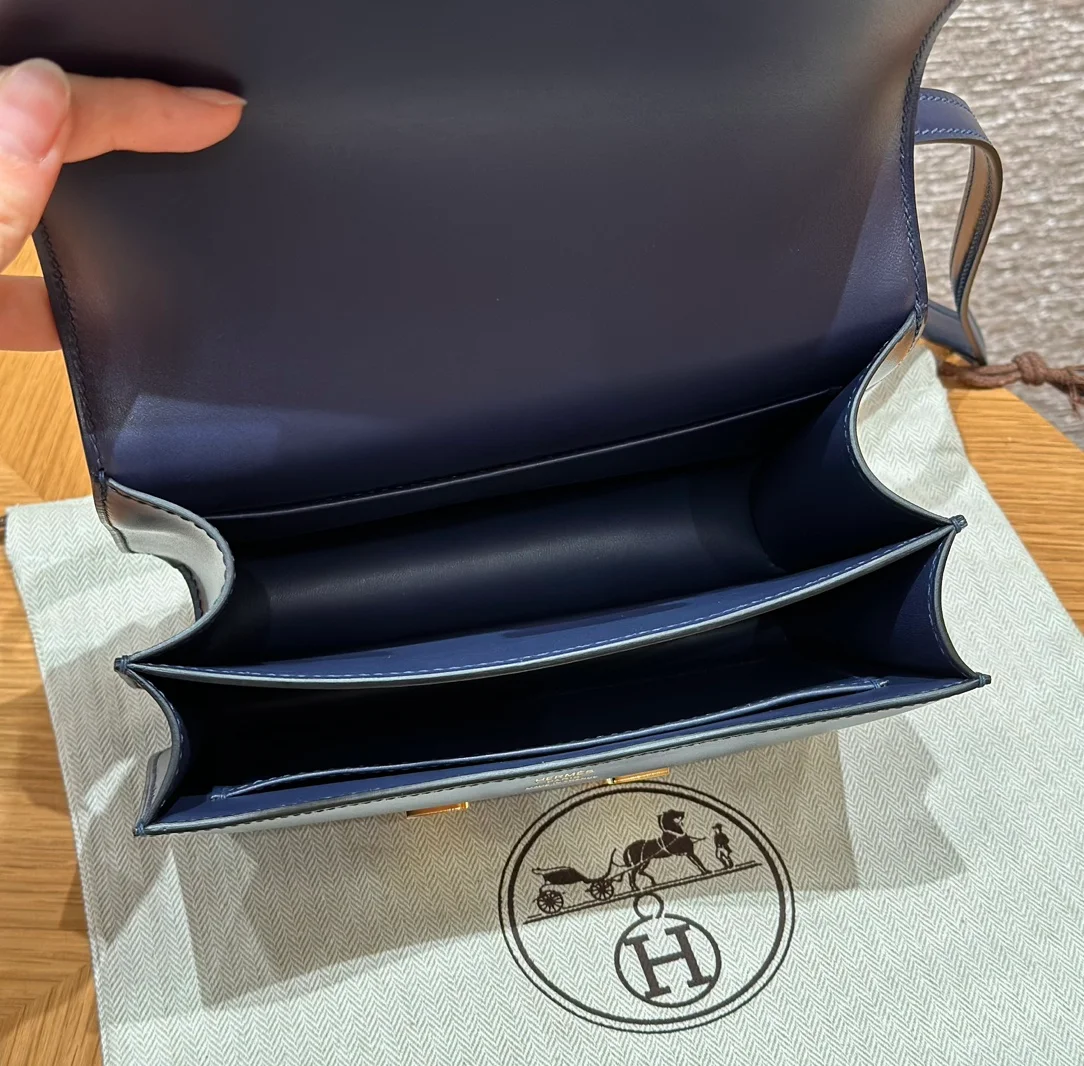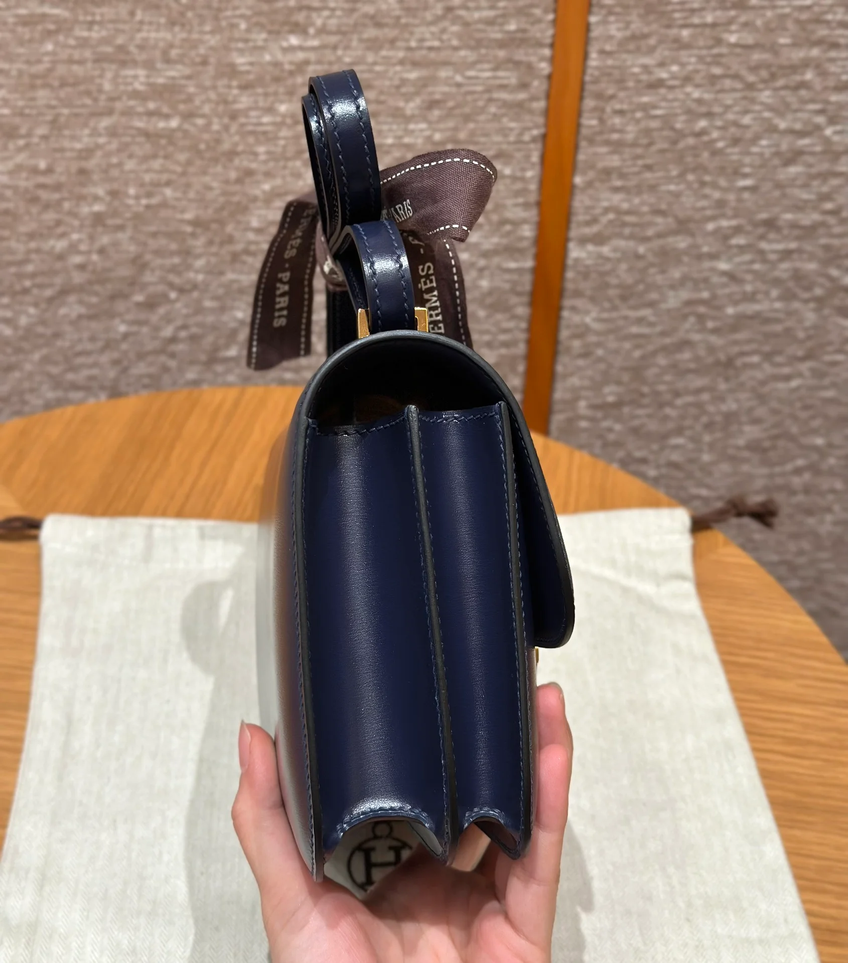 Hermes - 19cm, sapphire blue, French imported genuine leather, gold hardware.