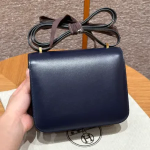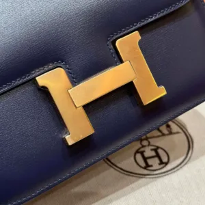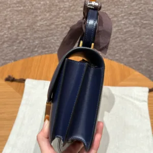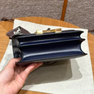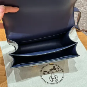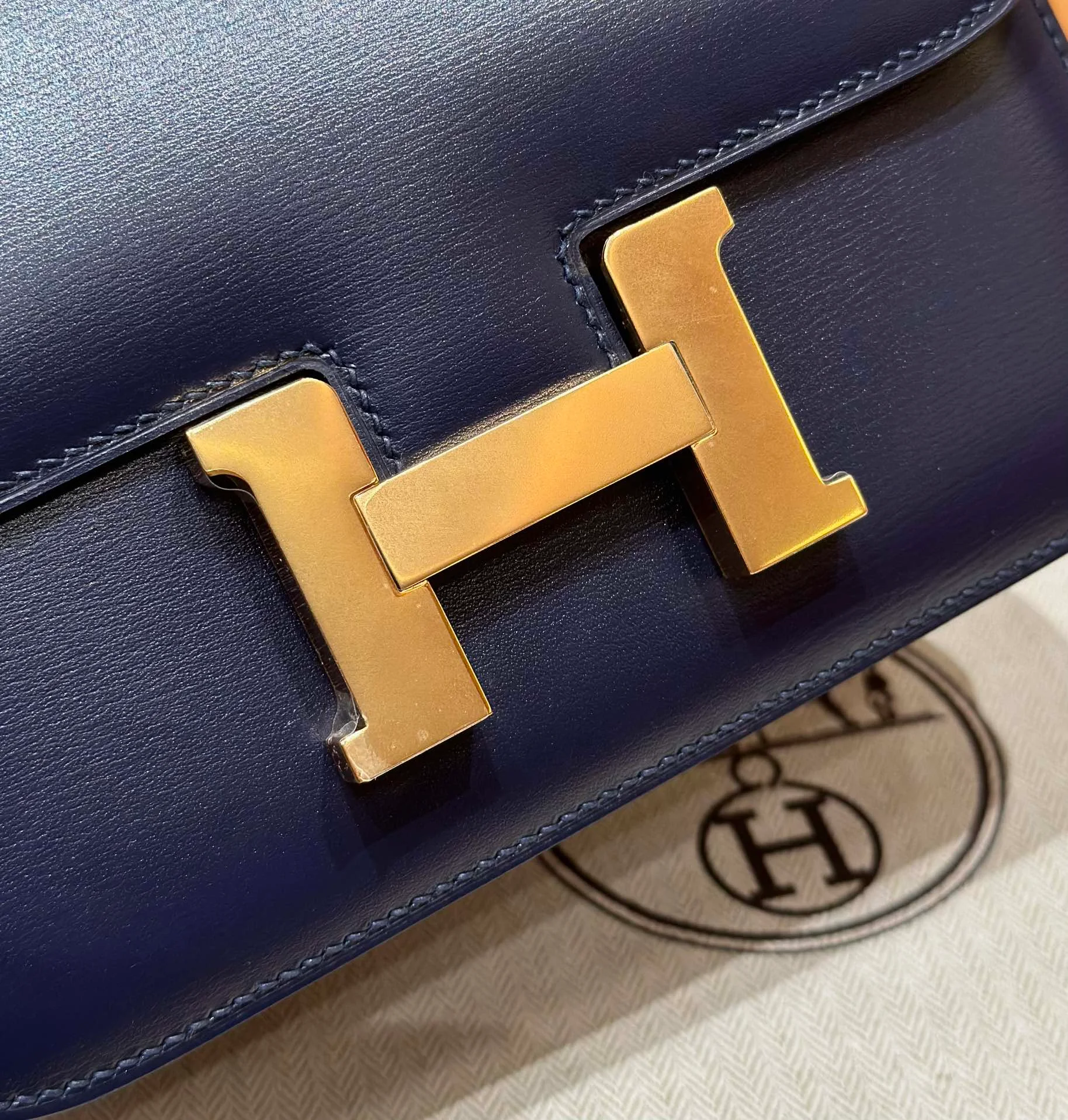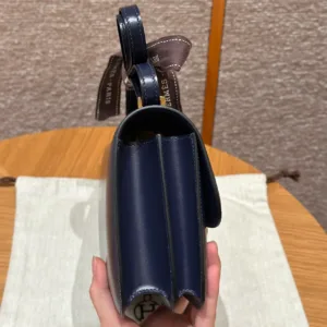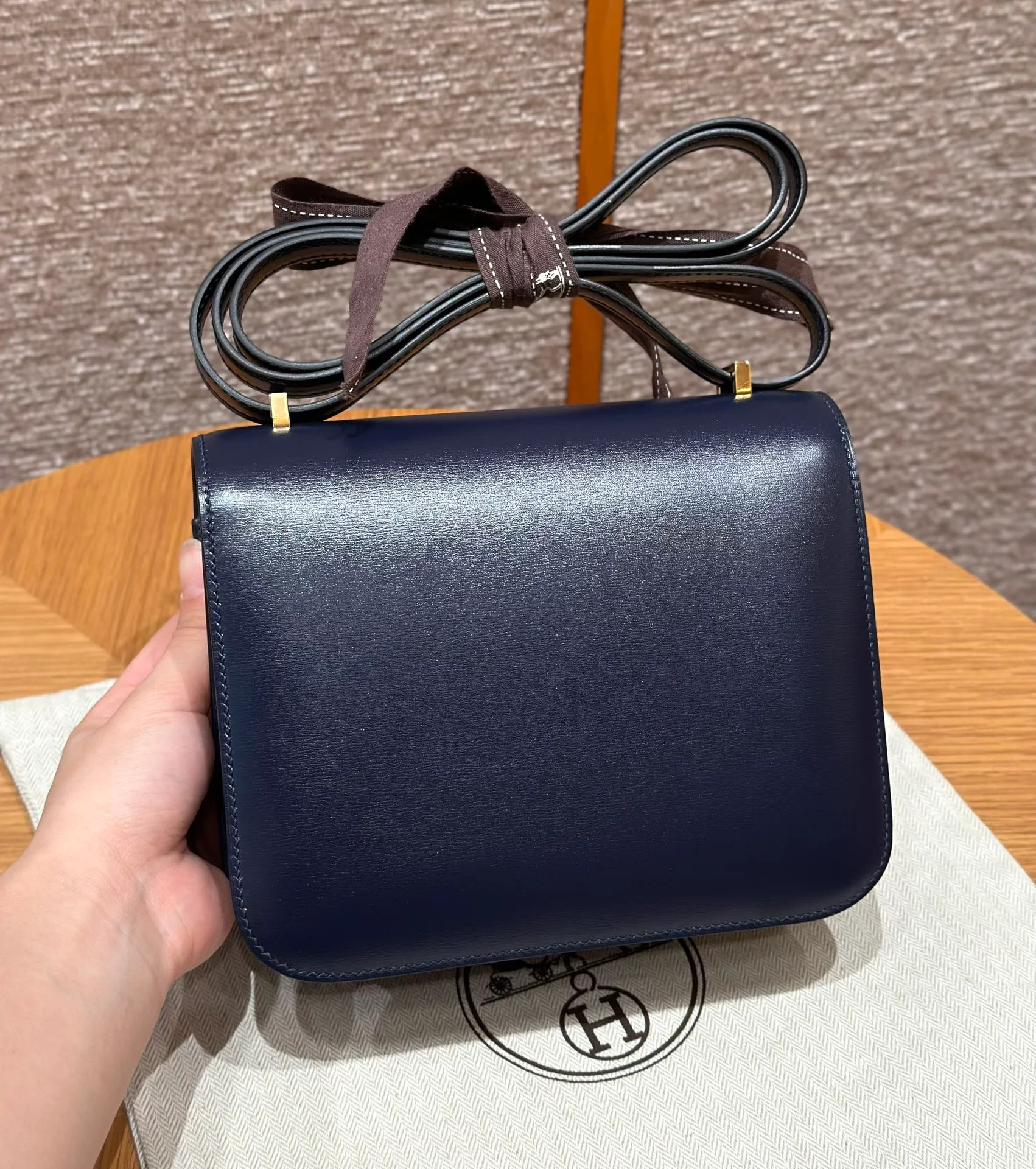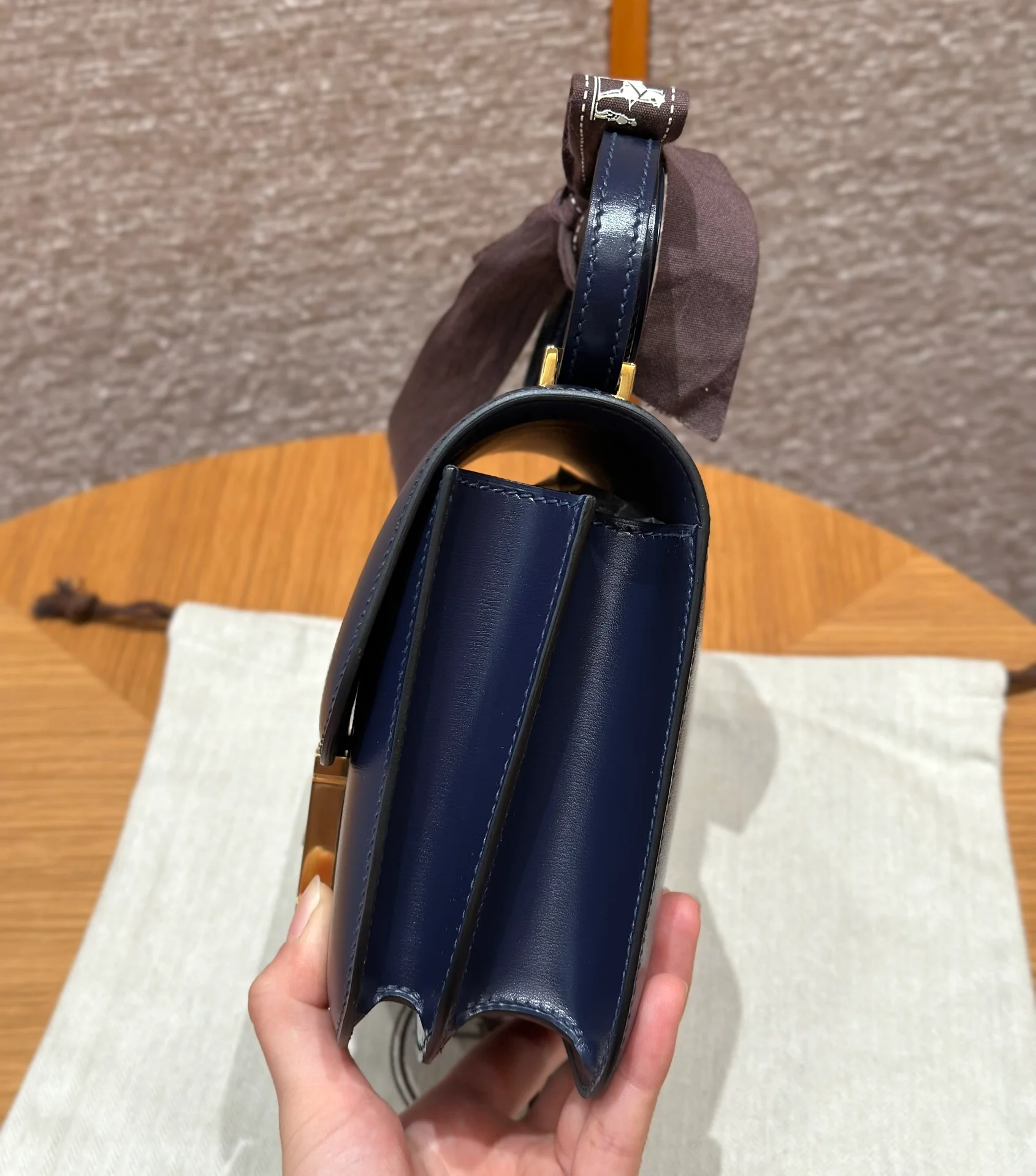 Hermes - 19cm, sapphire blue, French imported genuine leather, gold hardware.