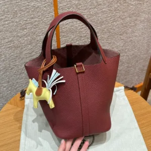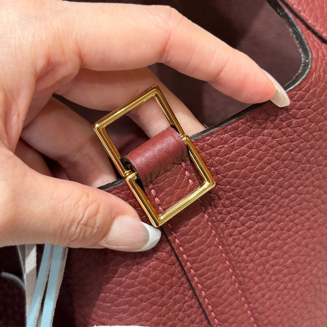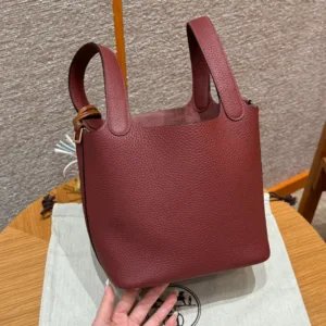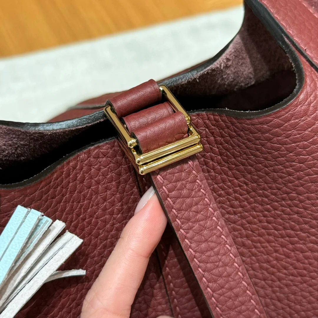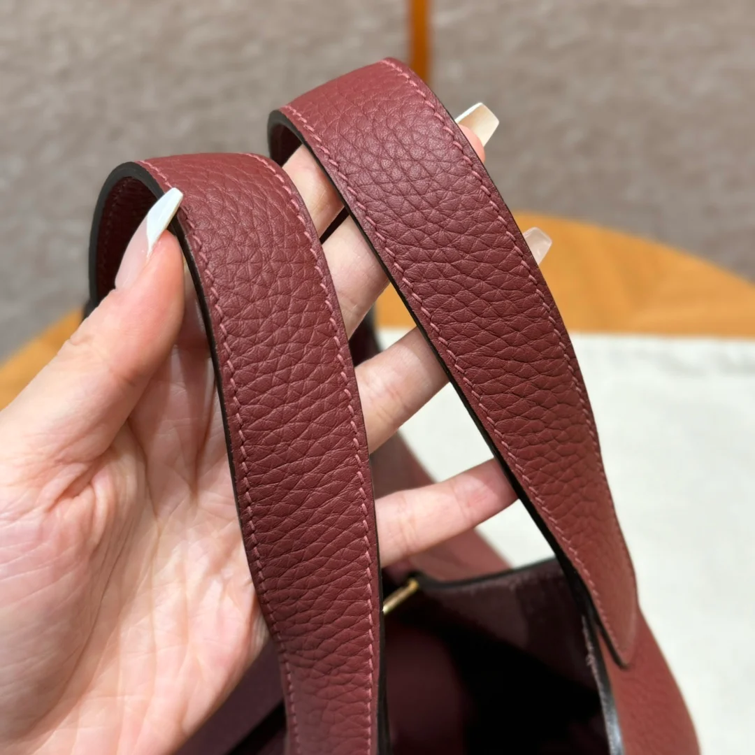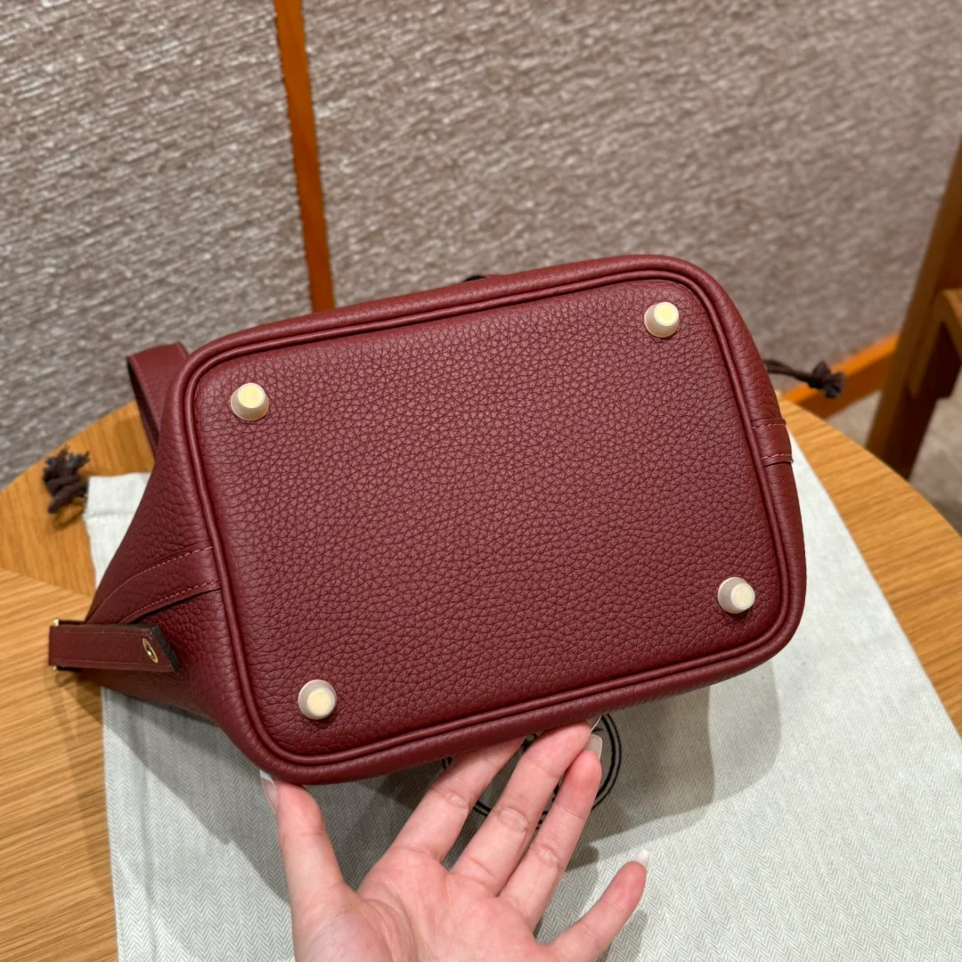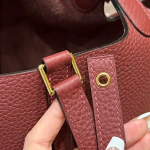 Hermes - 18cm shopping basket, Hermes red, French imported cowhide, gold buckle.