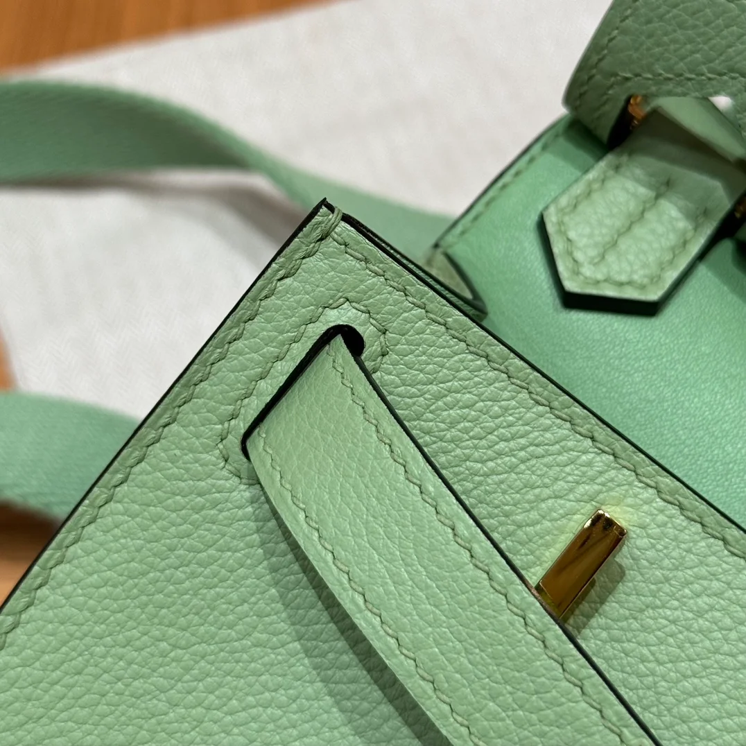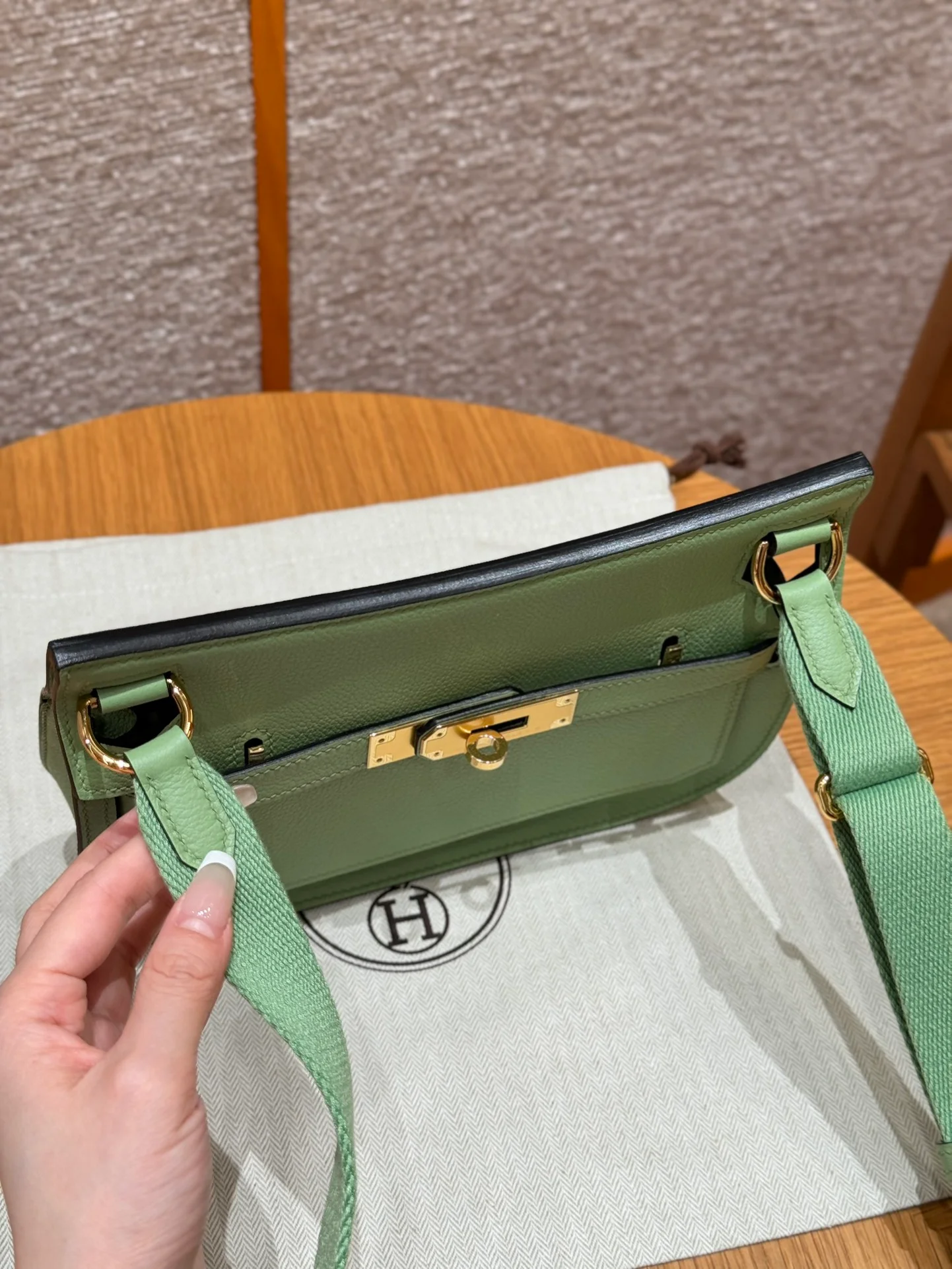 Hermes - Gypsy style, 23cm, avocado green, French imported cowhide, gold hardware.