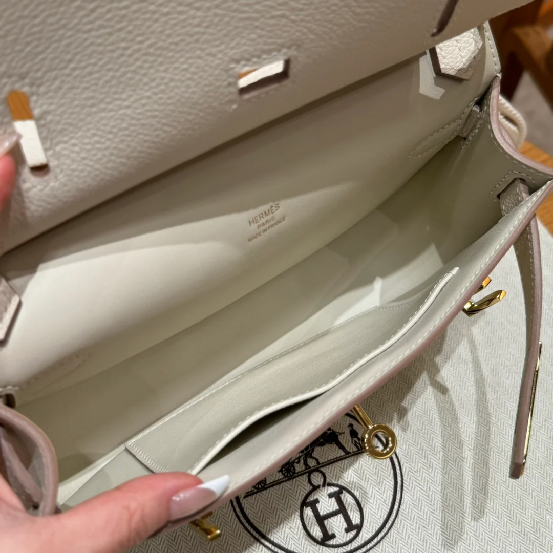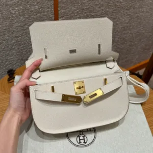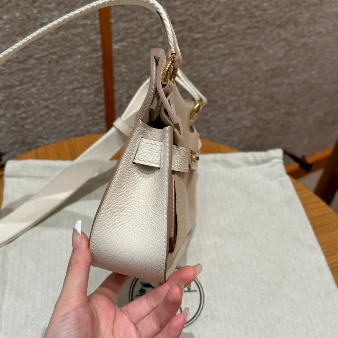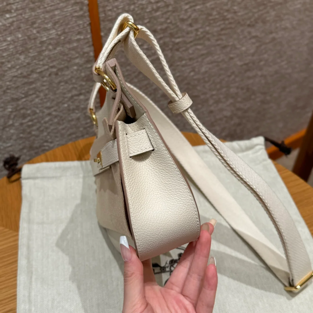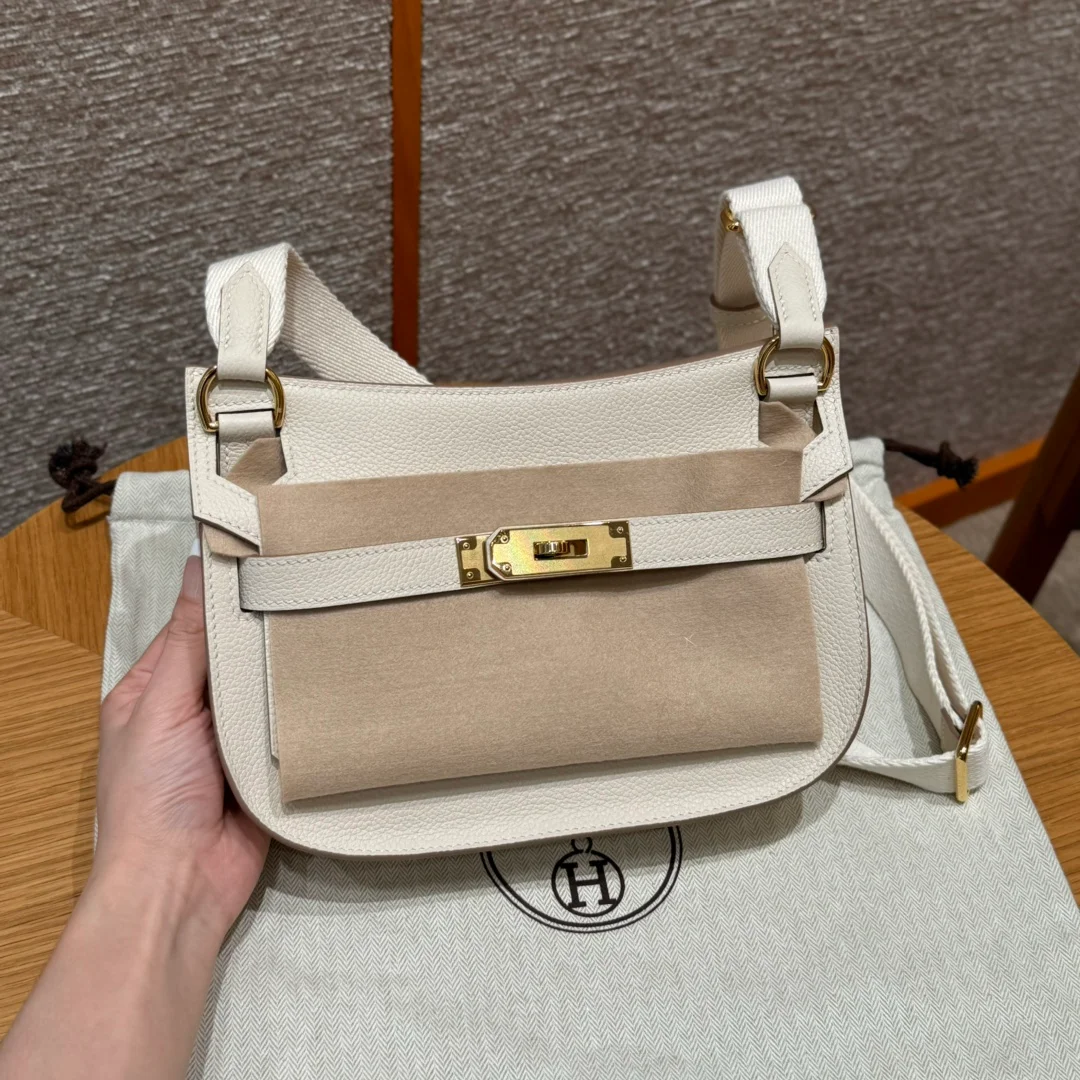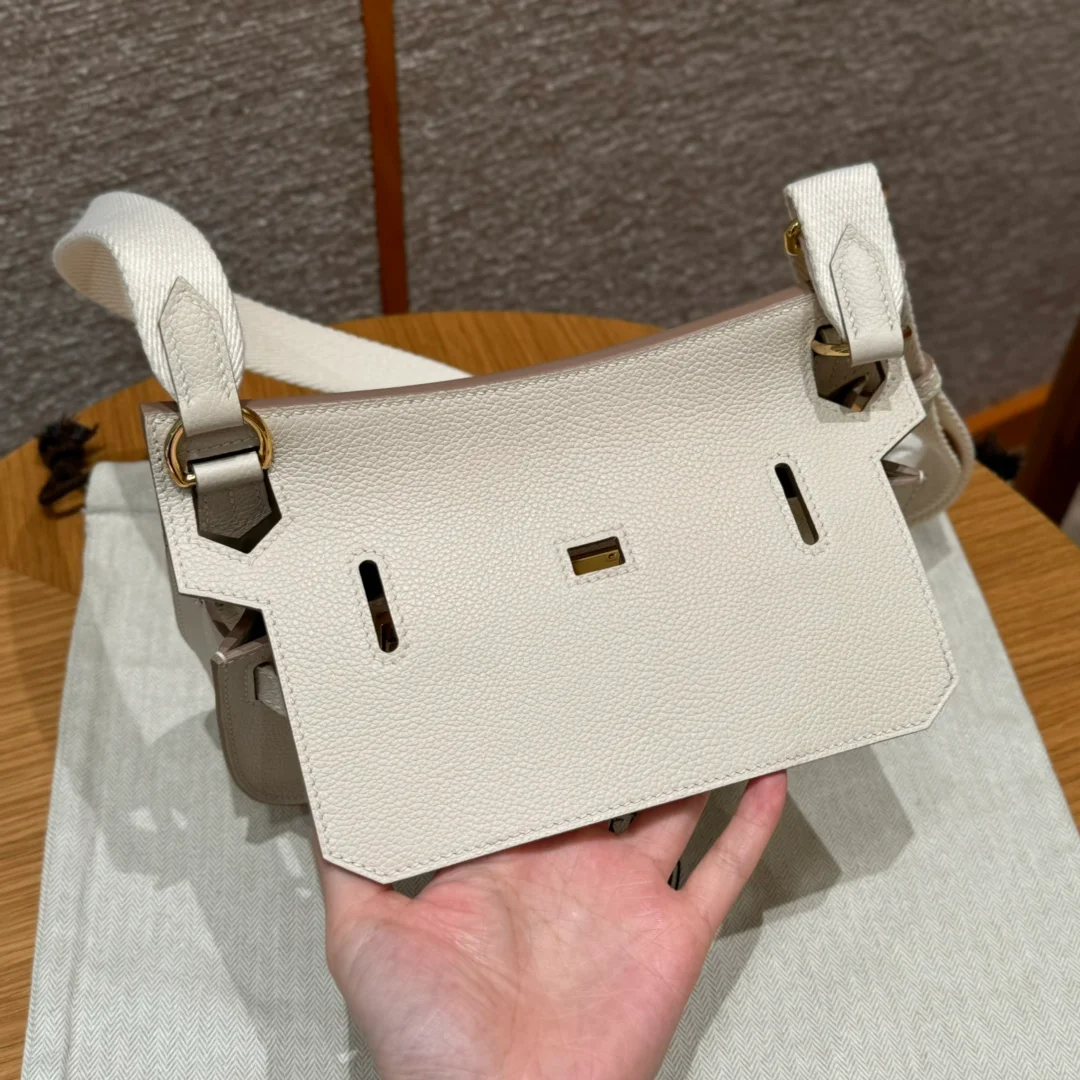 Hermes - Gypsy style, 23cm, milkshake white, French imported cowhide, gold hardware, top-quality hand-stitched with waxed thread, purely handmade private haute couture!!
