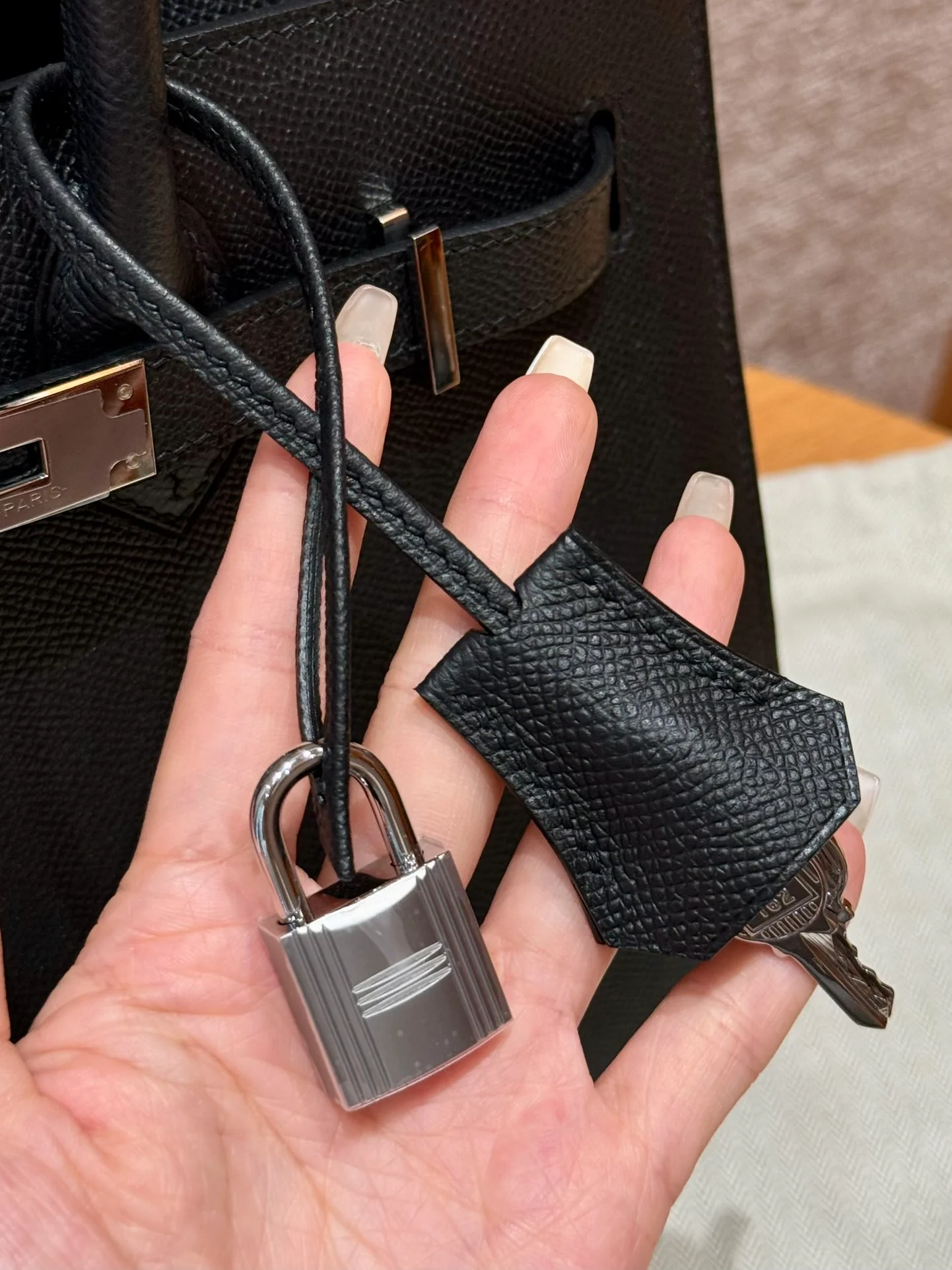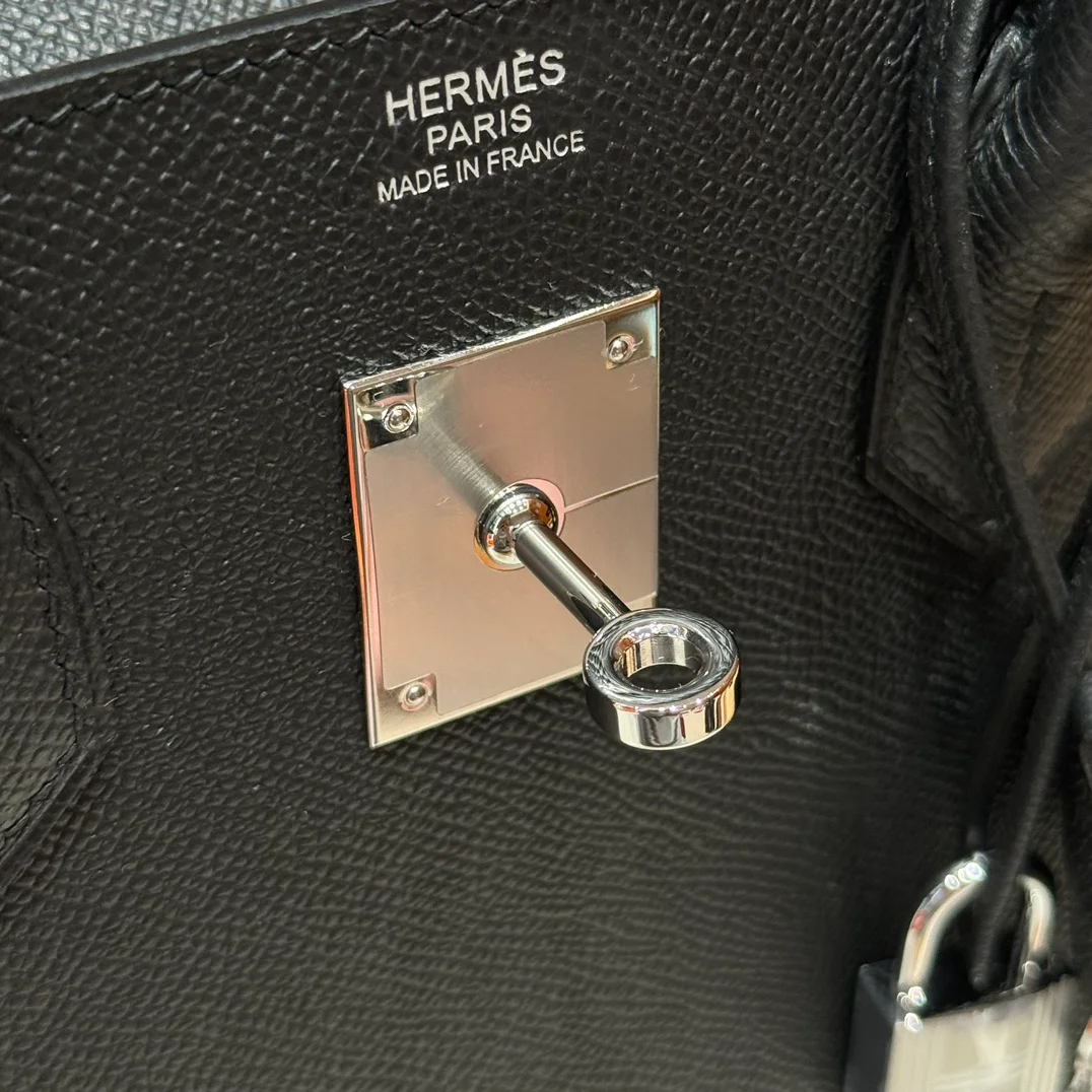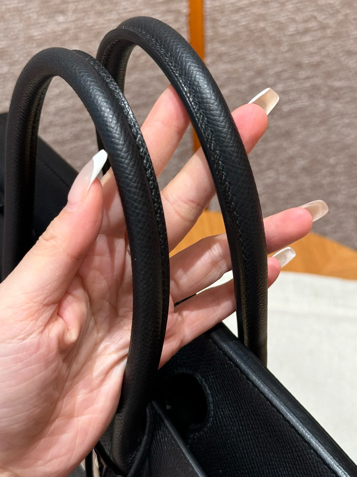 Hermes - Platinum 30cm, black, French imported cowhide with palm print stitching, silver buckle, high-end handmade exclusive customization‼ Purely handmade nails, hand-carved hardware, 18k gold plated stainless steel hardware.