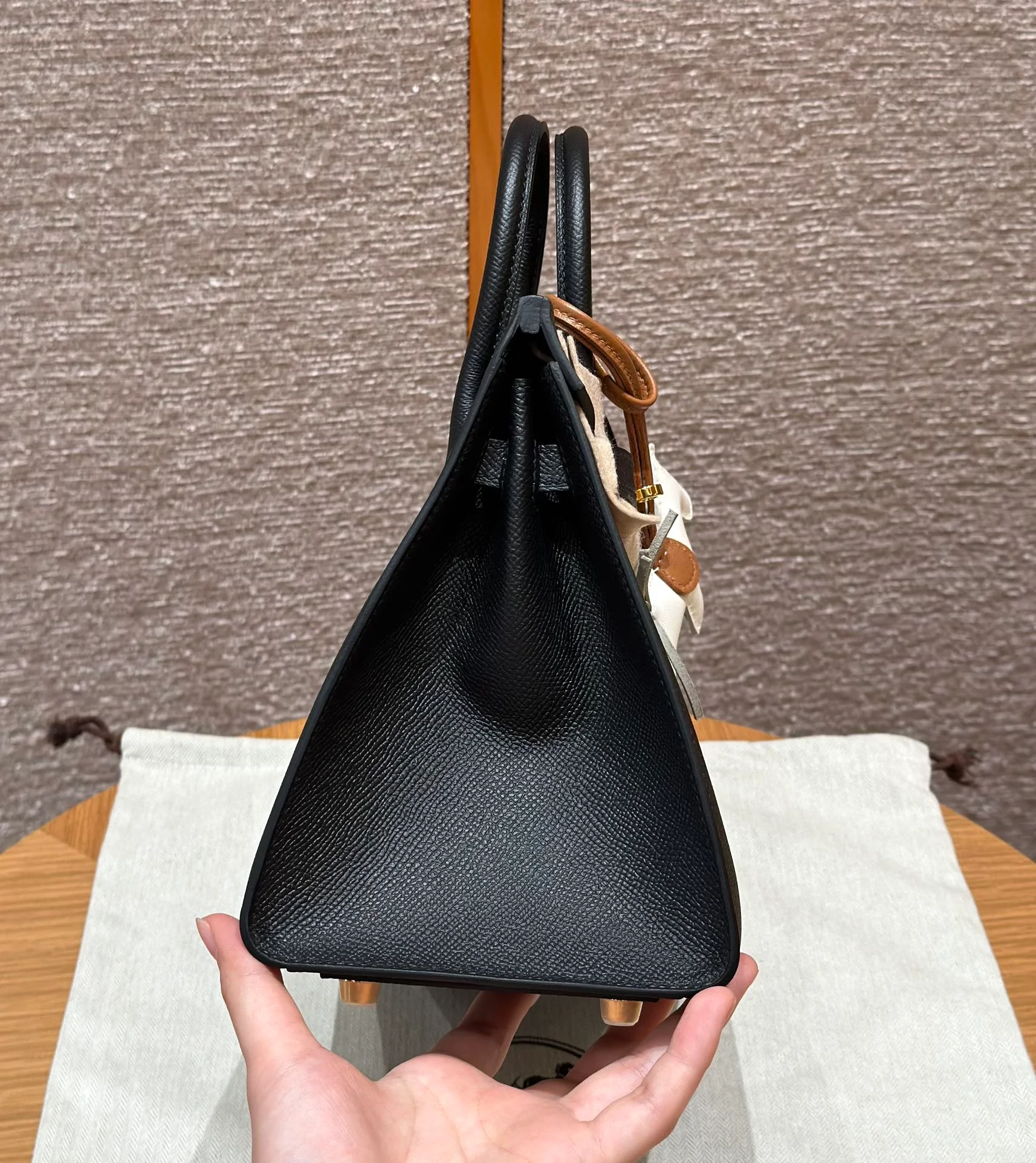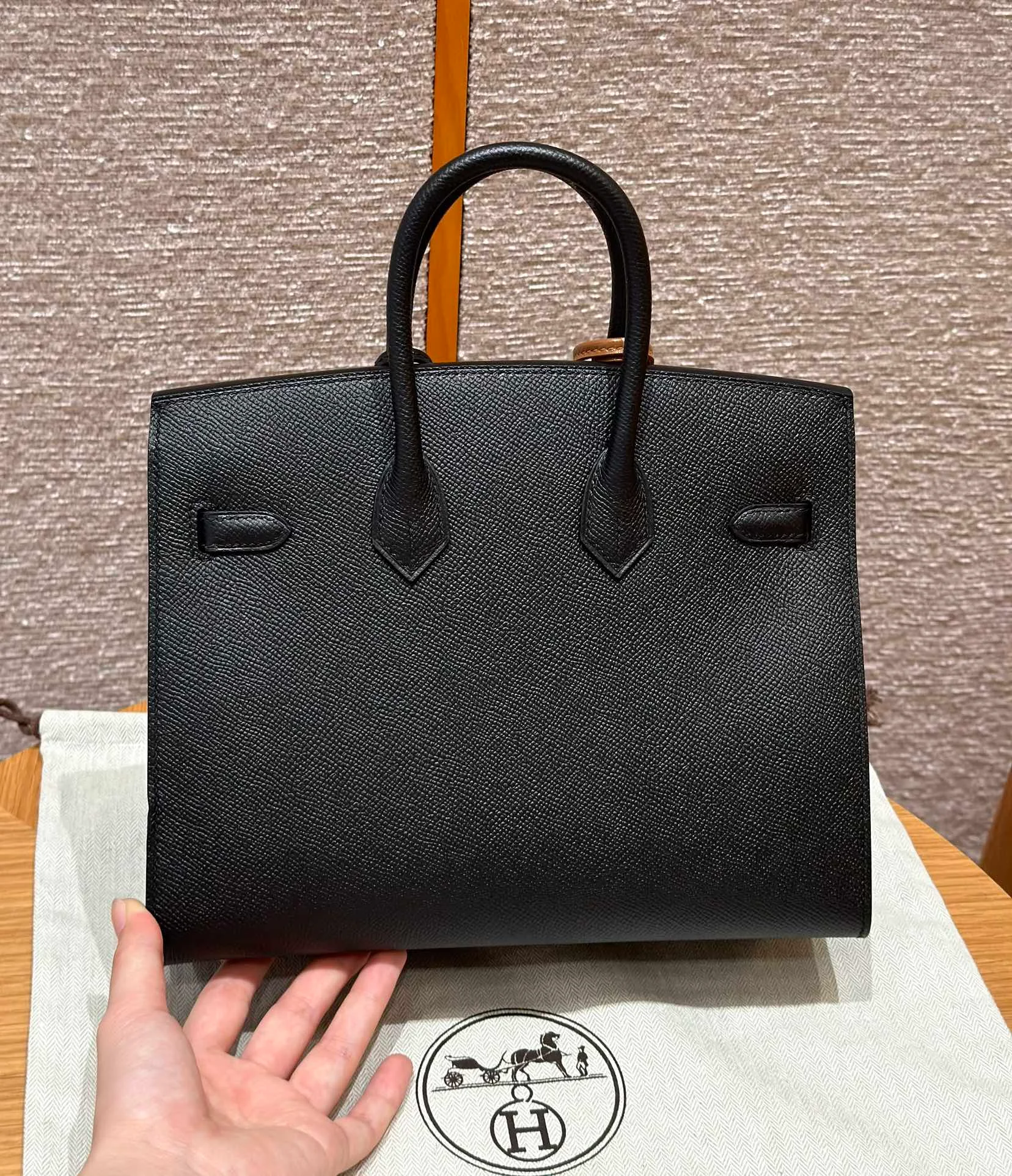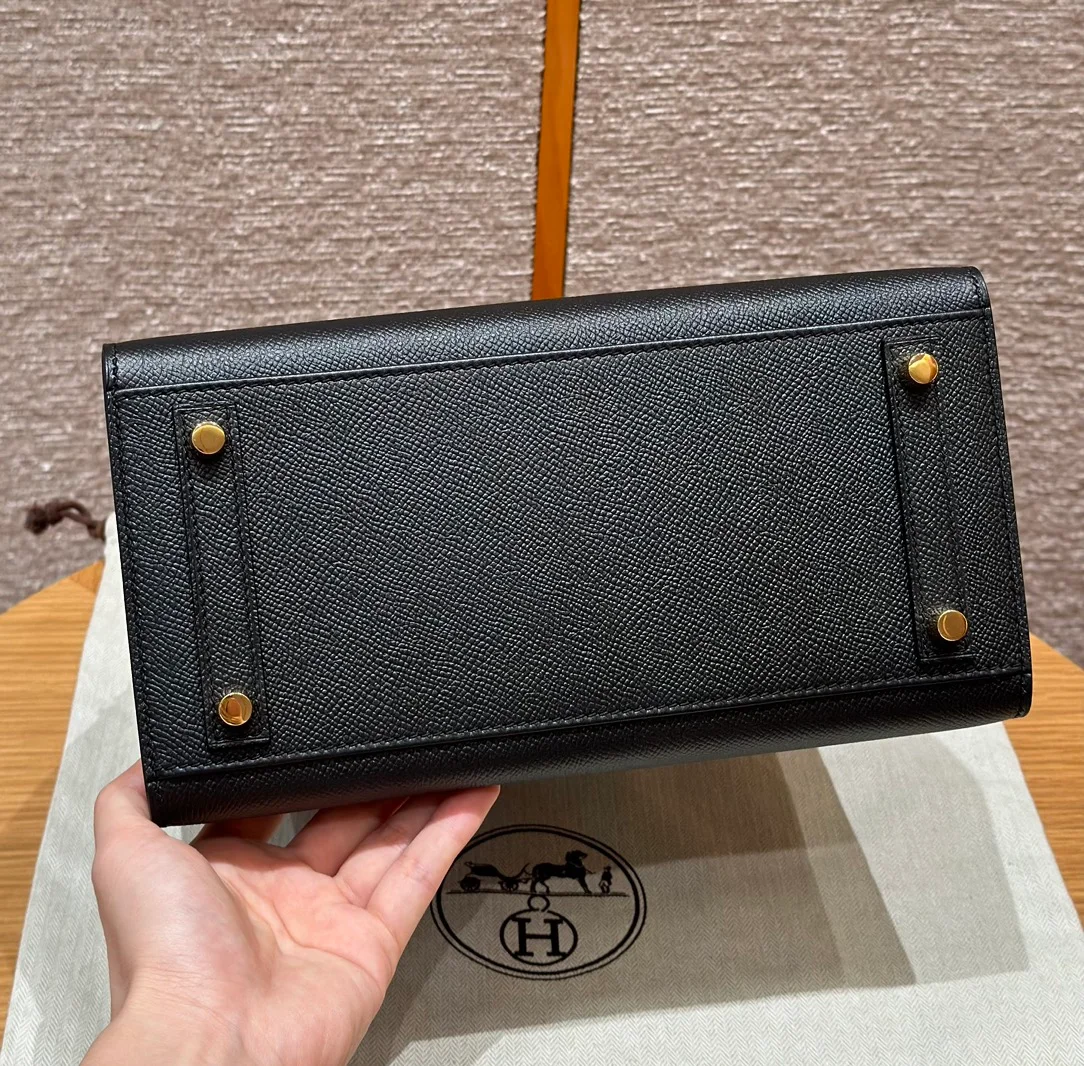 Hermes - Platinum 25cm, black, French imported cowhide leather with palm print stitching, gold buckle, high-end, fully handcrafted, exclusive customization‼