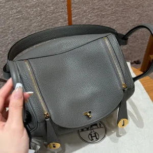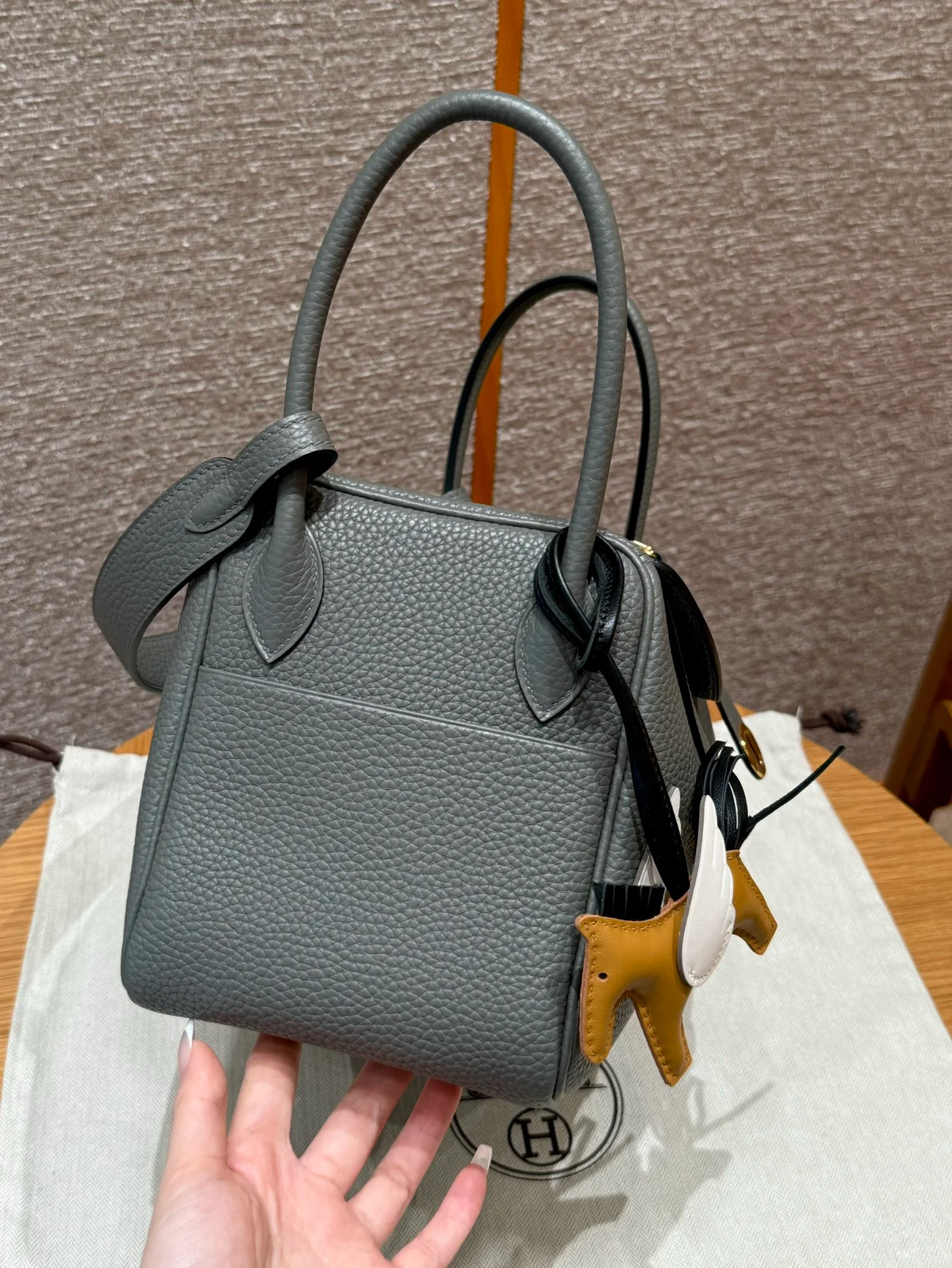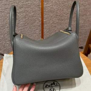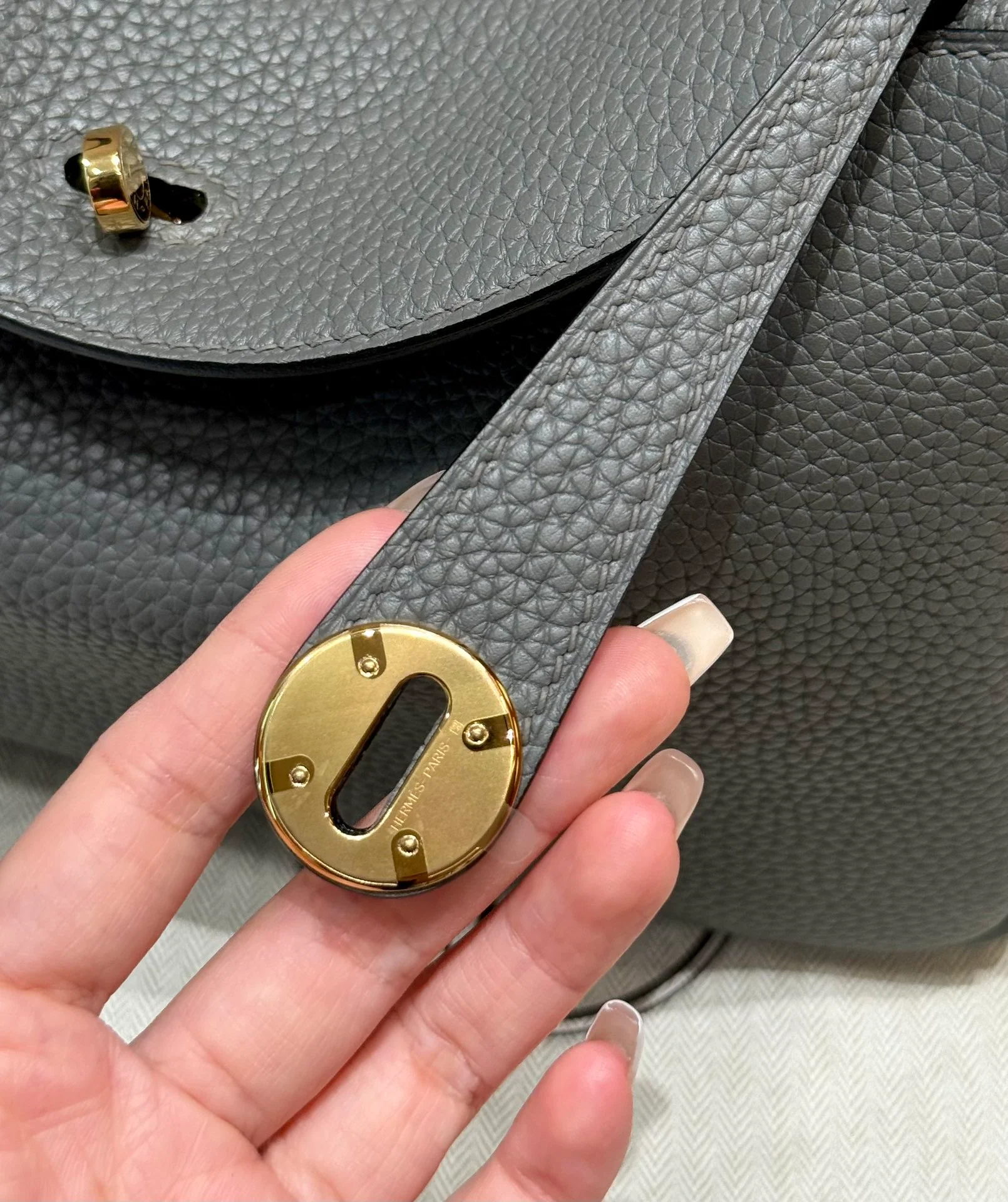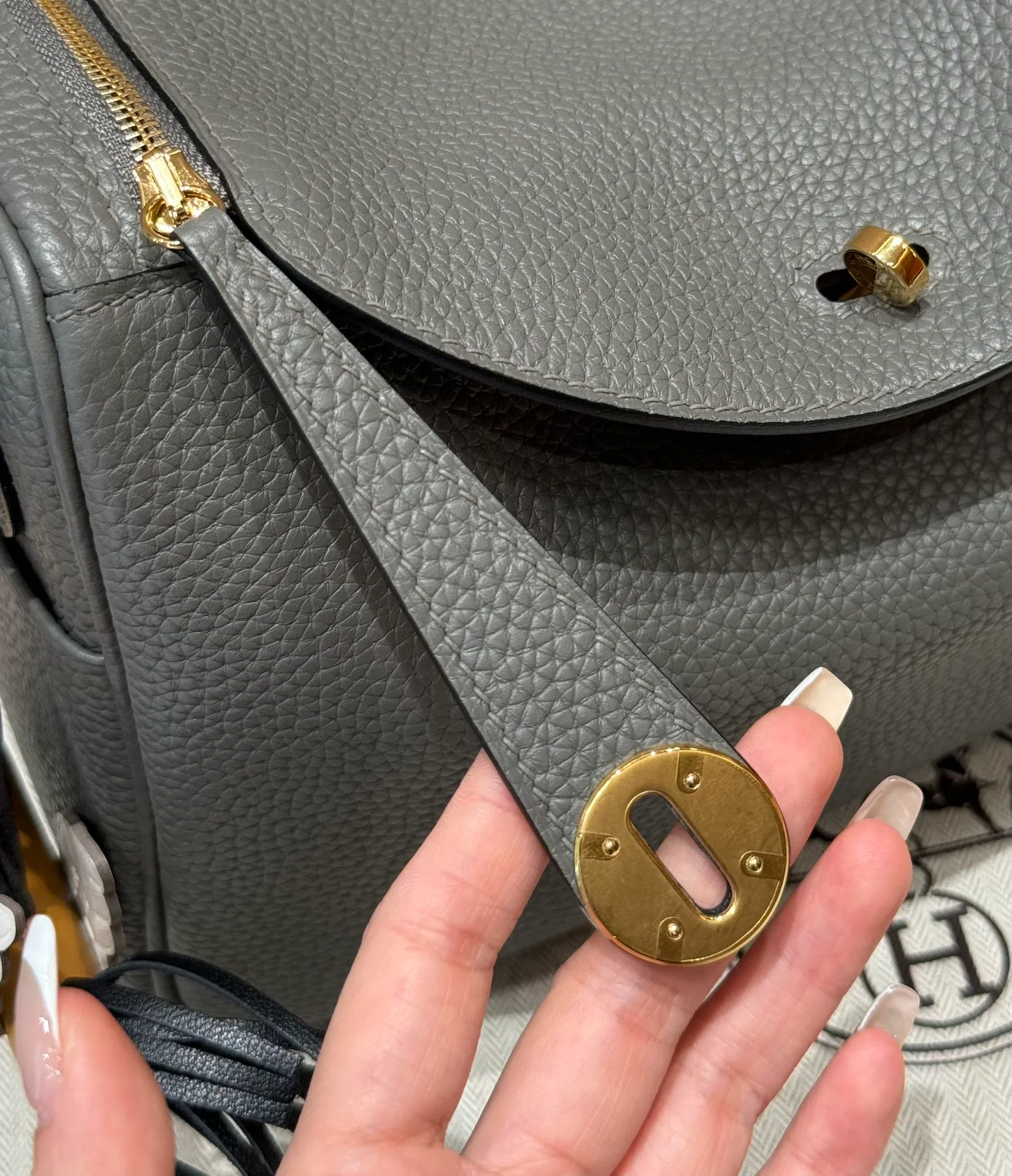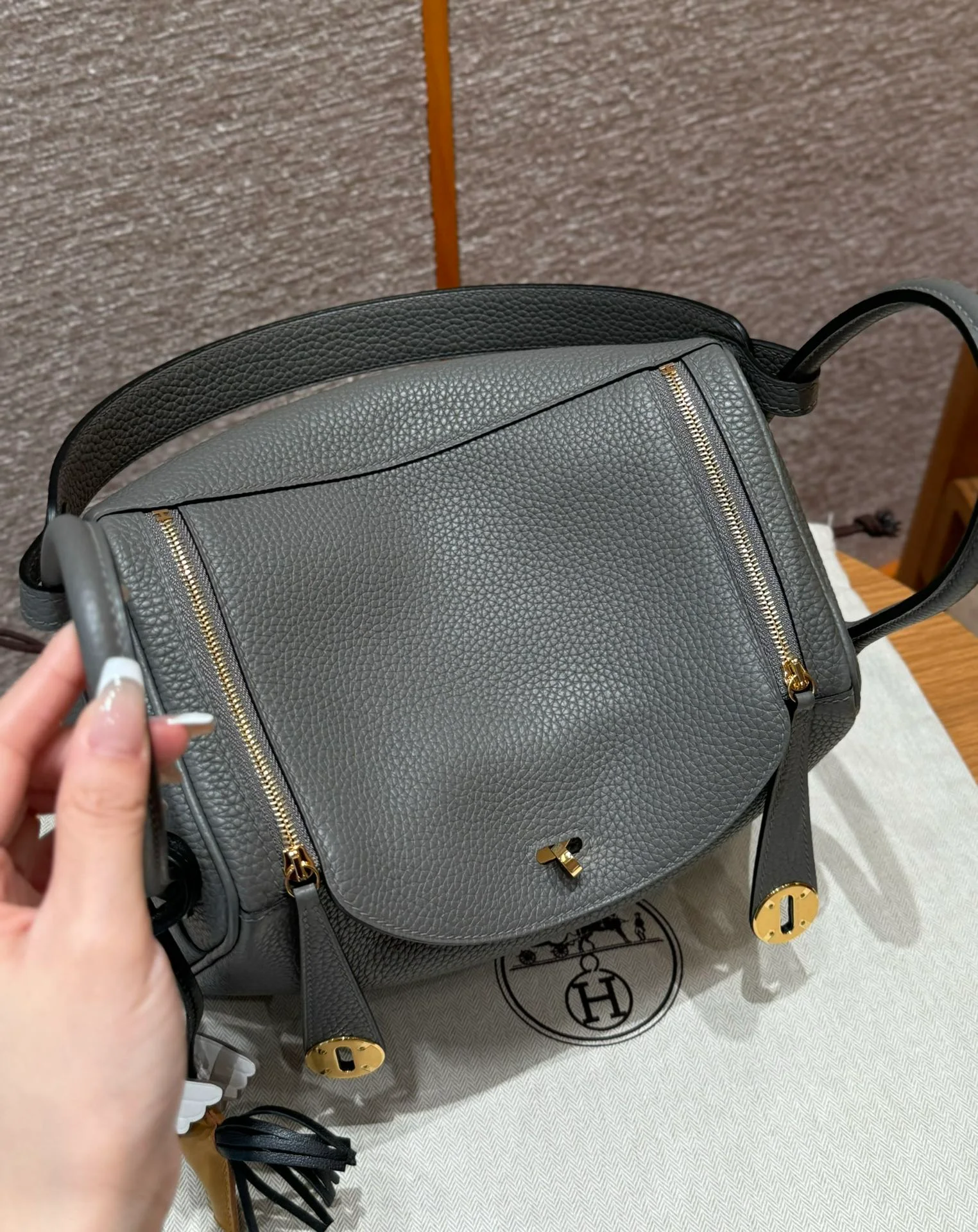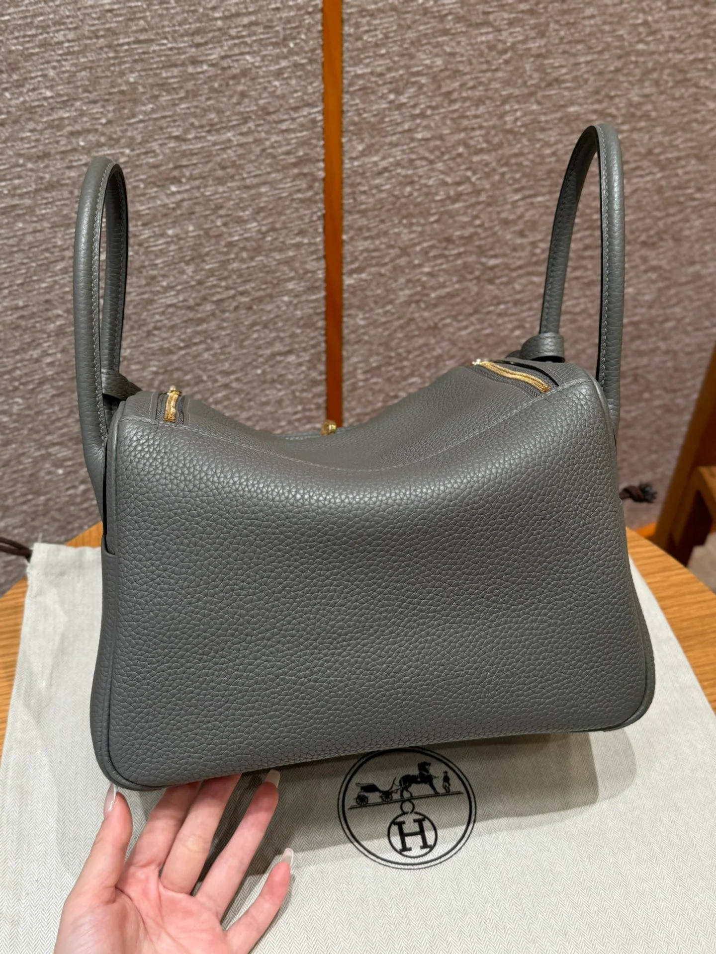 Hermes - Size: 26*18*12cm. Lindy 26cm, Cloud Gray, French imported cowhide, gold hardware, high-end handmade exclusive customization‼