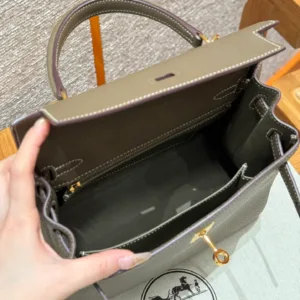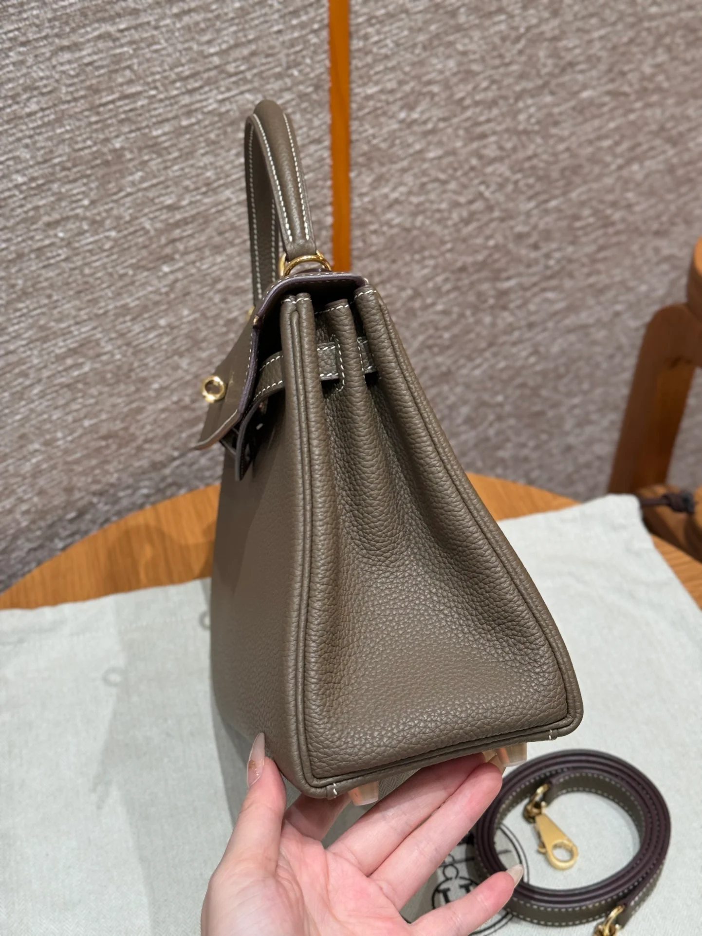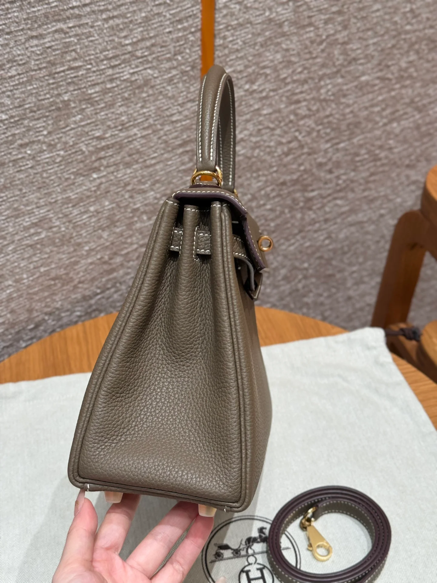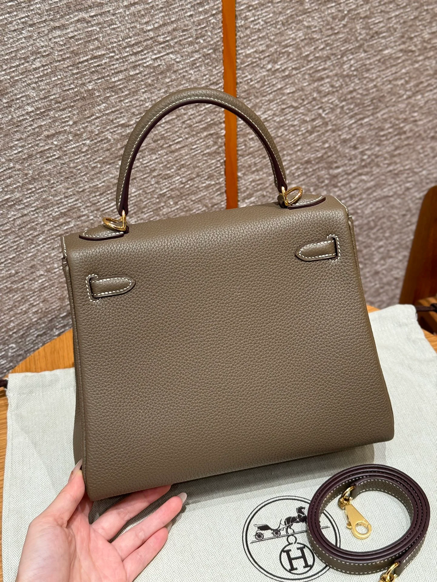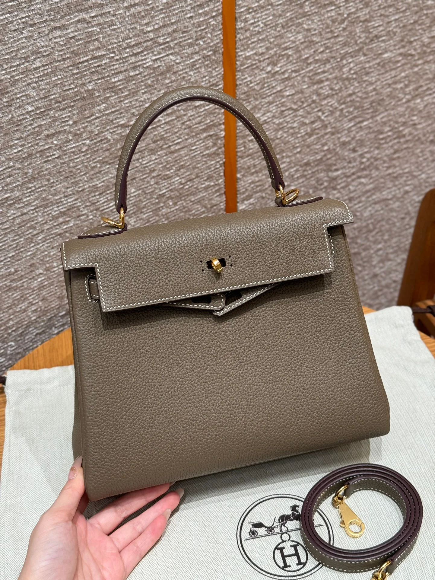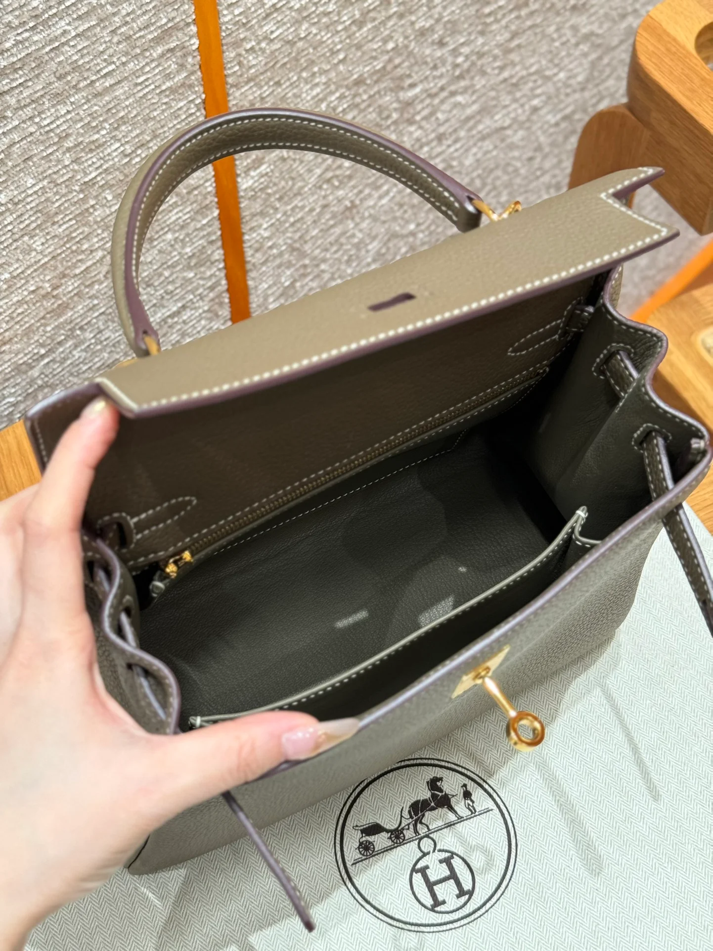 Hermes - Size: 25*17*7cm (Kelly 25cm), Elephant Grey 🐘, French imported cowhide leather, inner stitching, gold buckle, high-end, fully handmade, exclusive customization‼