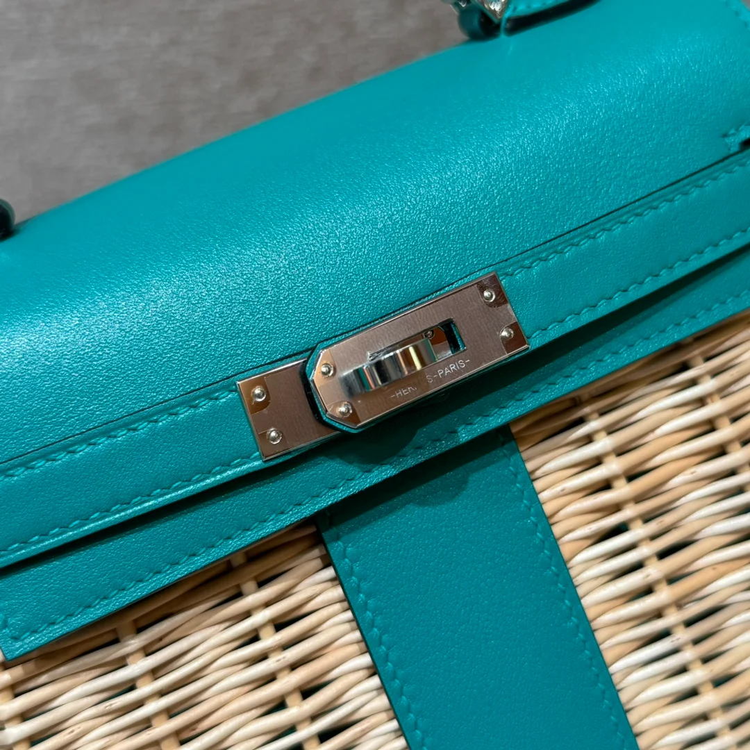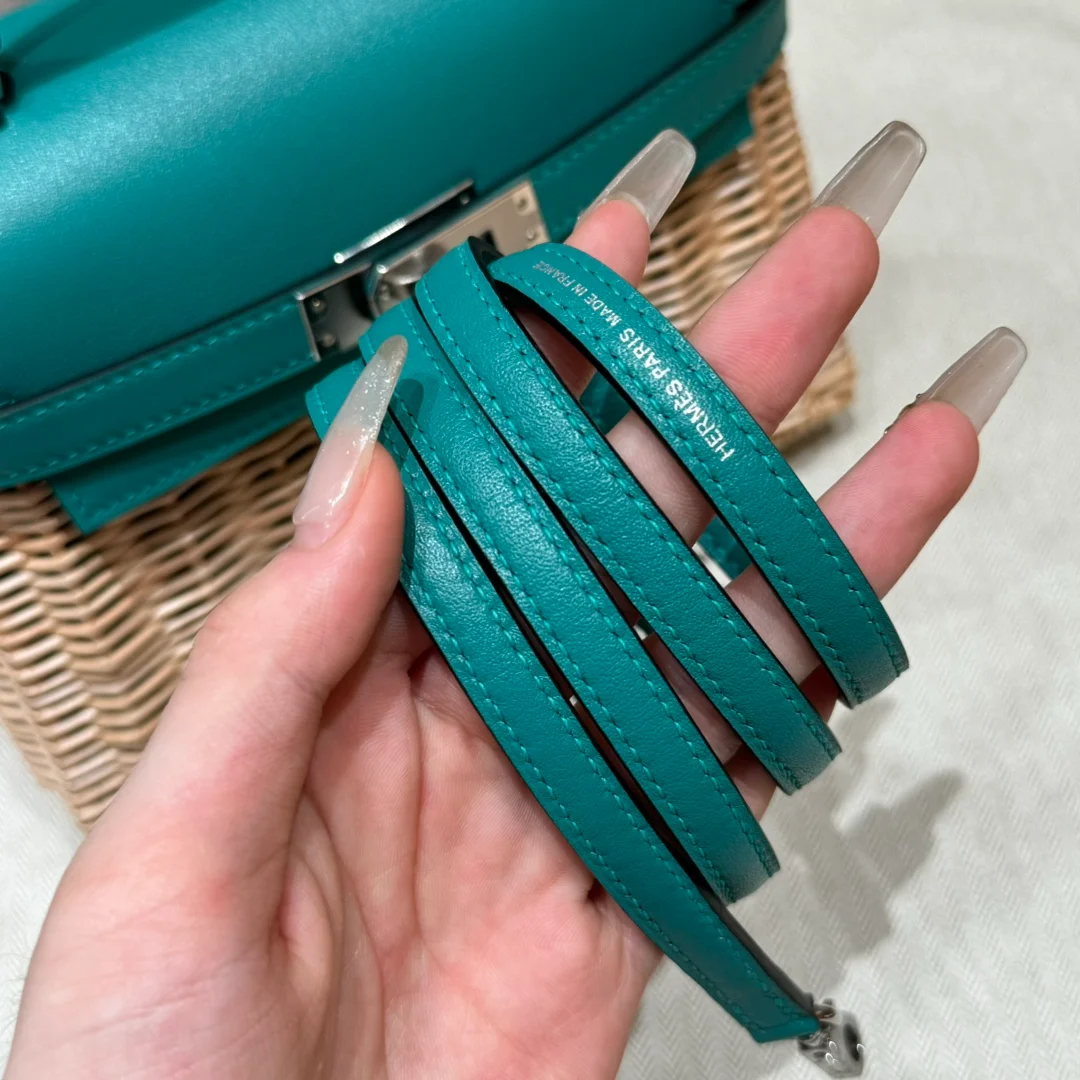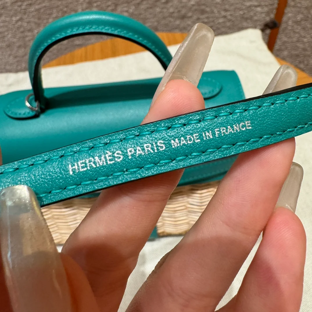 Hermes - Style: Kelly Picnic; Size: 20*18*12cm; Kelly Picnic Bag, Verona Green, French imported original plain cowhide leather, French imported bamboo woven frame, silver buckle, high-end fully handmade exclusive customization‼