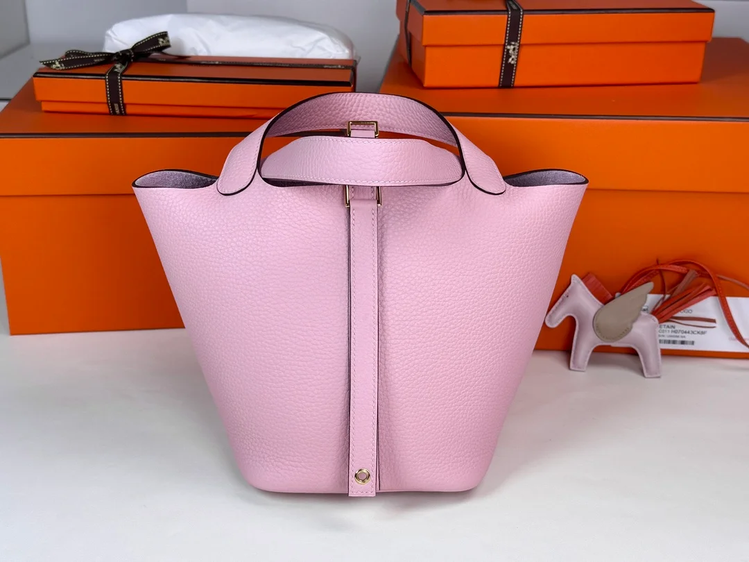 Hermes - Vegetable Basket 18 3q Pink TC Gold Buckle