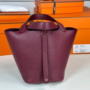 Hermes - Vegetable Basket 18 Saddle Red TC Gold Buckle