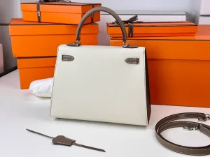 Hermes - Kelly25 Milkshake White and Elephant Gray, EP with Silver Buckle