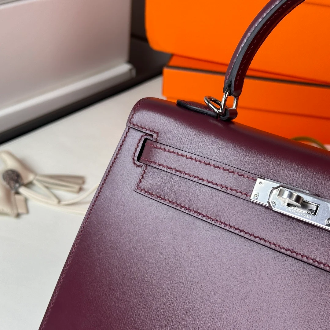 Hermes - Kelly25 Hermes Red Box with Silver Buckle