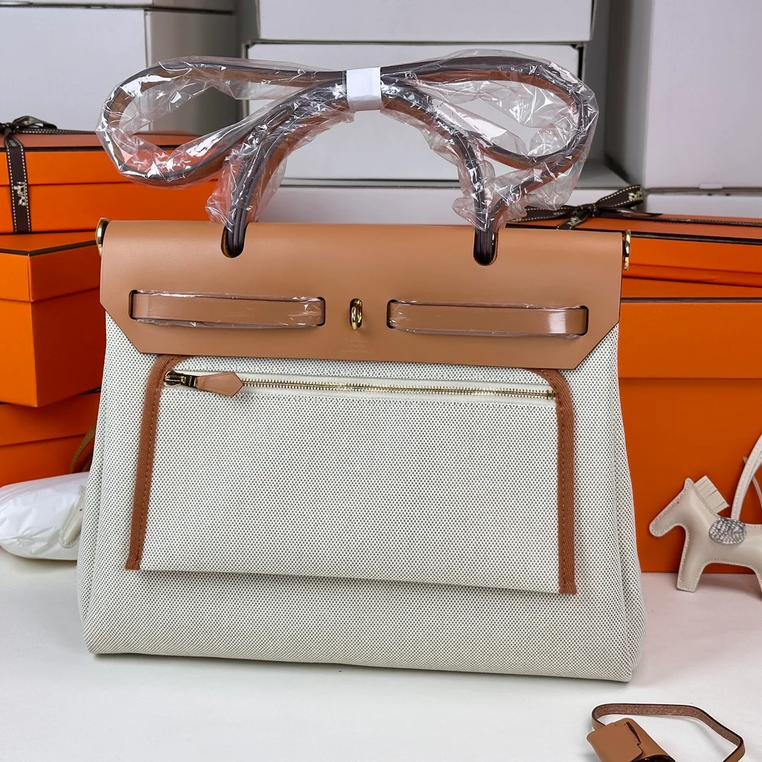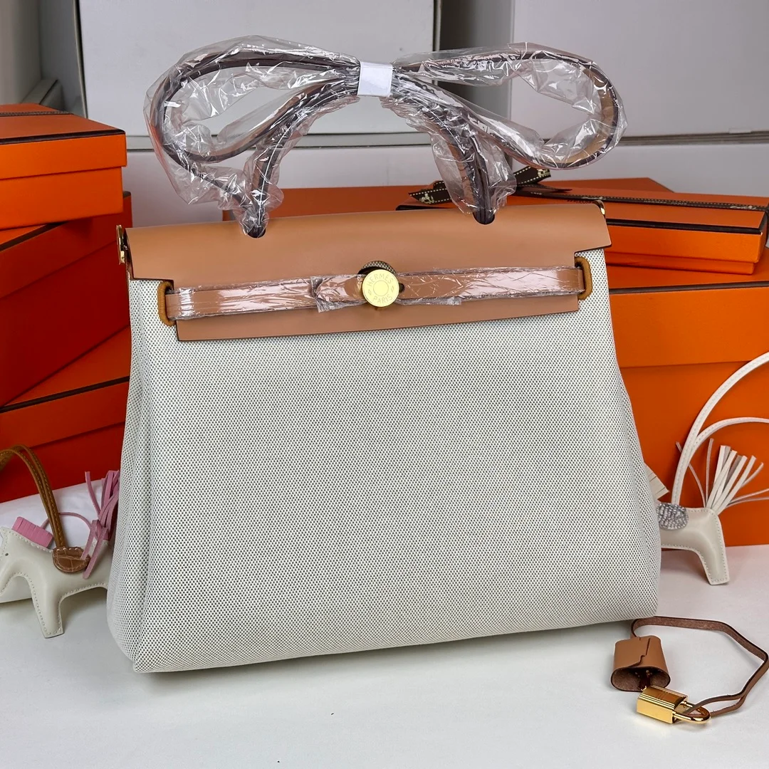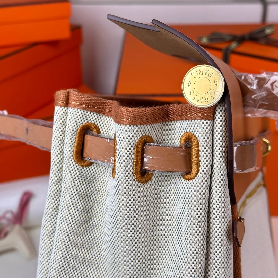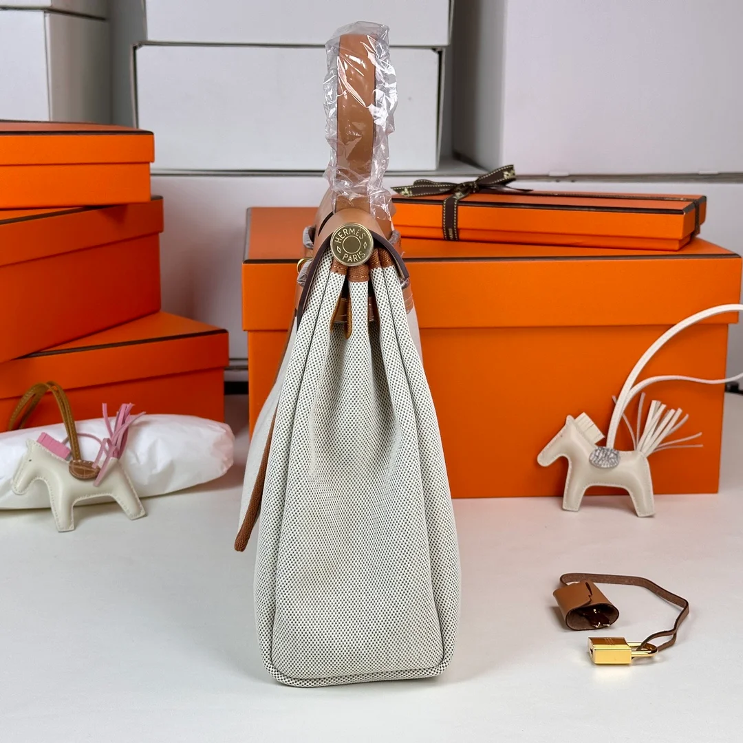 Hermes - Herbag 31 Gold Brown Patchwork with Gold Buttons