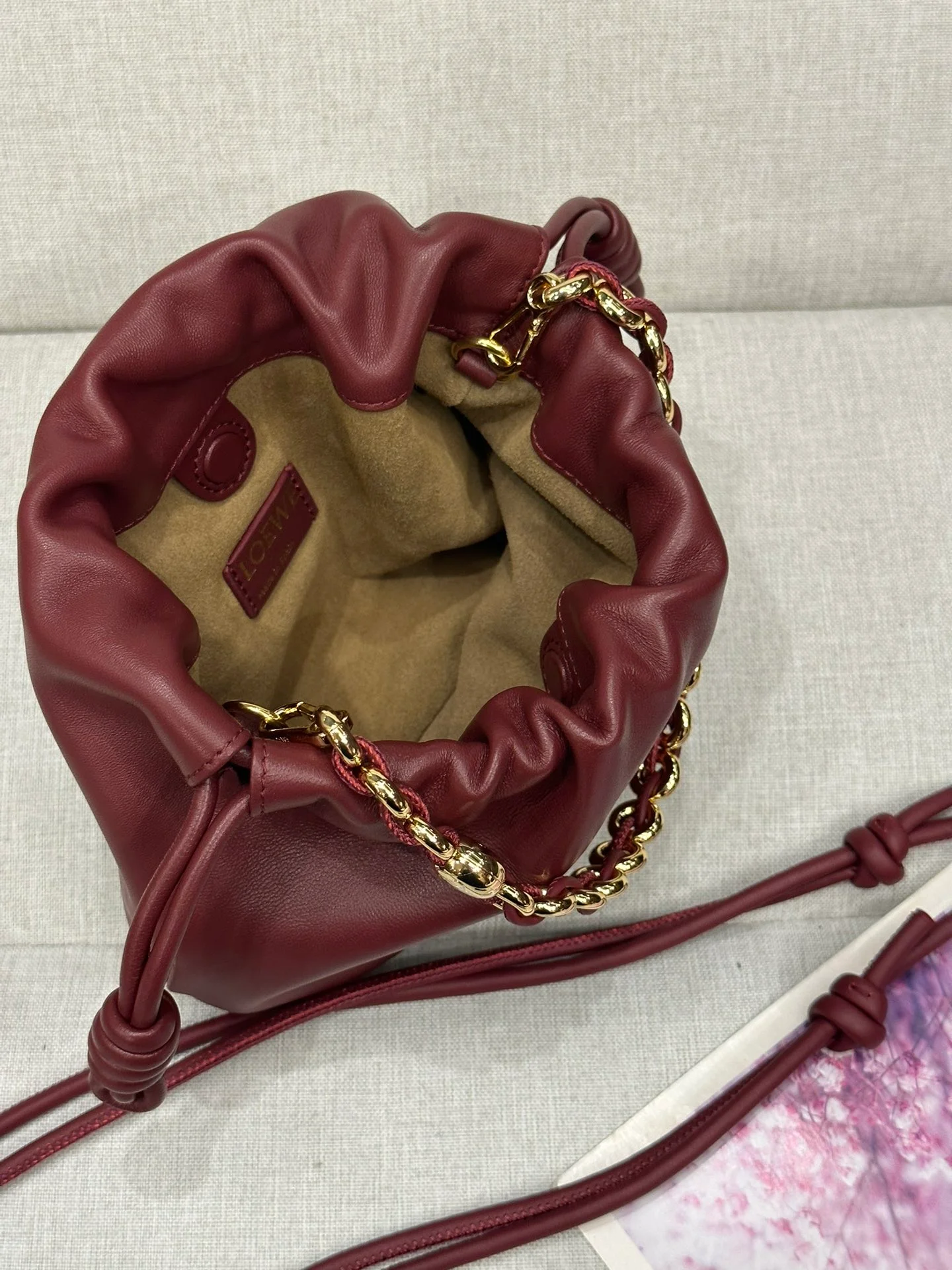 Loewe - Brand new, original leather, model 1773 23-17-5.5 (with matching metal chain and extended leather shoulder strap) Mini Nappa lambskin Flamenco clutch.