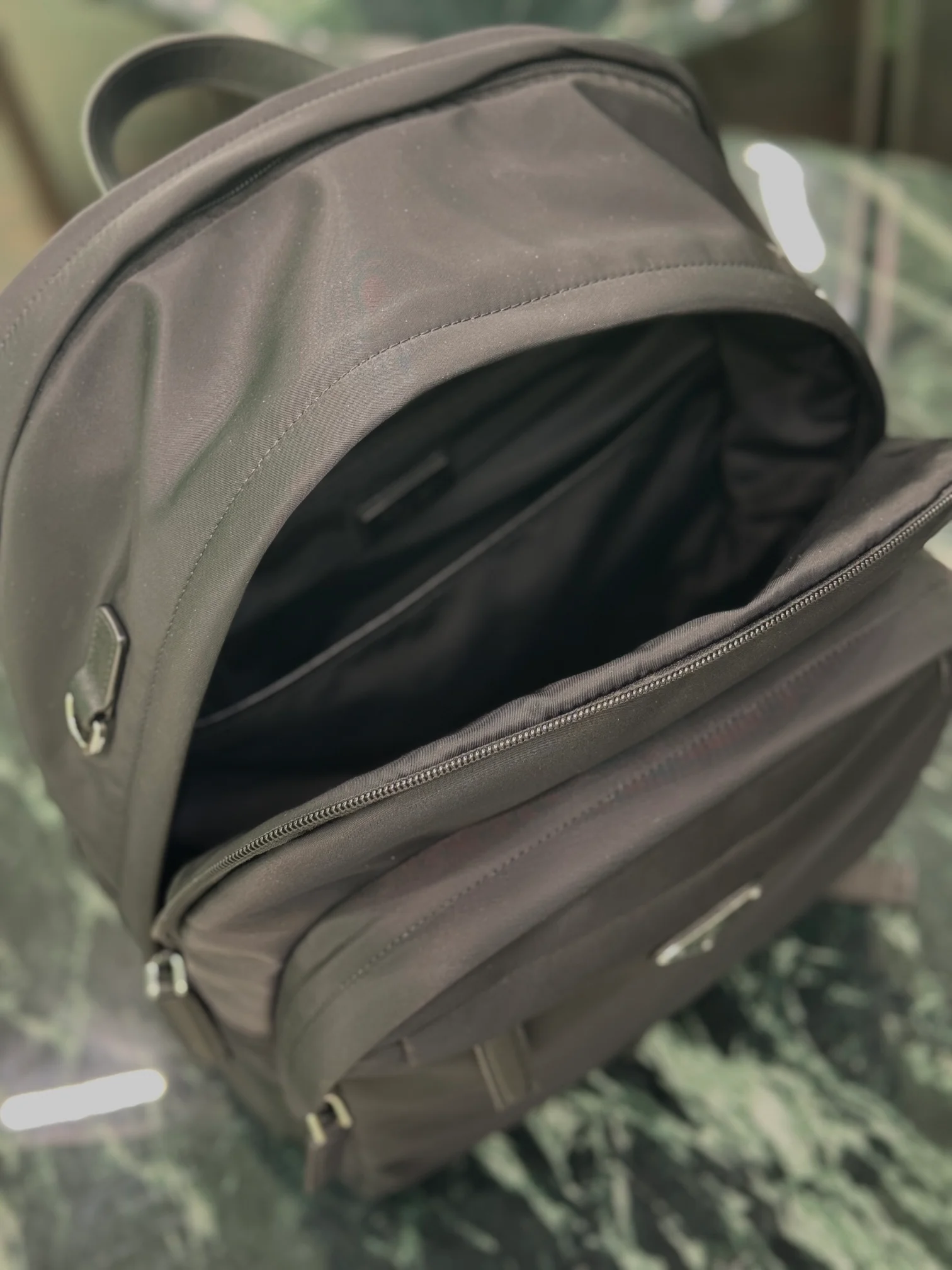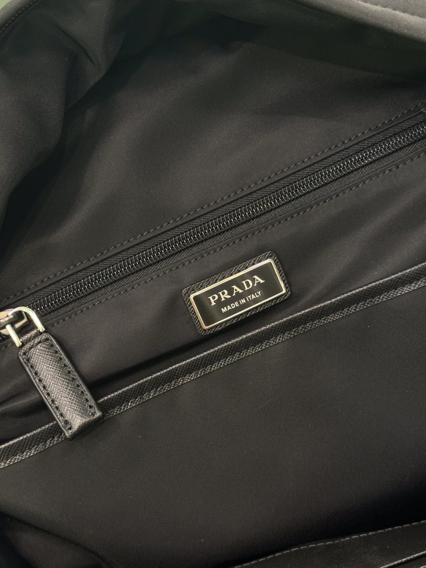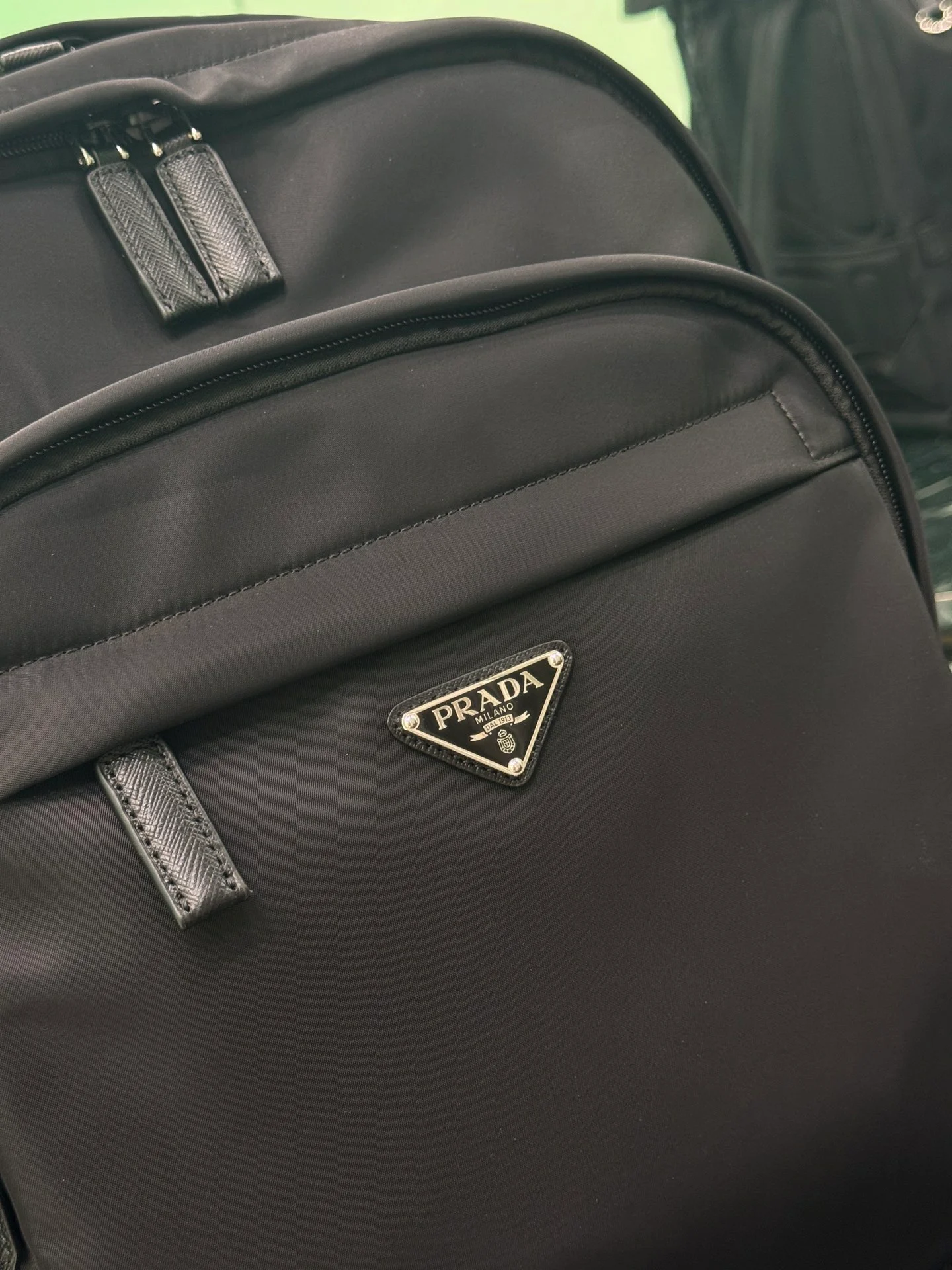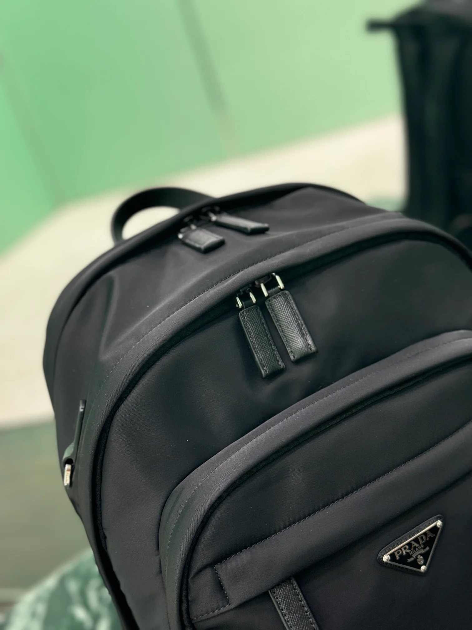 Prada - This backpack features imported Saffiano leather trim, showcasing a modern, minimalist silhouette.