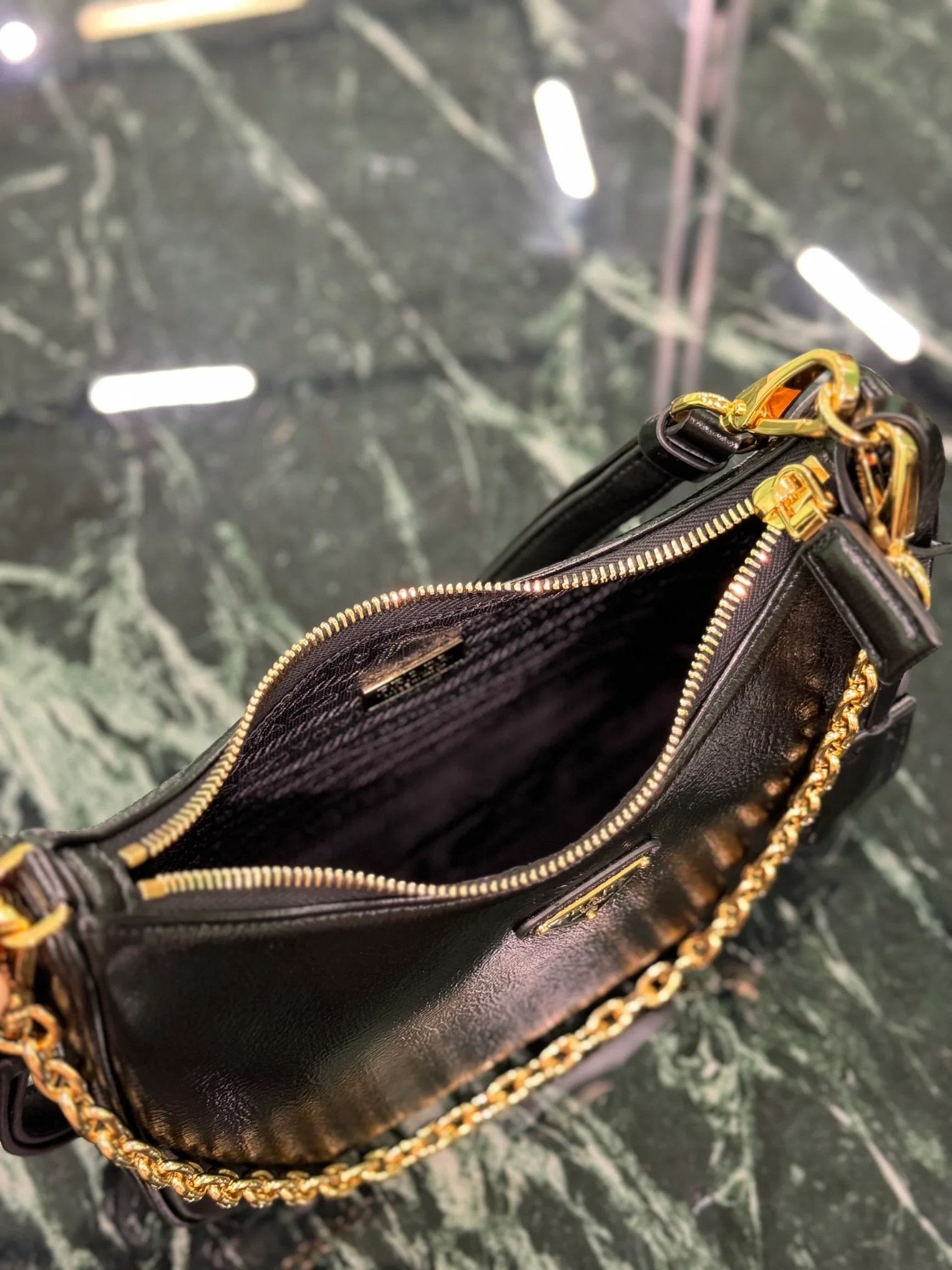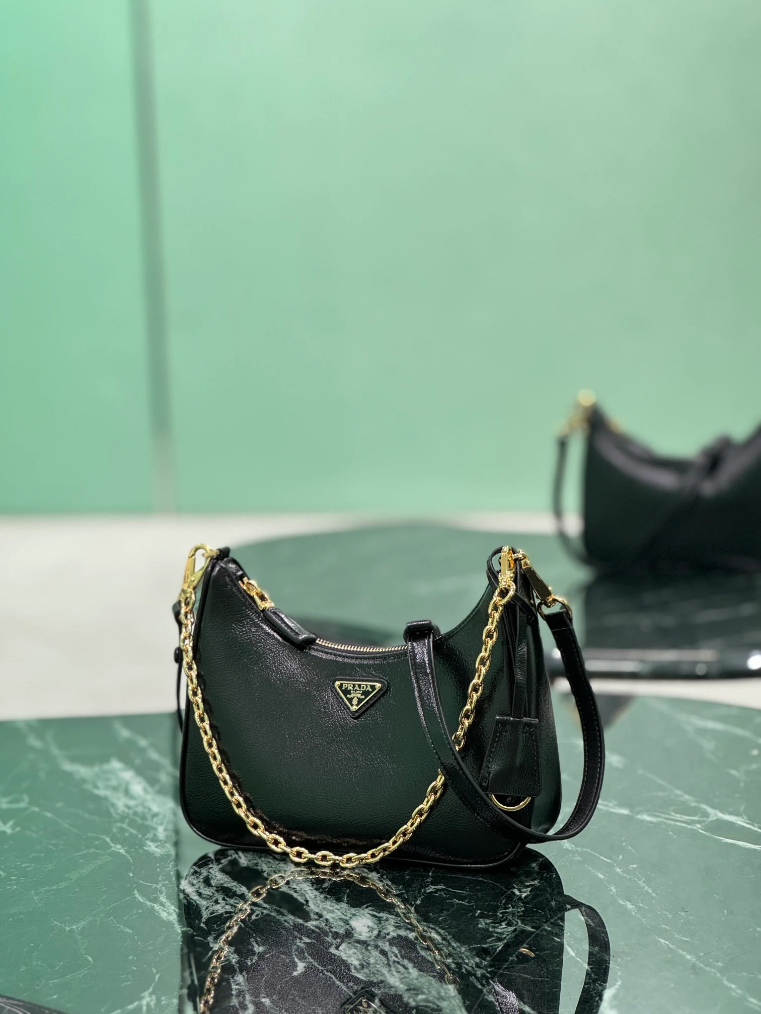 Prada - The Hobo patent leather underarm bag with its crease detail has become a mainstream fashion trend! Dimensions: 22×18×6cm