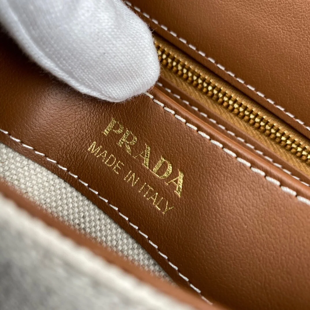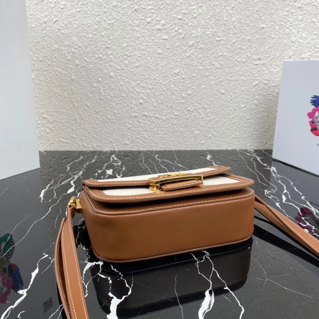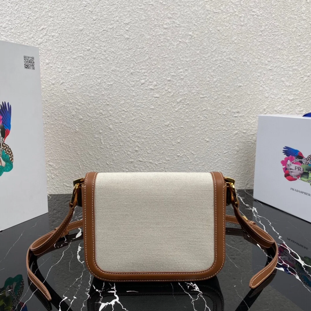 Prada - P brand's latest arrival from the boutique 🍰〰️ Made with imported smooth leather paired with denim canvas/nylon fabric, top-quality hardware, and logo-locked flap closure.