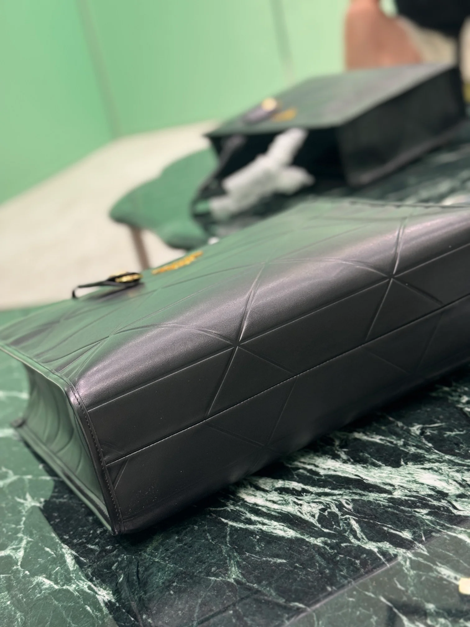 Prada - New Triangular Quilted Tote Bag (Large) This tote bag is made of imported calfskin, featuring a handcrafted triangular quilted design. The label consists of an embossed triangle and a metal tag. The interior has a zippered pocket.