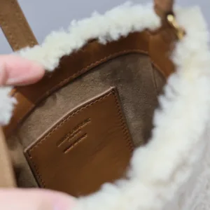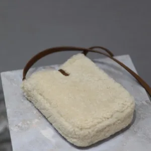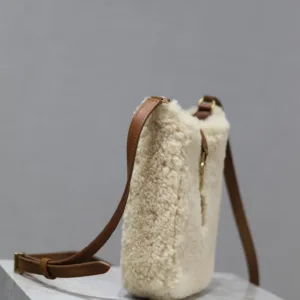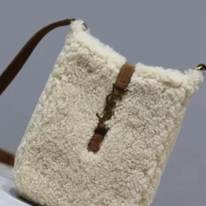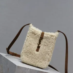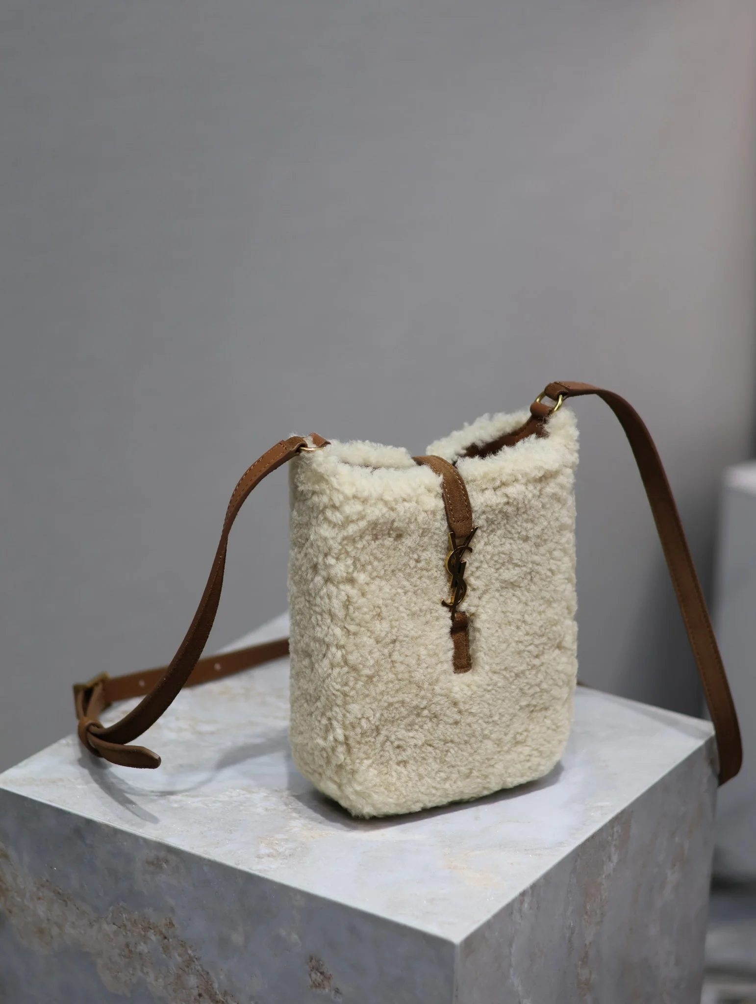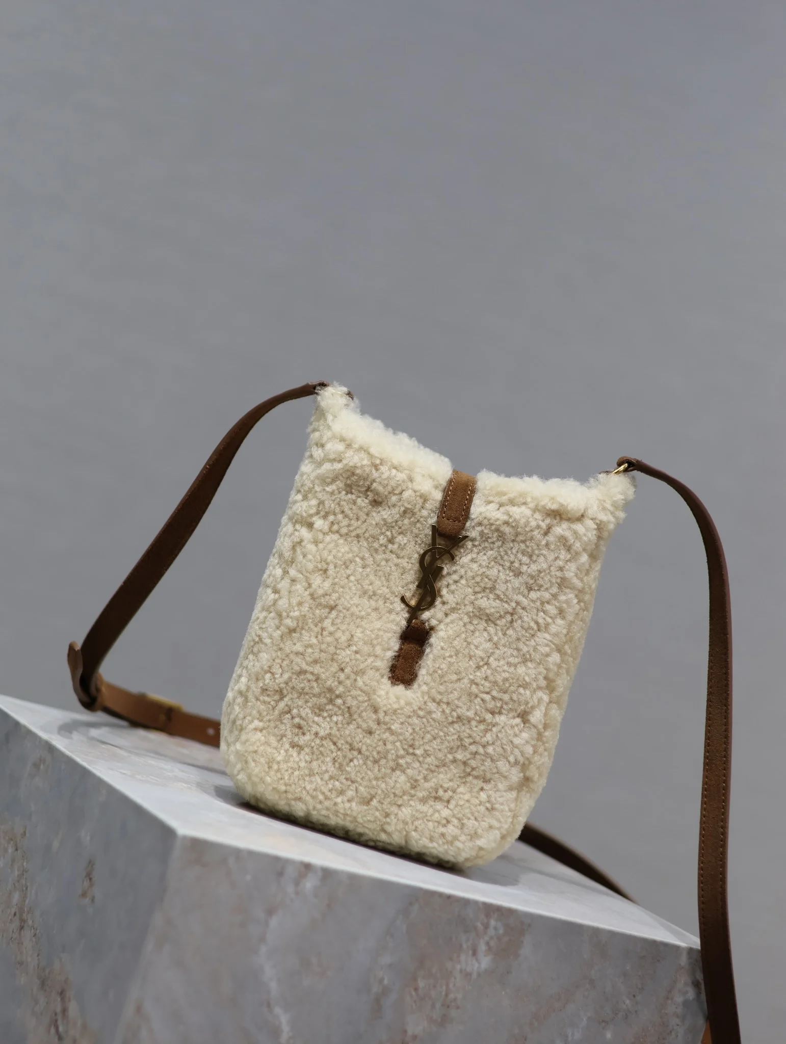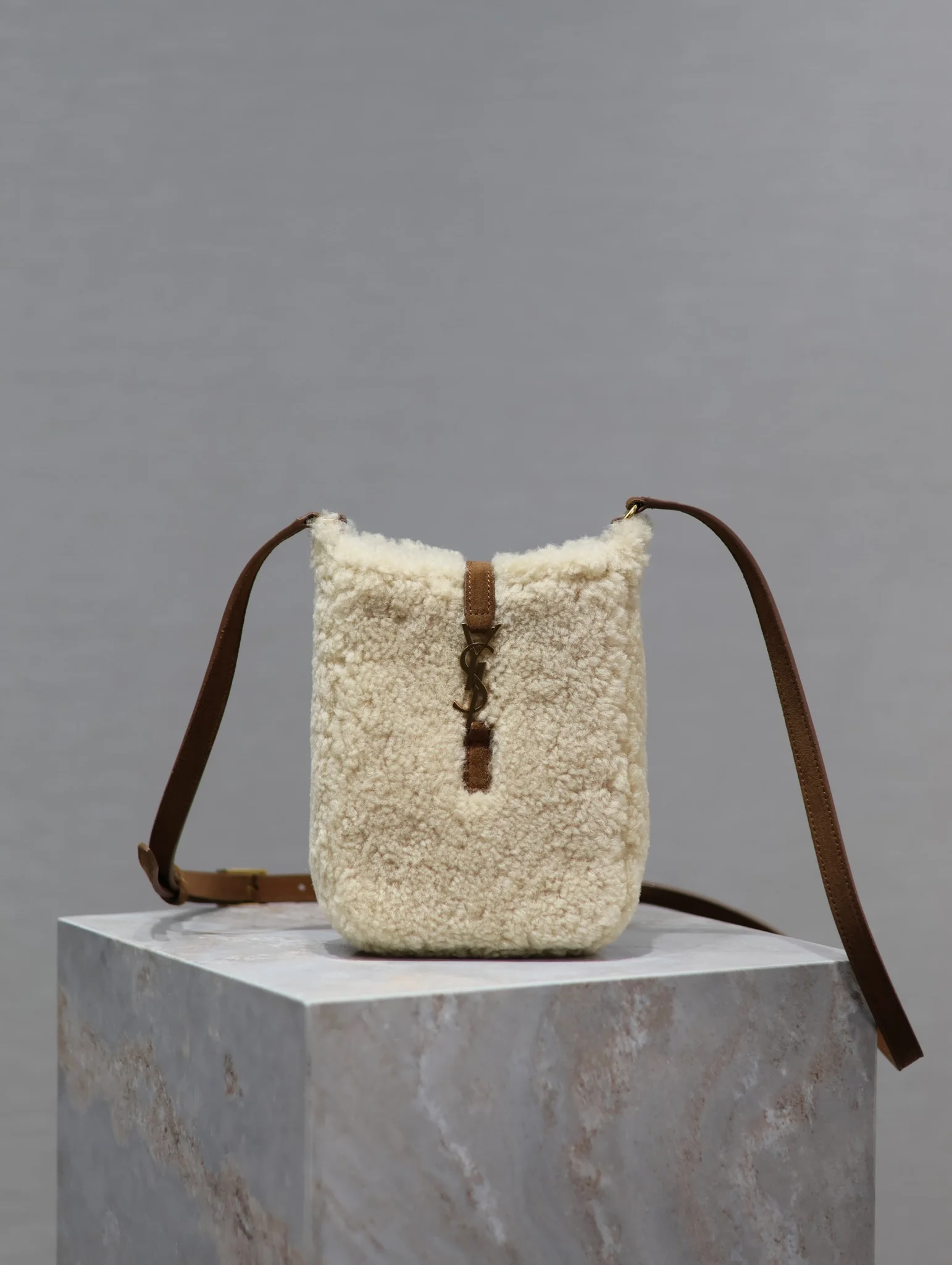 Yves Saint Laurent - Le 5A7 Phone Bag - Lambswool 🐏, the most eye-catching lambswool design is a must-have! A gentle camel body with cream-colored lambswool trim.