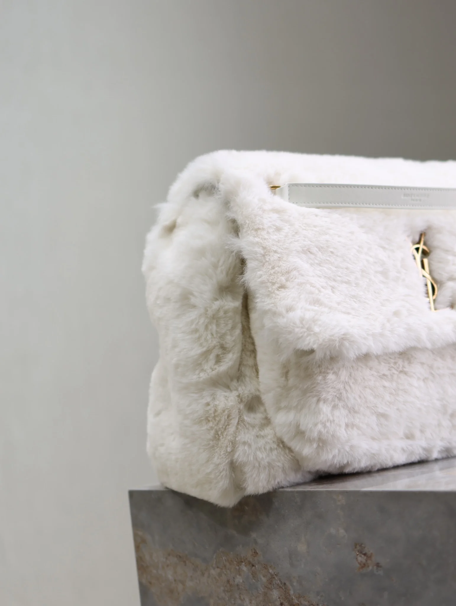 Yves Saint Laurent - White, 32cm, Autumn/Winter Rabbit Fur Style, Available Now! 🧏🏻♀️ Size: 32×23×9cm