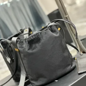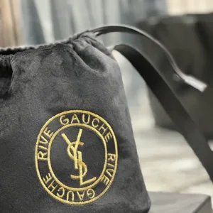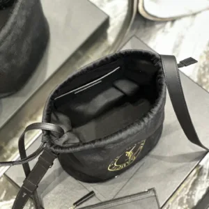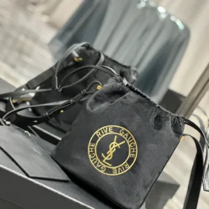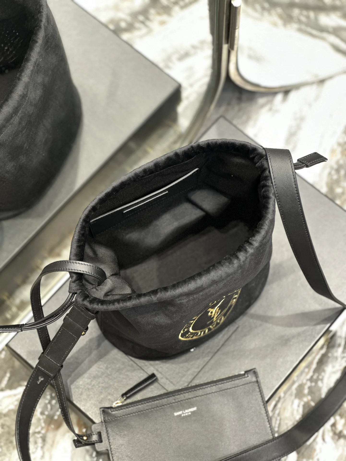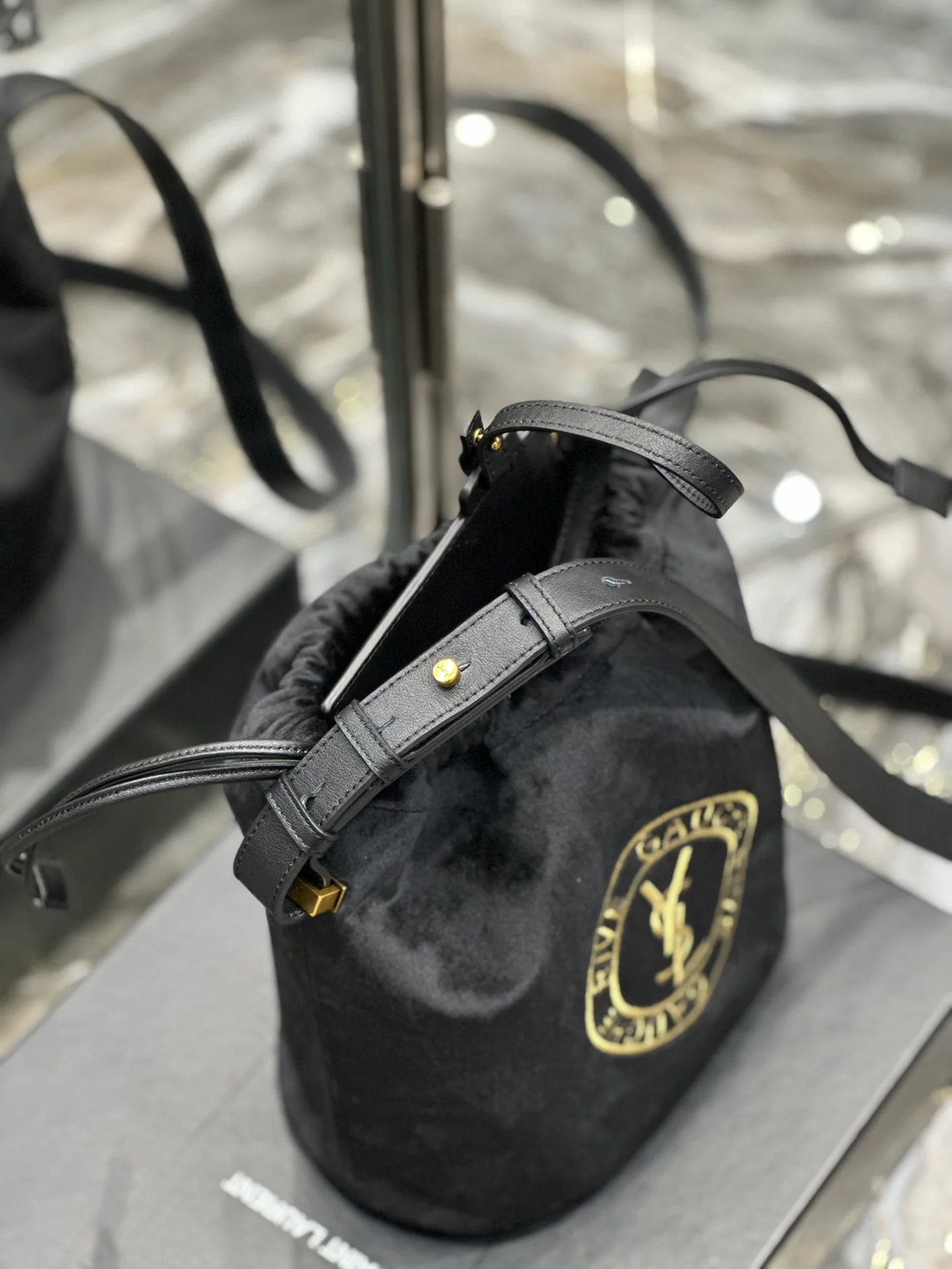 Yves Saint Laurent - <Black> 🖤RIVE GAUCHE New Embroidered Leather Drawstring Bucket Bag Dimensions: 21×23×14cm